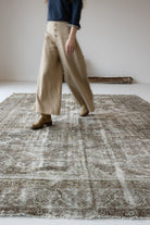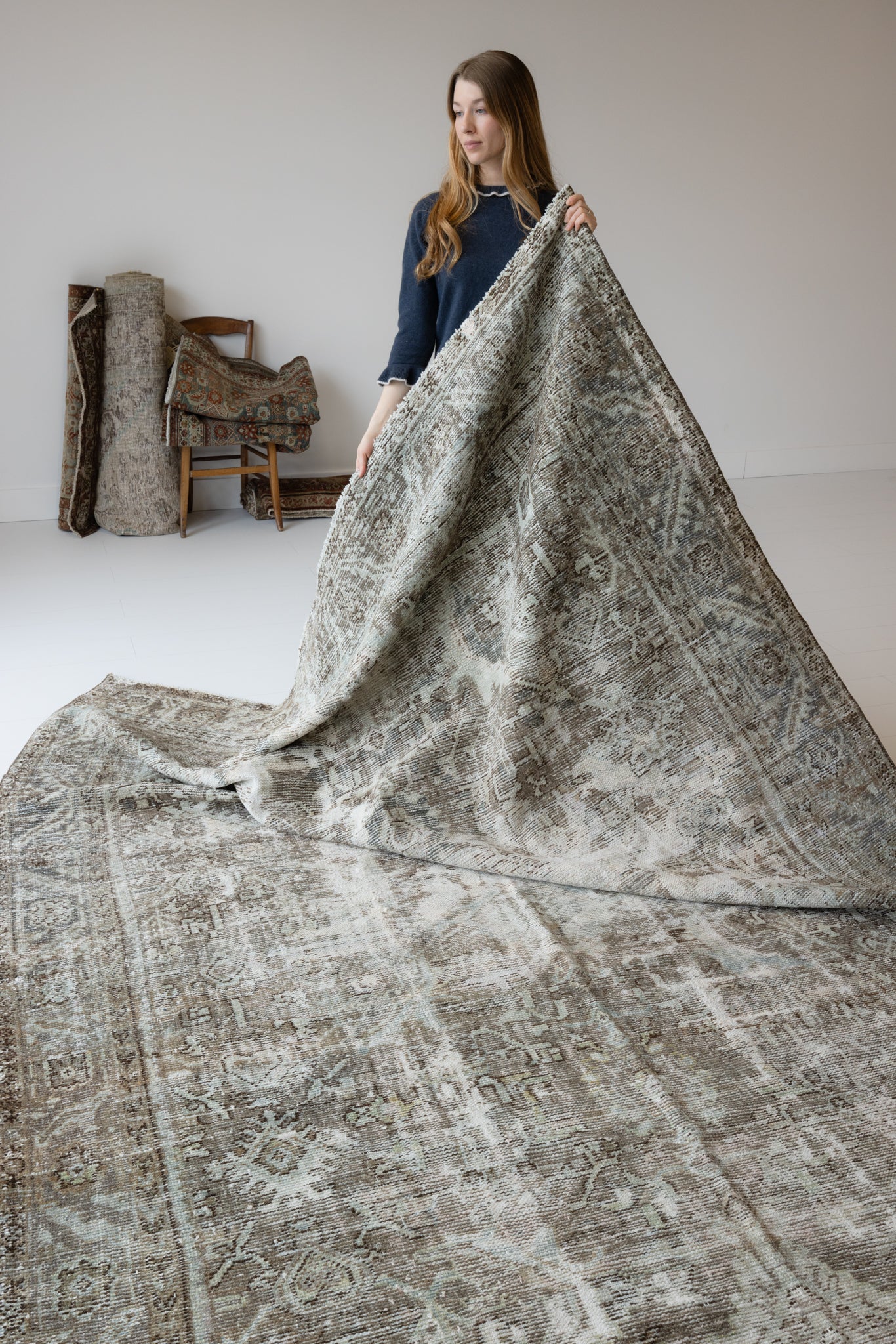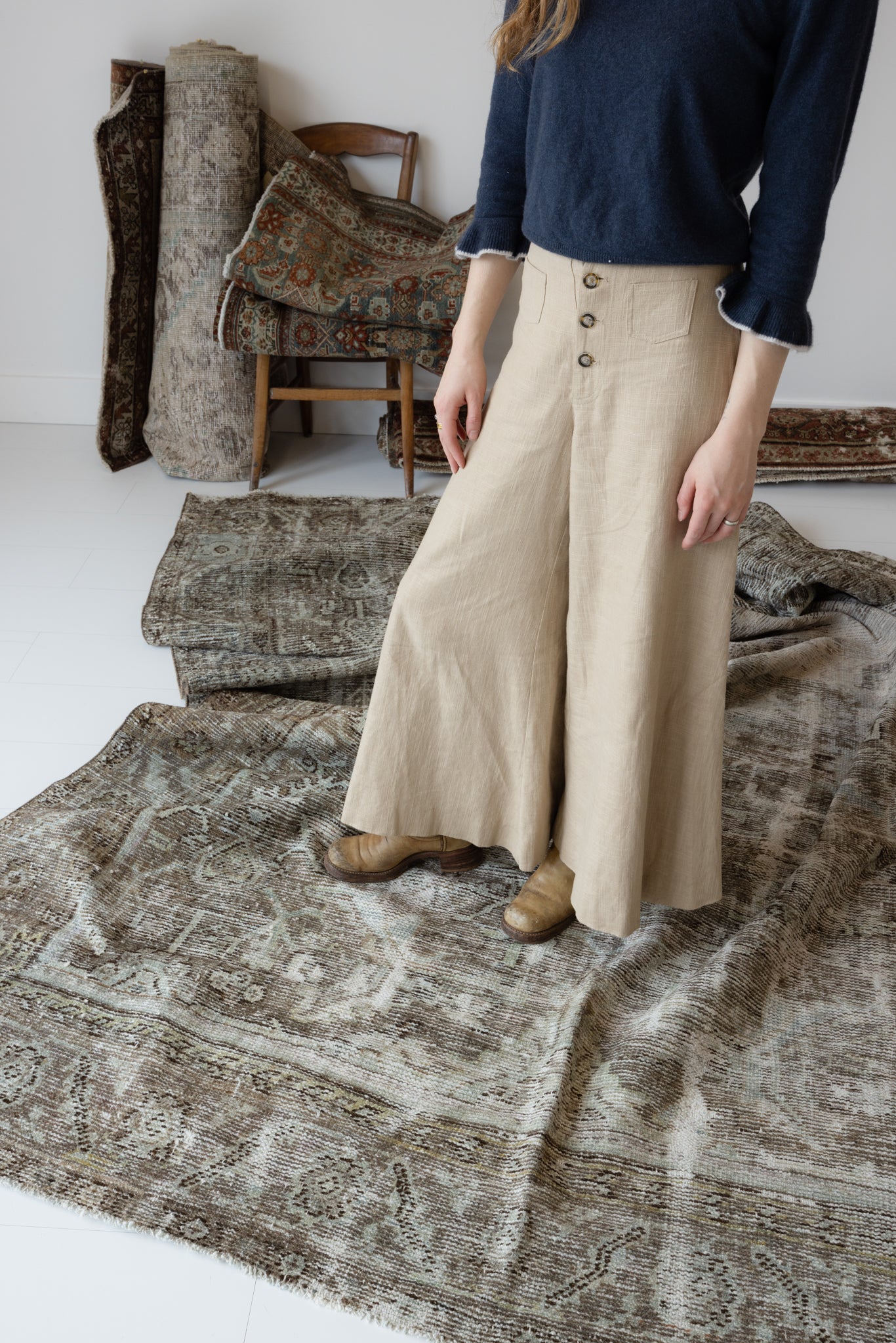 Because of the nature of this item, there may be slight imperfections in its wear, shape, dimensions, and color. Our rugs have been repaired over the years using various techniques. There might be evidence of these repairs through texture, look and feel. This is all part of the rich history and story of each artistic piece. These markings are not considered defective.