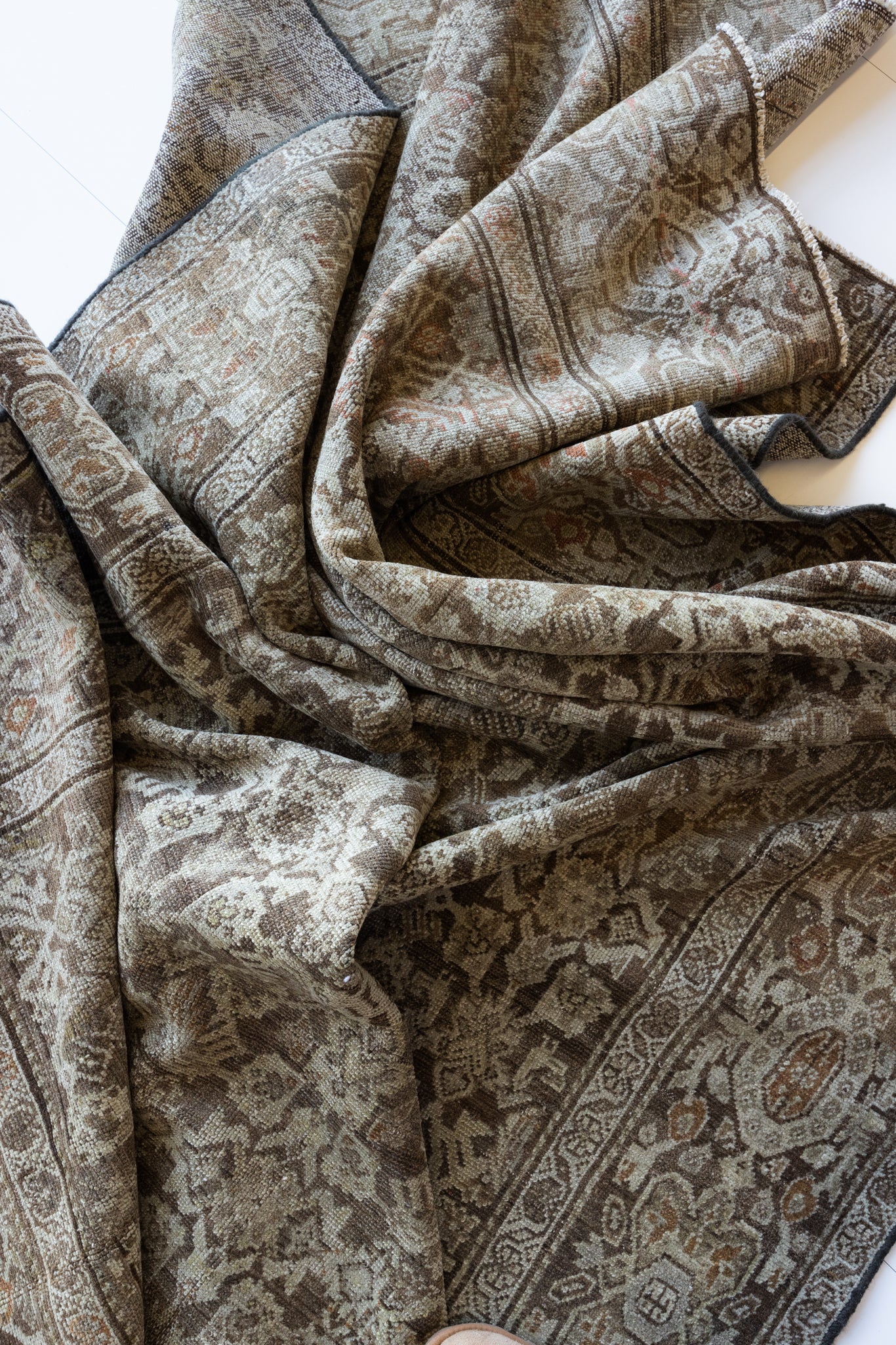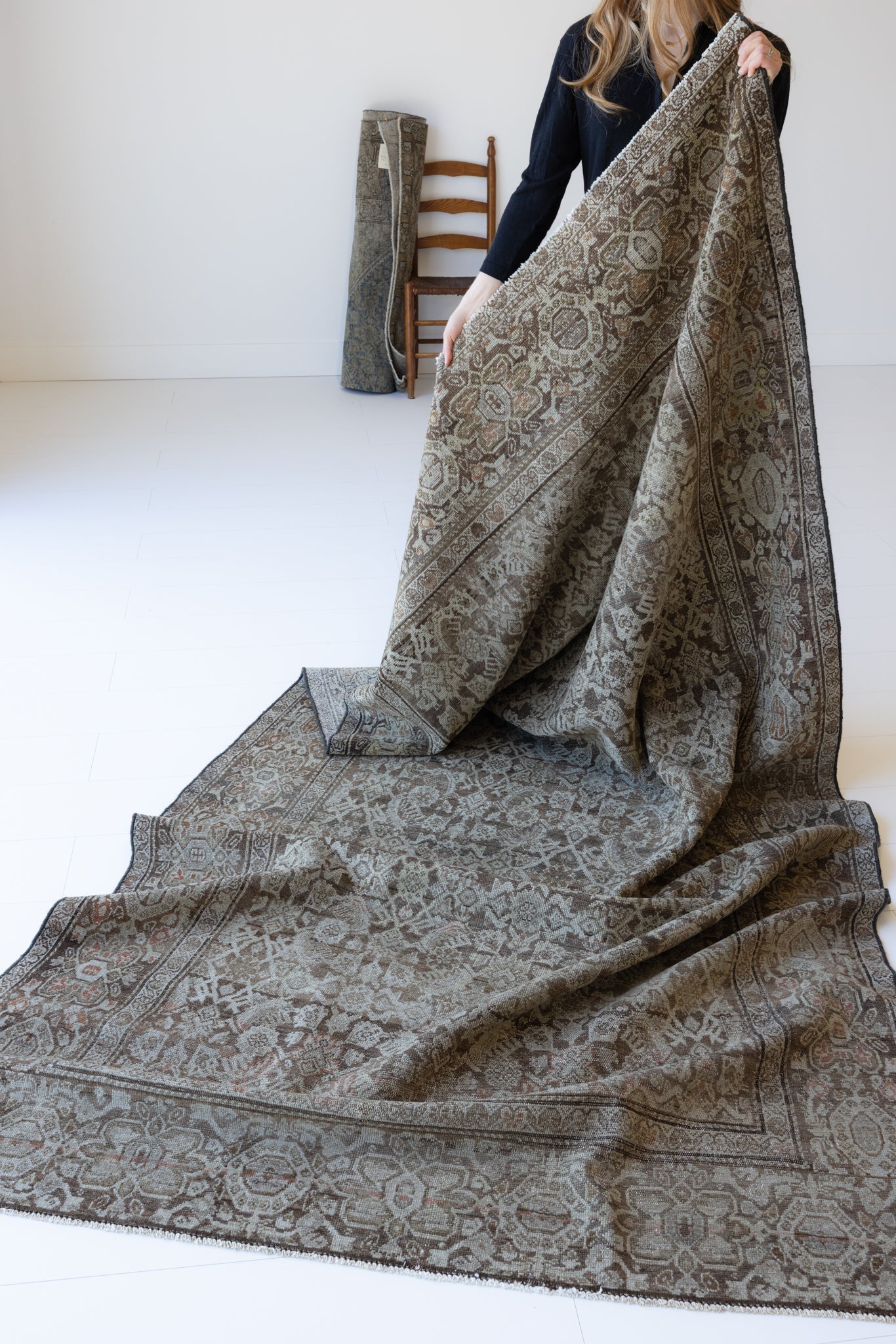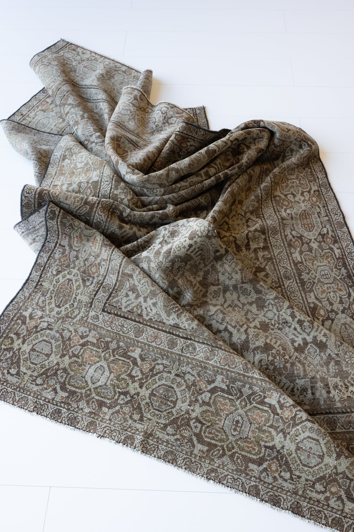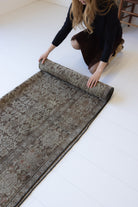 Because of the nature of this item, there may be slight imperfections in its wear, shape, dimensions, and color. Our rugs have been repaired over the years, using various techniques. There might be evidence of these repairs through texture, look and feel. This is all part of the rich history and story of each artistic piece. These markings are not considered defective.