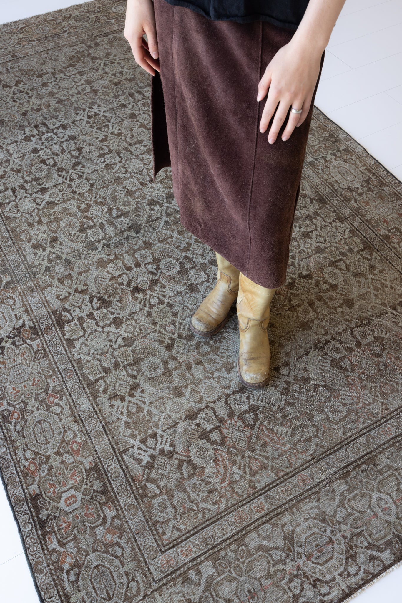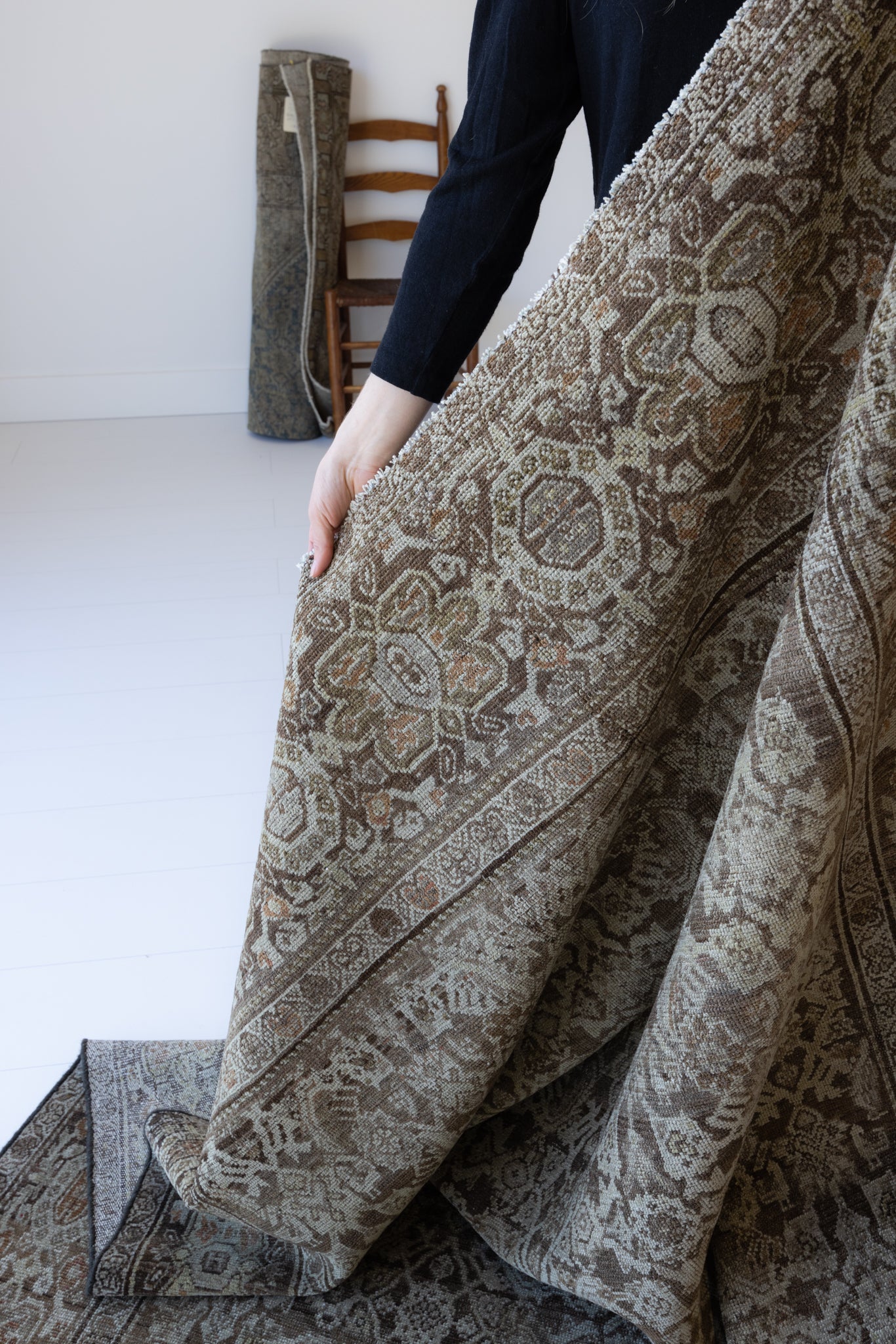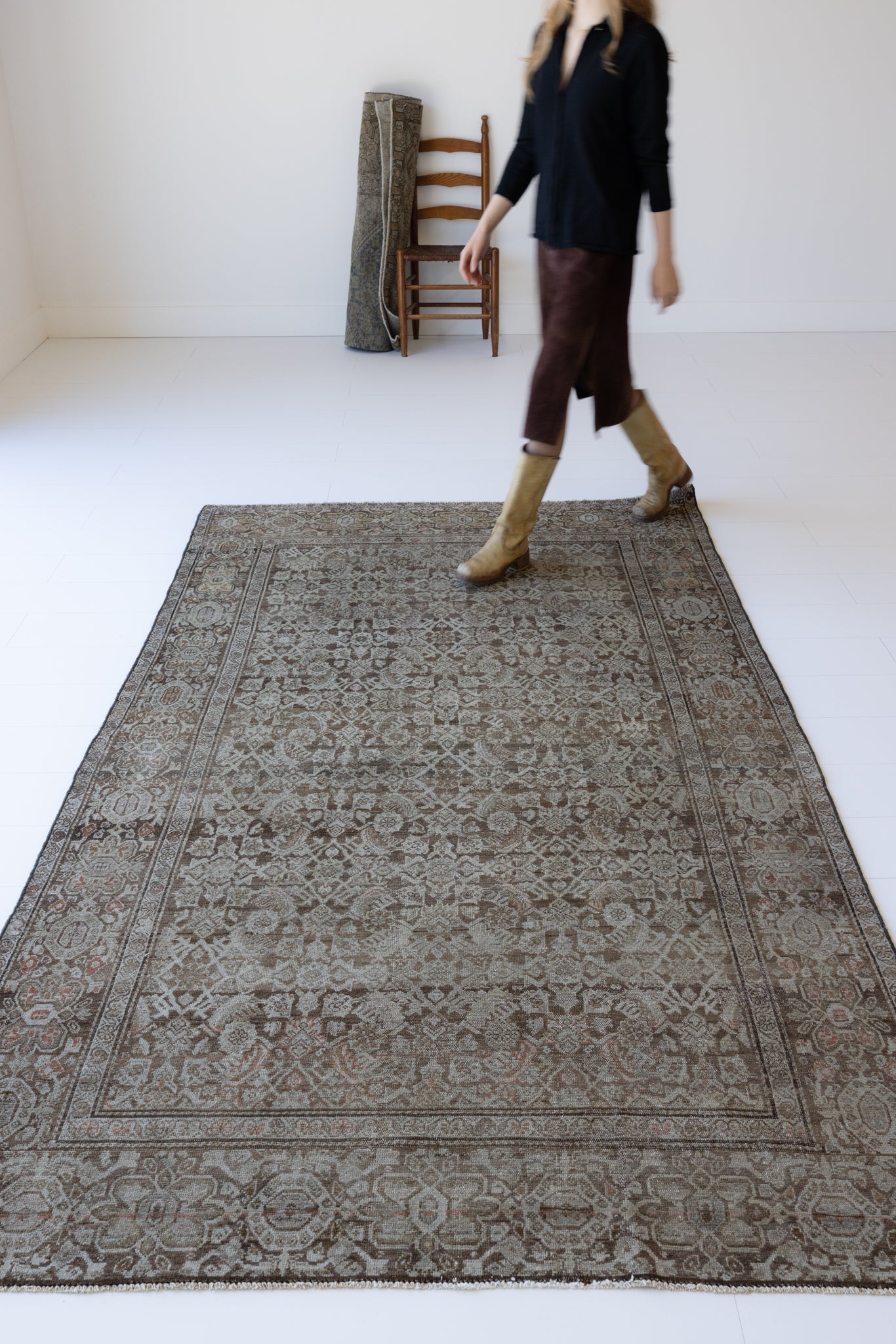Because of the nature of this item, there may be slight imperfections in its wear, shape, dimensions, and color. Our rugs have been repaired over the years, using various techniques. There might be evidence of these repairs through texture, look and feel. This is all part of the rich history and story of each artistic piece. These markings are not considered defective.