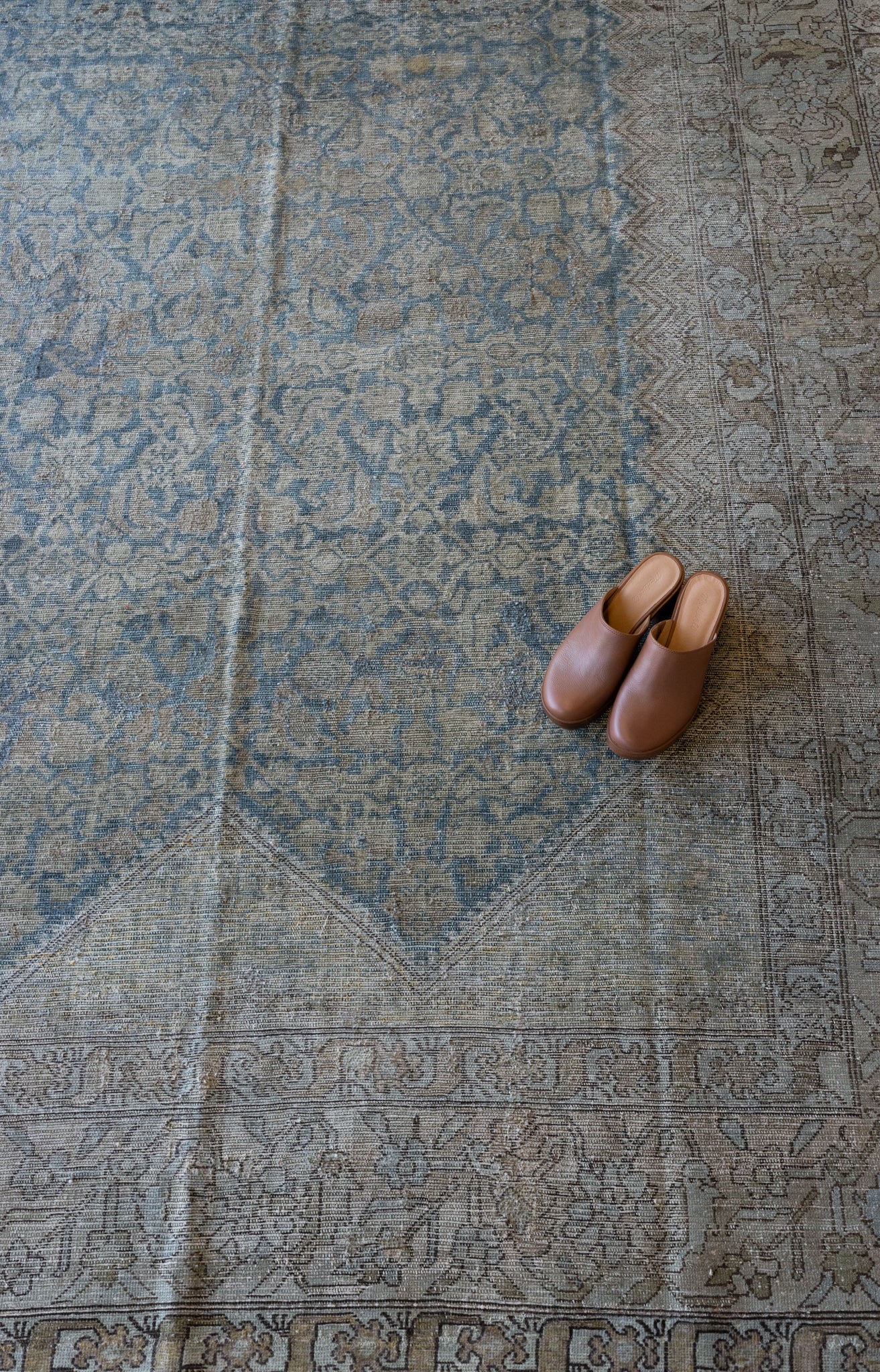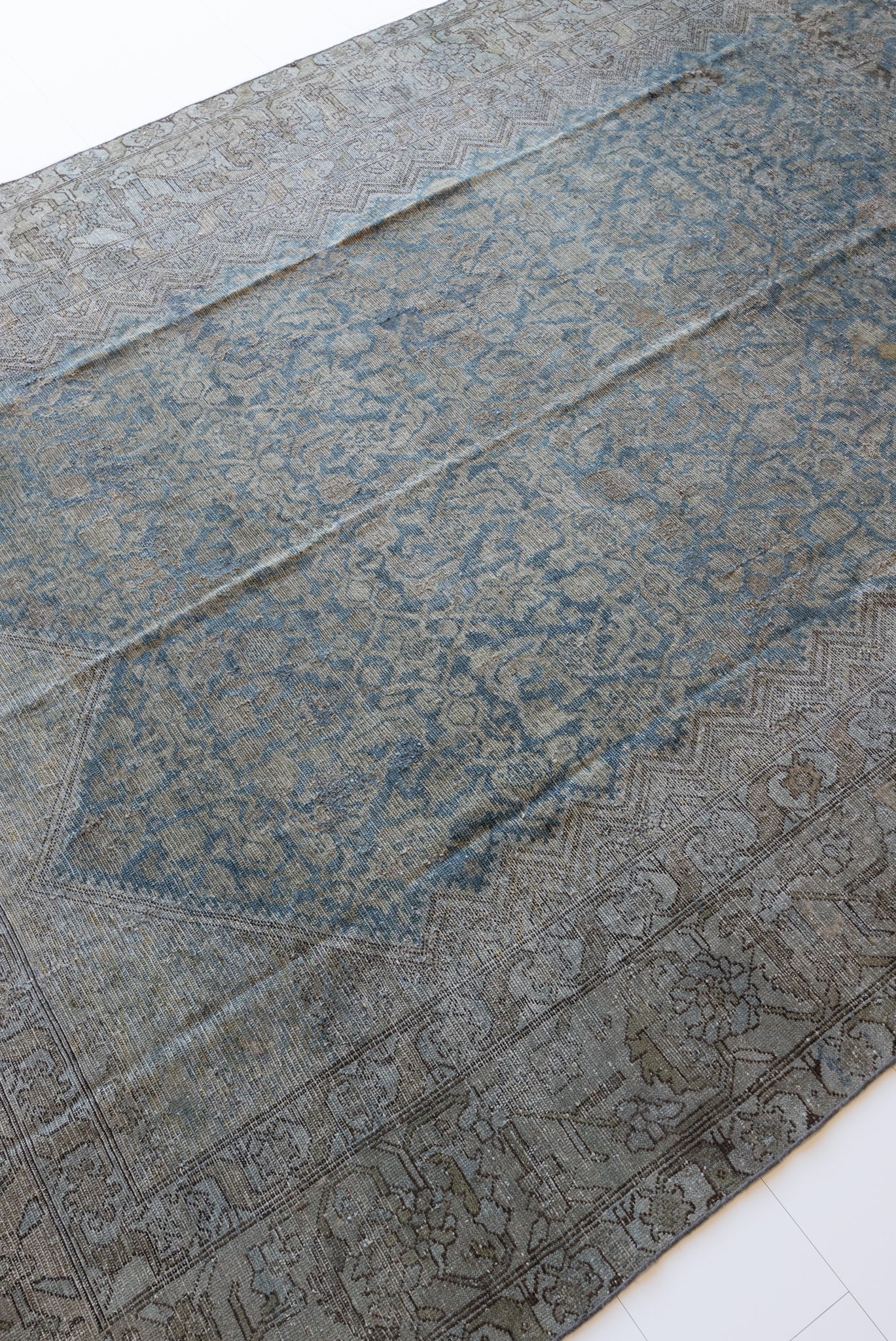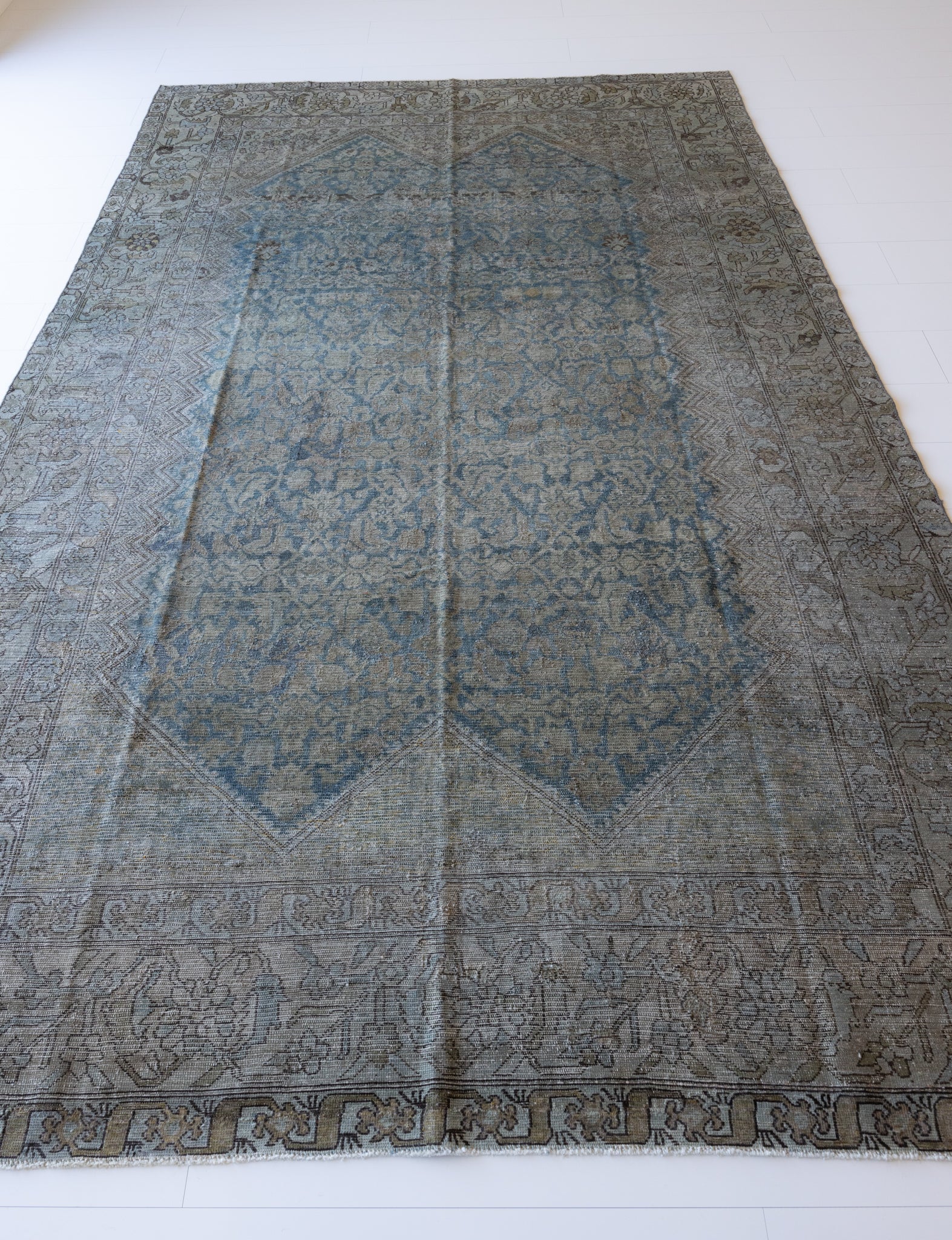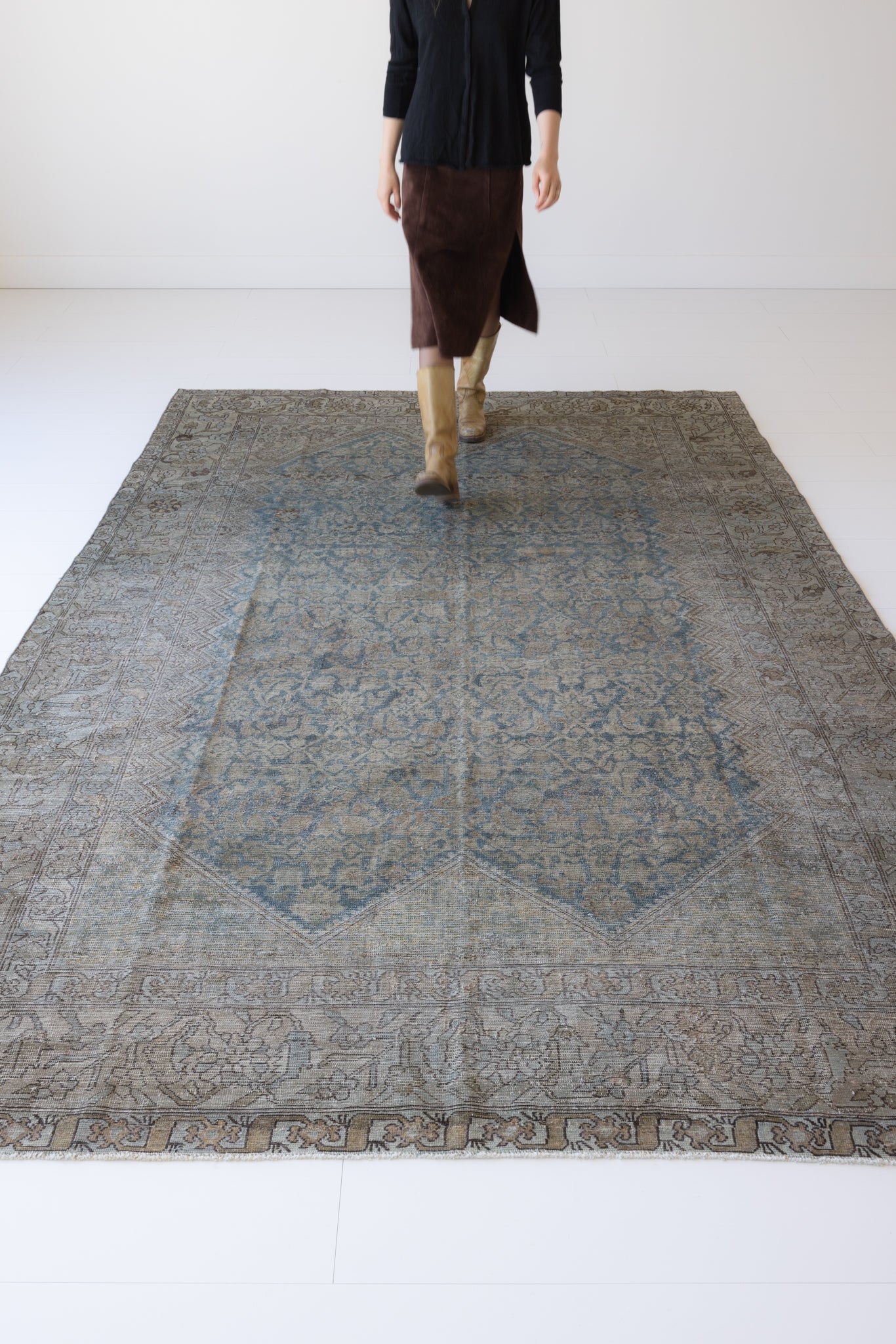 Because of the nature of this item, there may be slight imperfections in its wear, shape, dimensions, and color. Our rugs have been repaired over the years, using various techniques. There might be evidence of these repairs through texture, look and feel. This is all part of the rich history and story of each artistic piece. These markings are not considered defective.