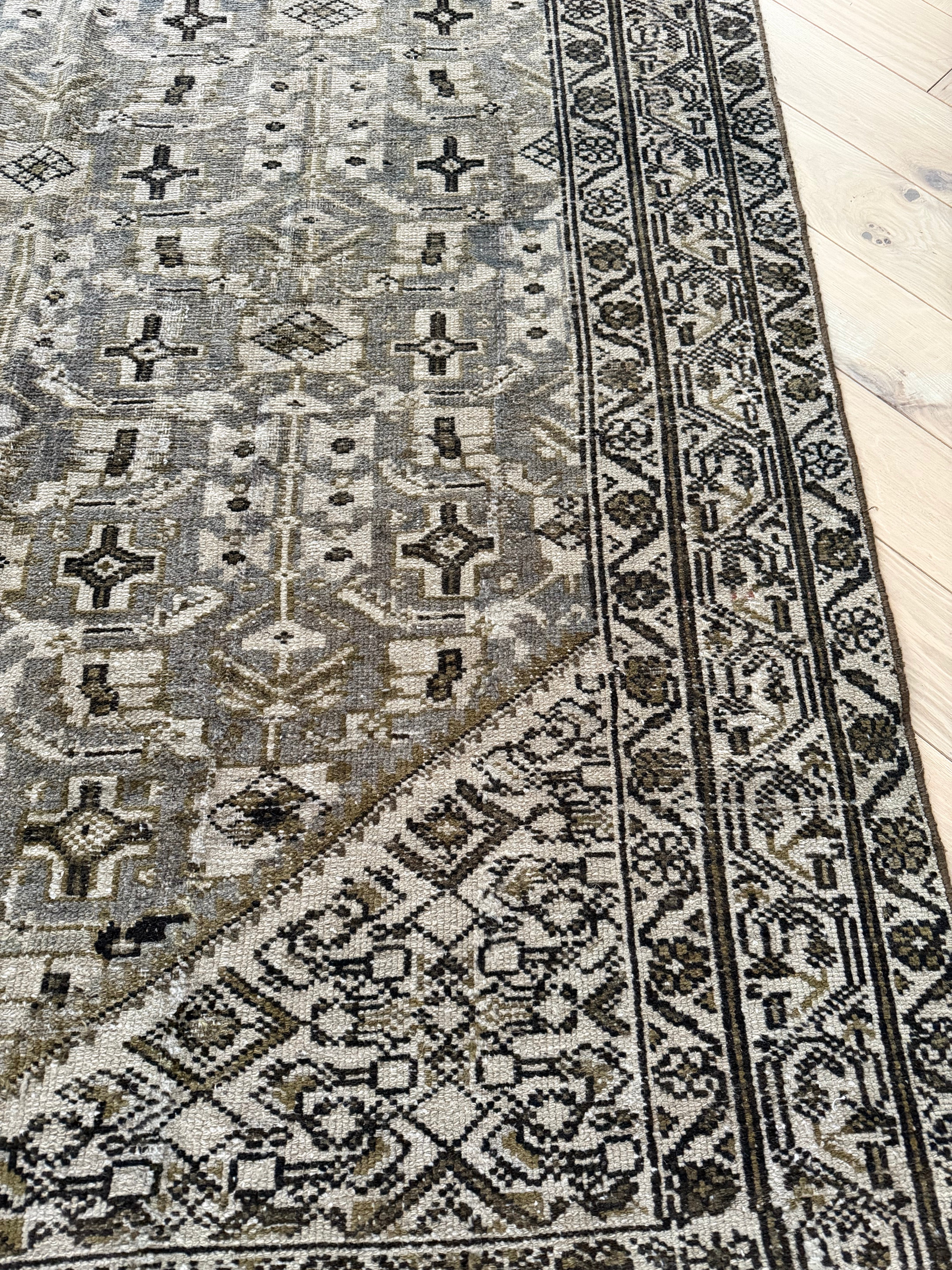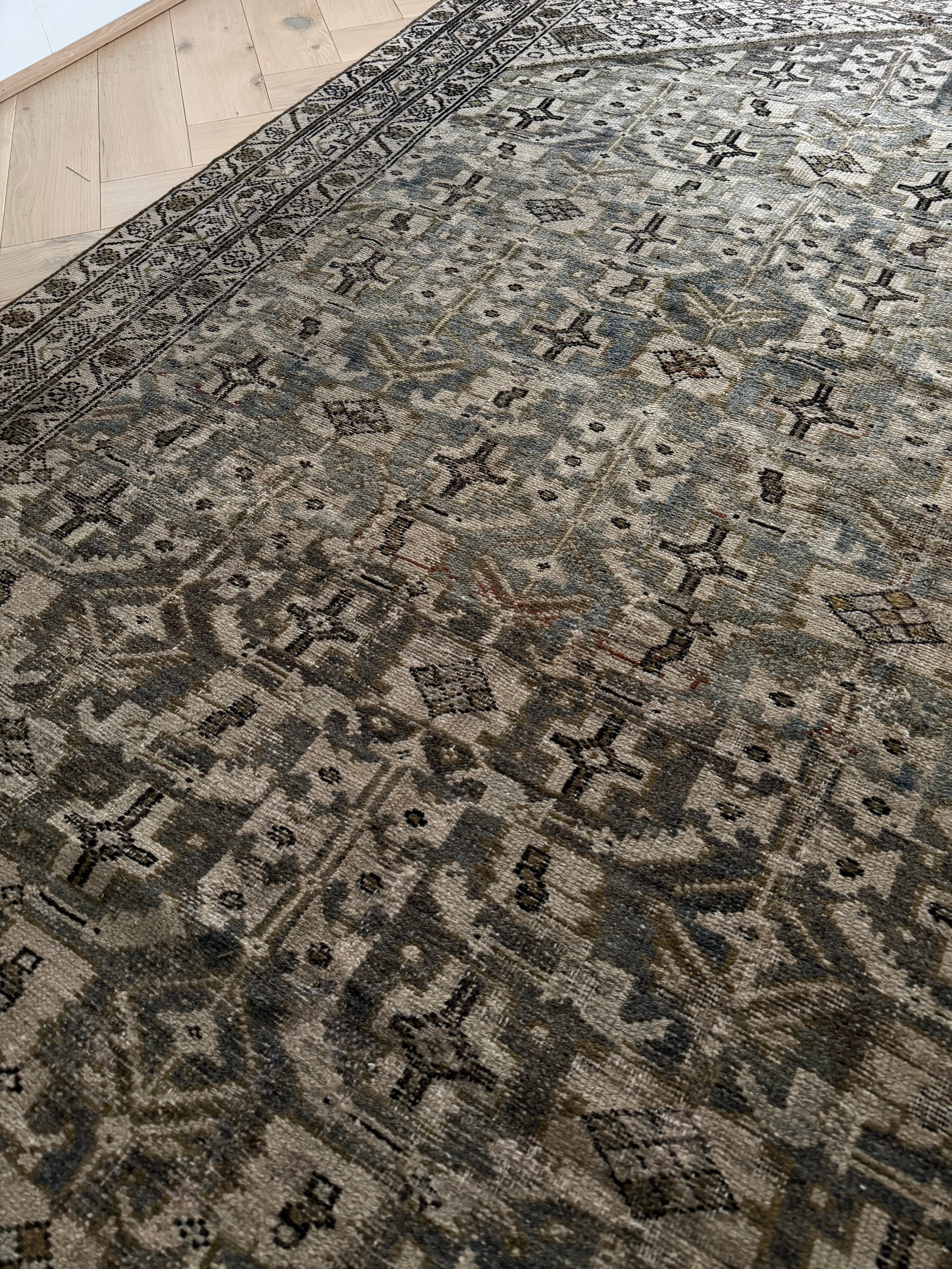 The screen of which you view these photos may change how this rug’s coloring is portrayed. On the iPhone, we recommend viewing these photos with “True Tone” turned off (you can turn this feature off by holding down on the brightness setting). Please note that the colors of the rug may appear differently depending on the lighting in your home.