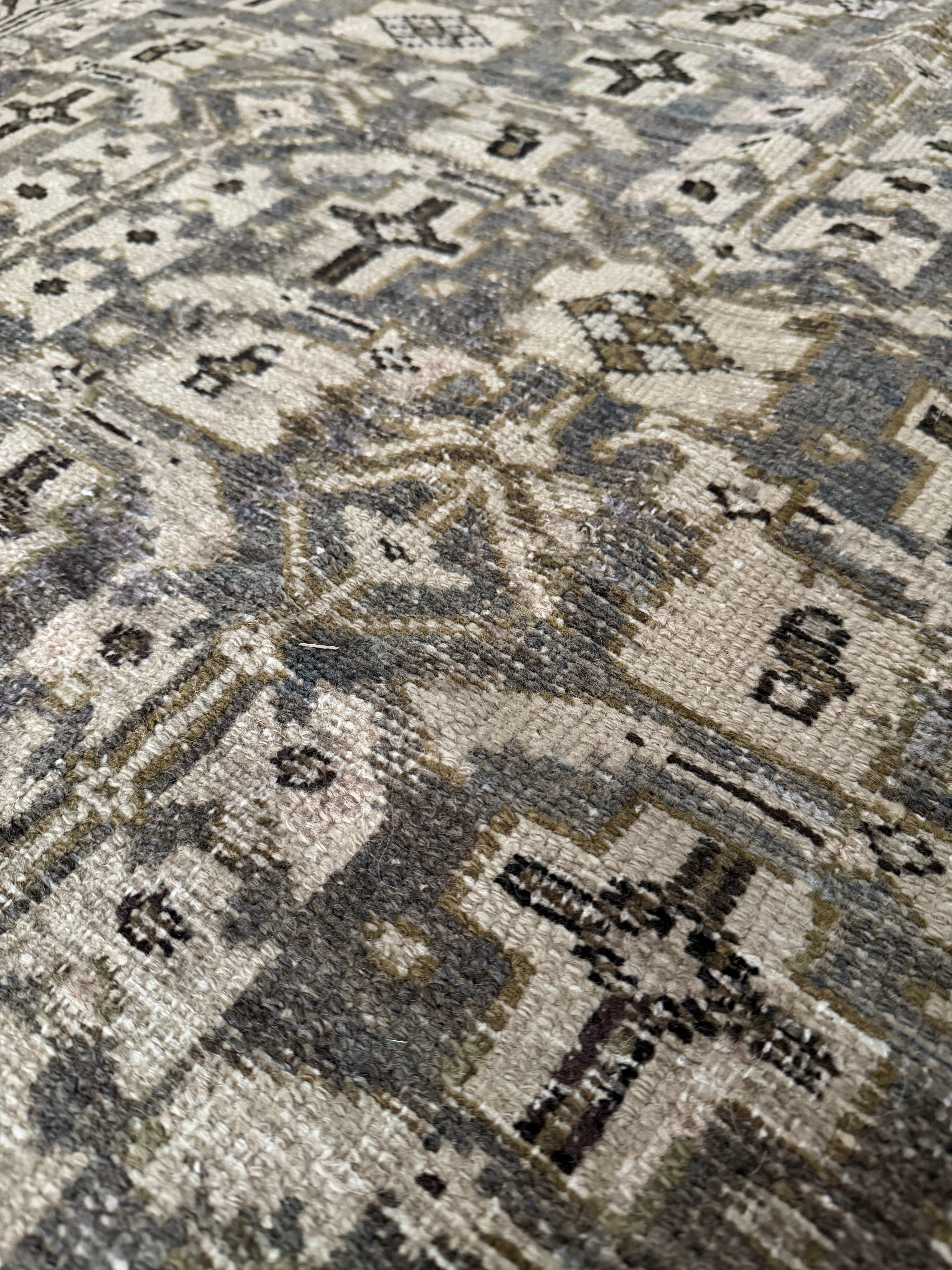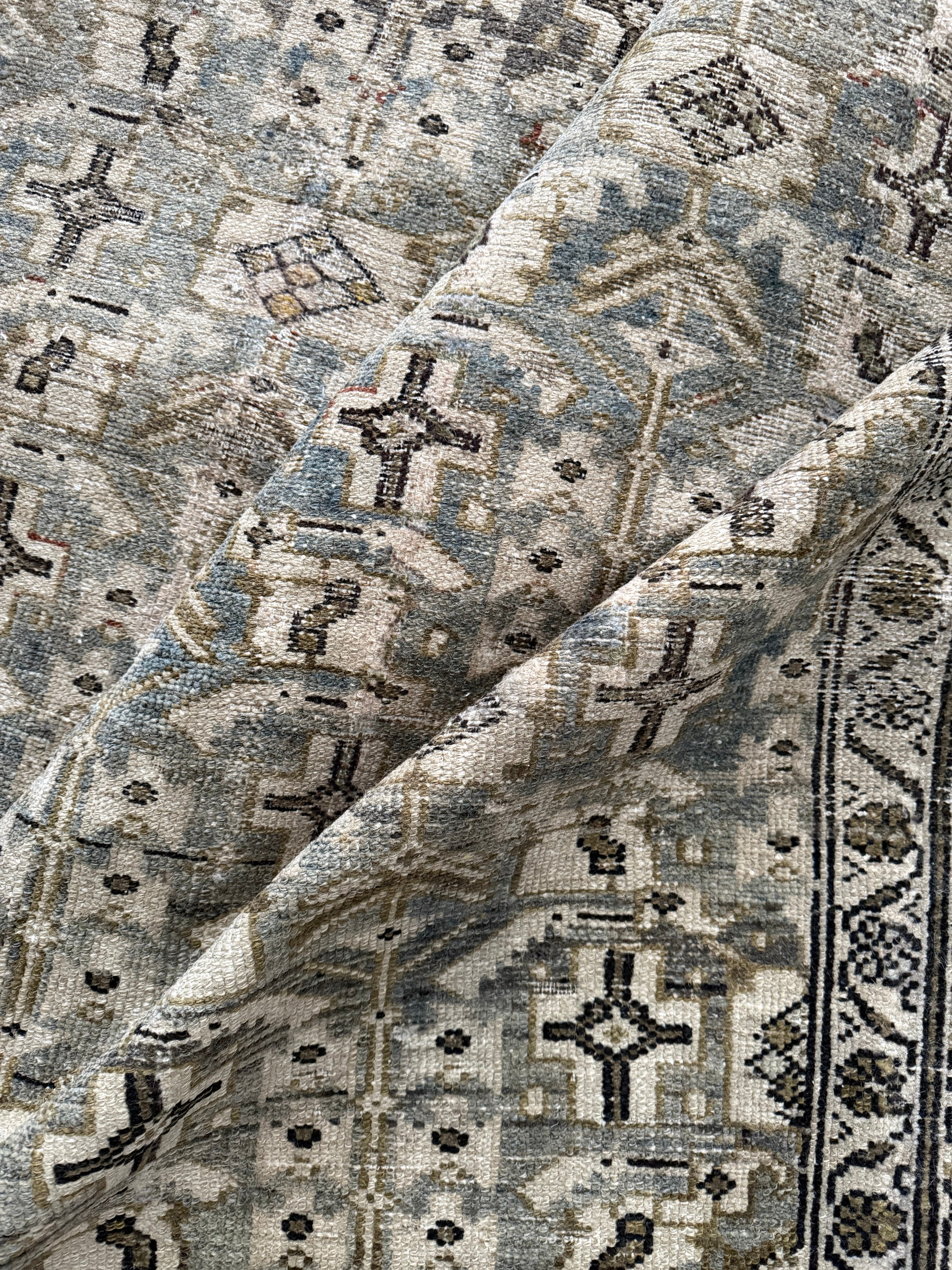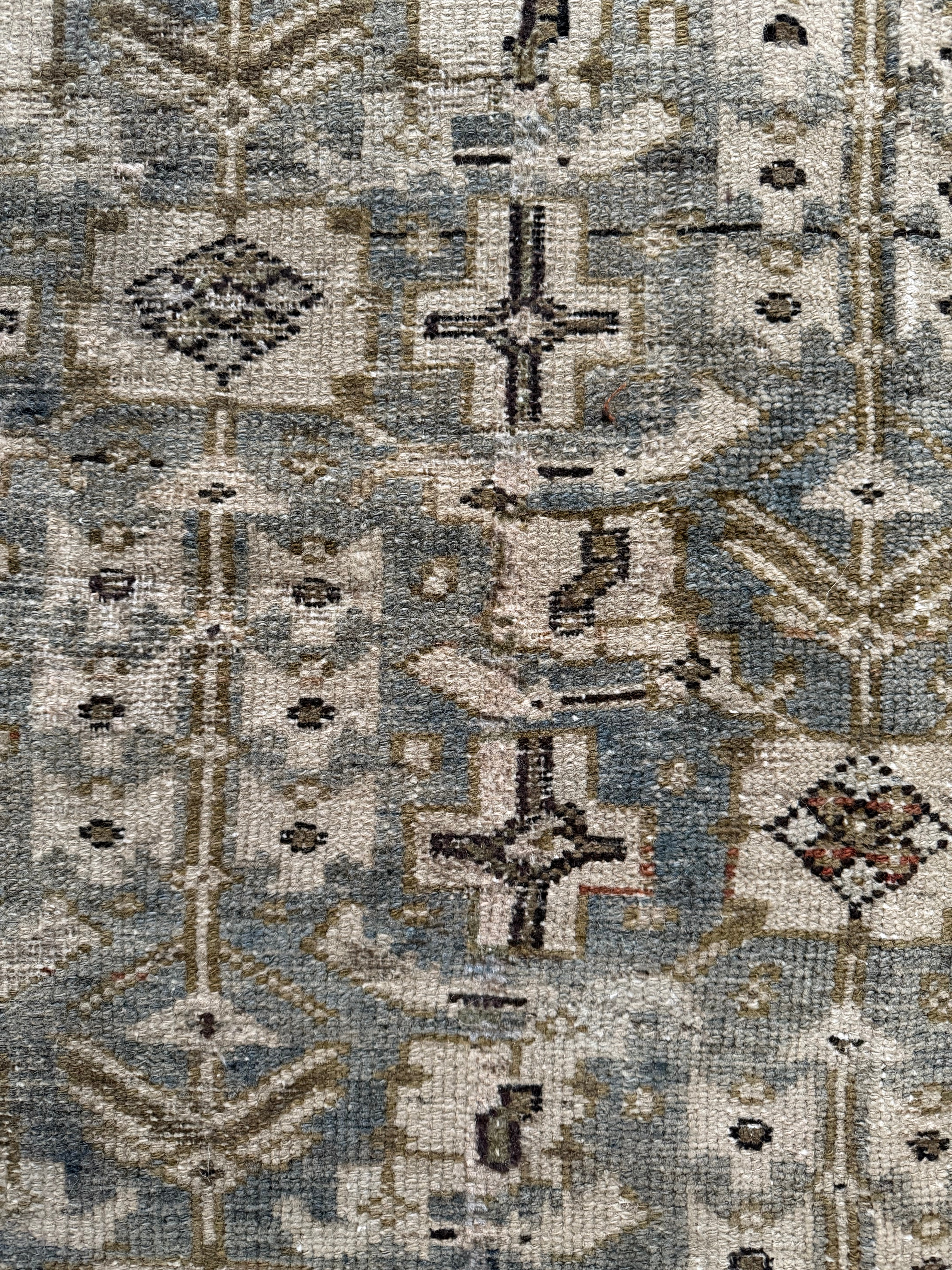 Because of the nature of this item, there may be slight imperfections in its wear, shape, dimensions, and color. Our rugs have been repaired over the years, using various techniques. There might be evidence of these repairs through texture, look and feel. This is all part of the rich history and story of each artistic piece. These markings are not considered defective.