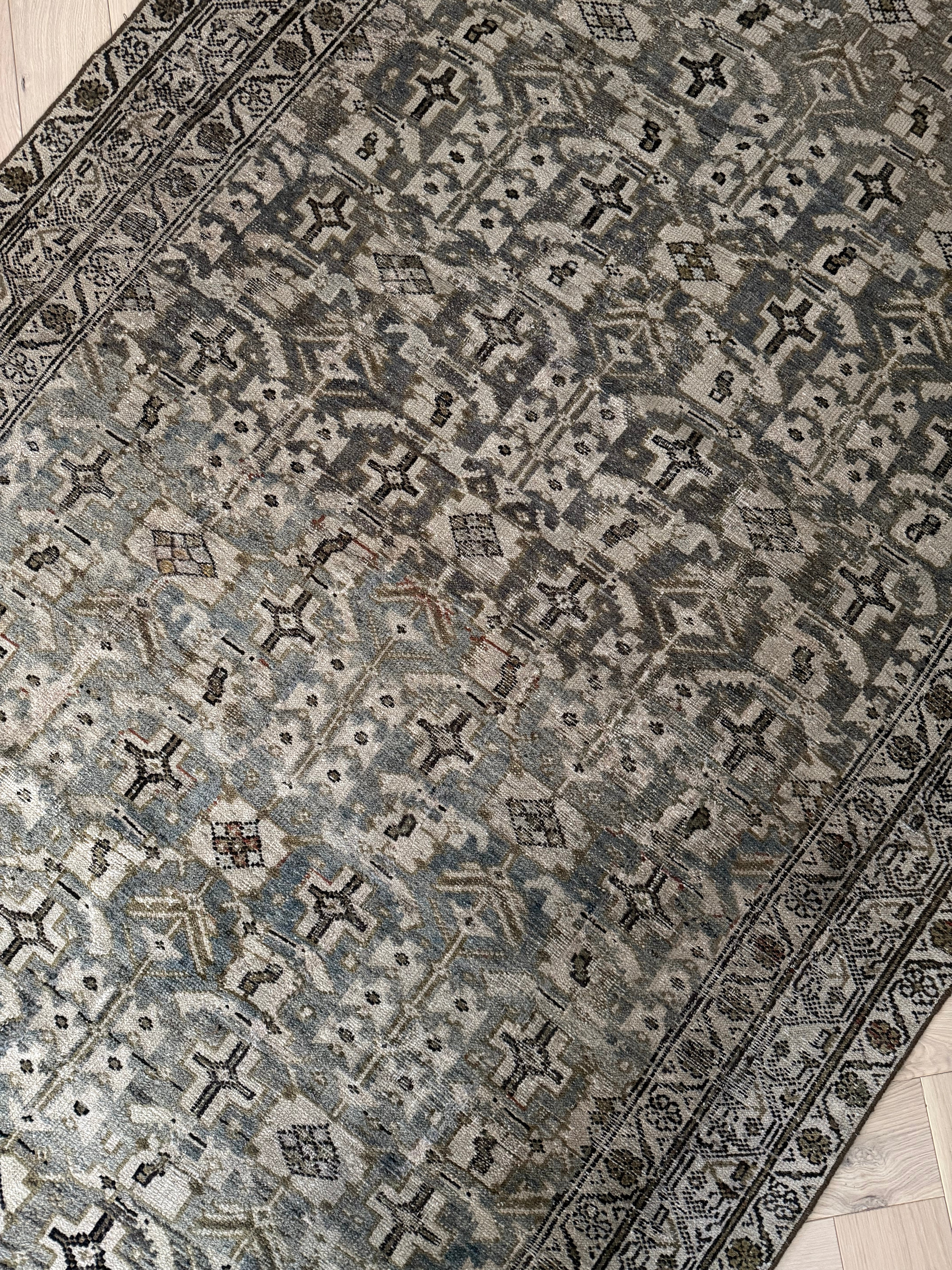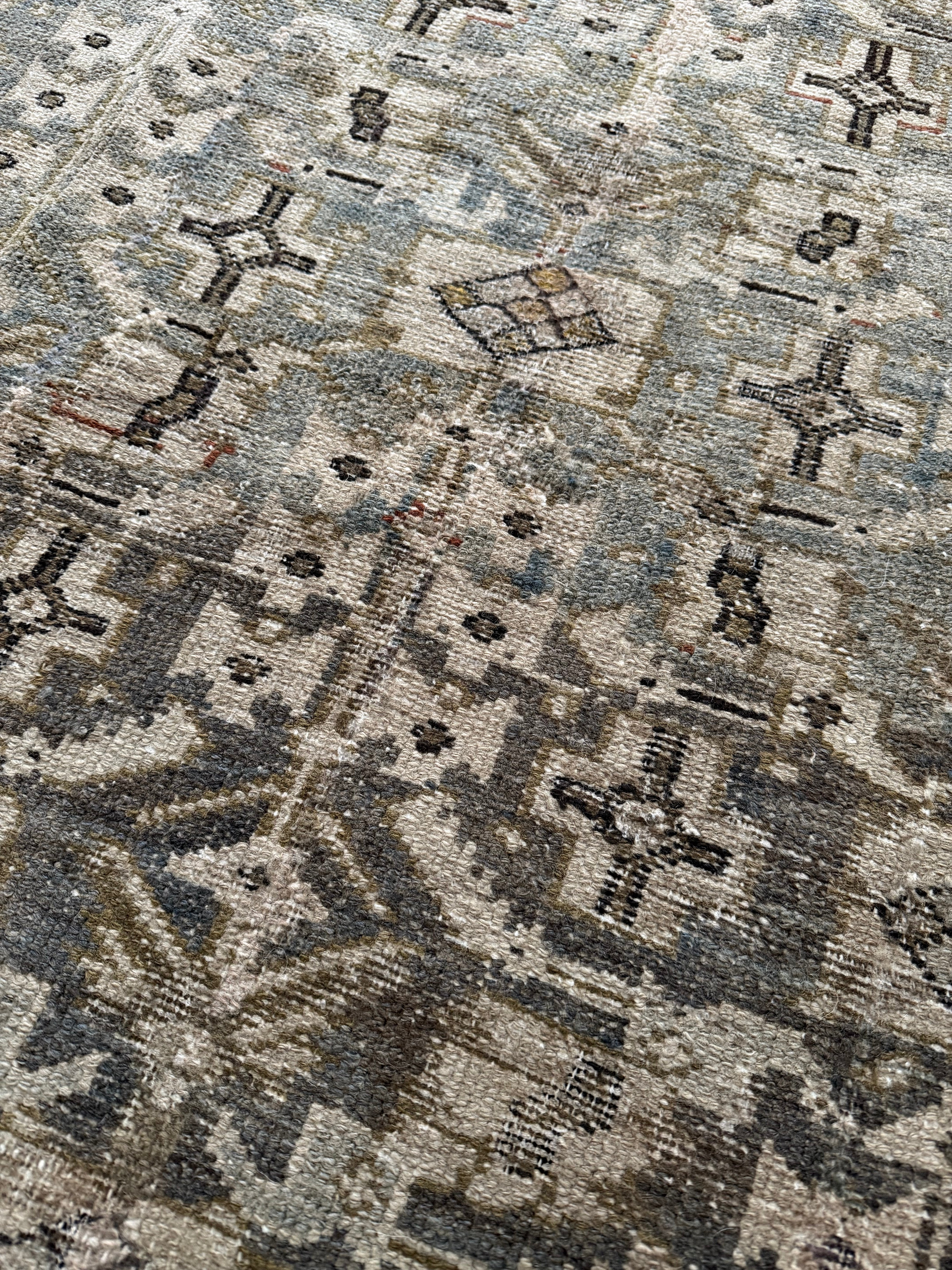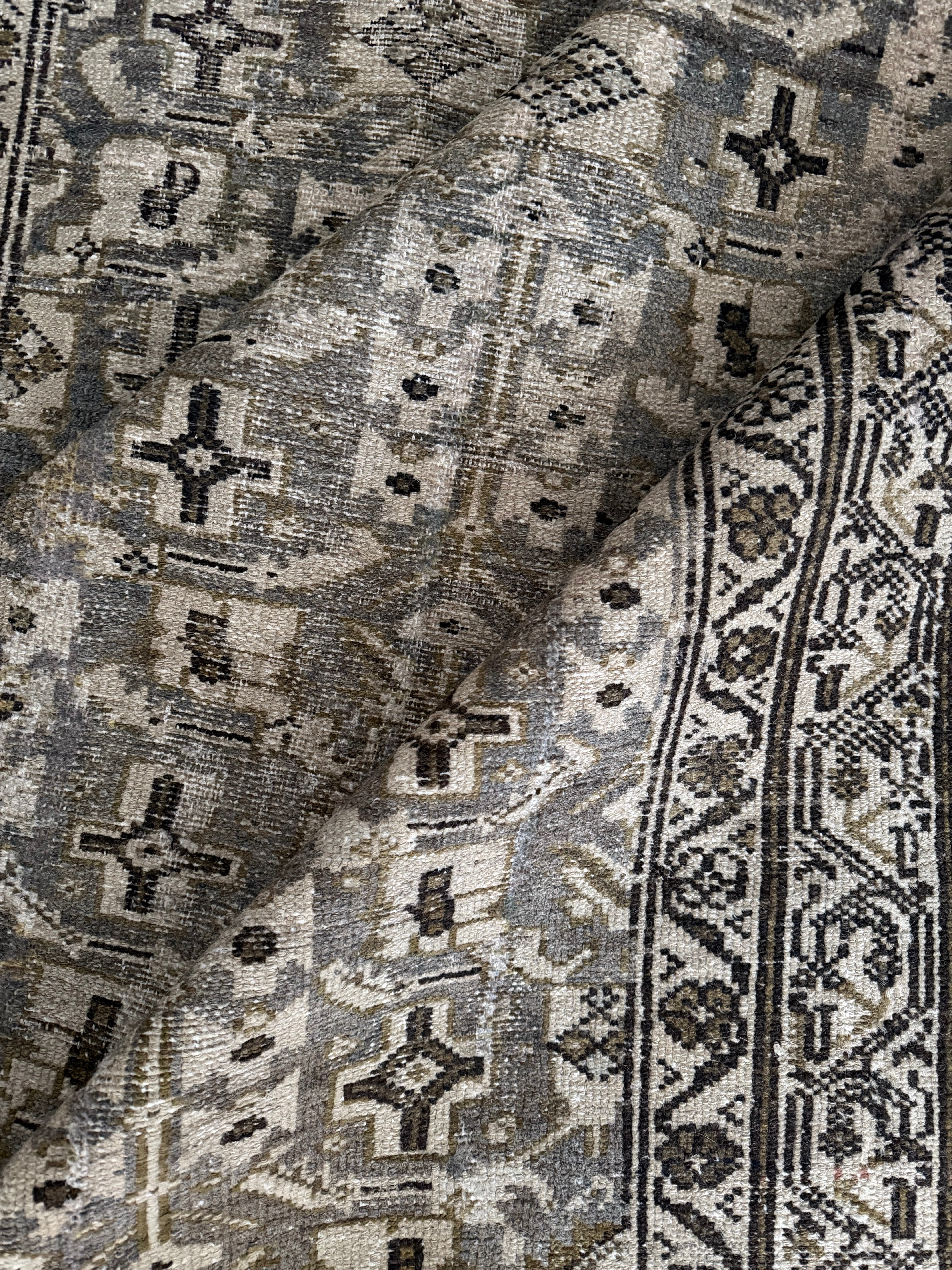 Because of the nature of this item, there may be slight imperfections in its wear, shape, dimensions, and color. Our rugs have been repaired over the years, using various techniques. There might be evidence of these repairs through texture, look and feel. This is all part of the rich history and story of each artistic piece. These markings are not considered defective.