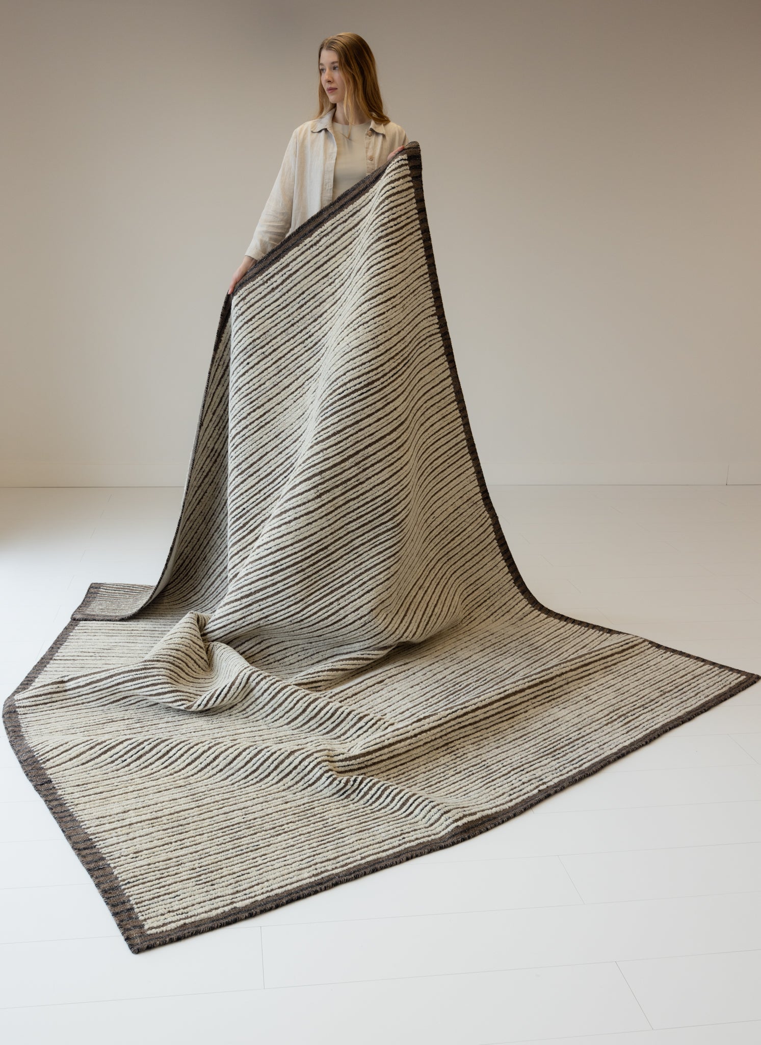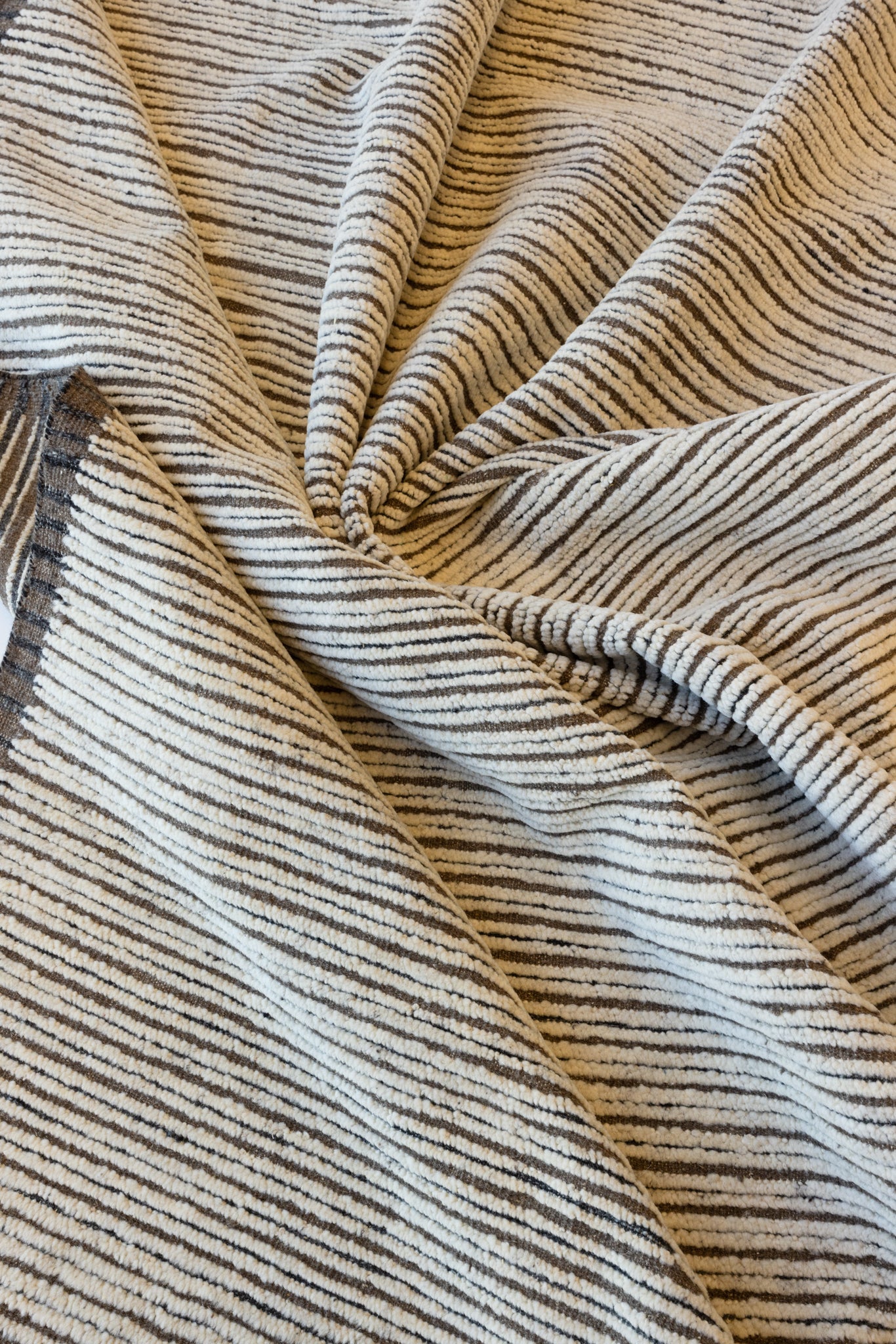 Tight-knotted, drapery feel. Soft to the touch, thick and plush.