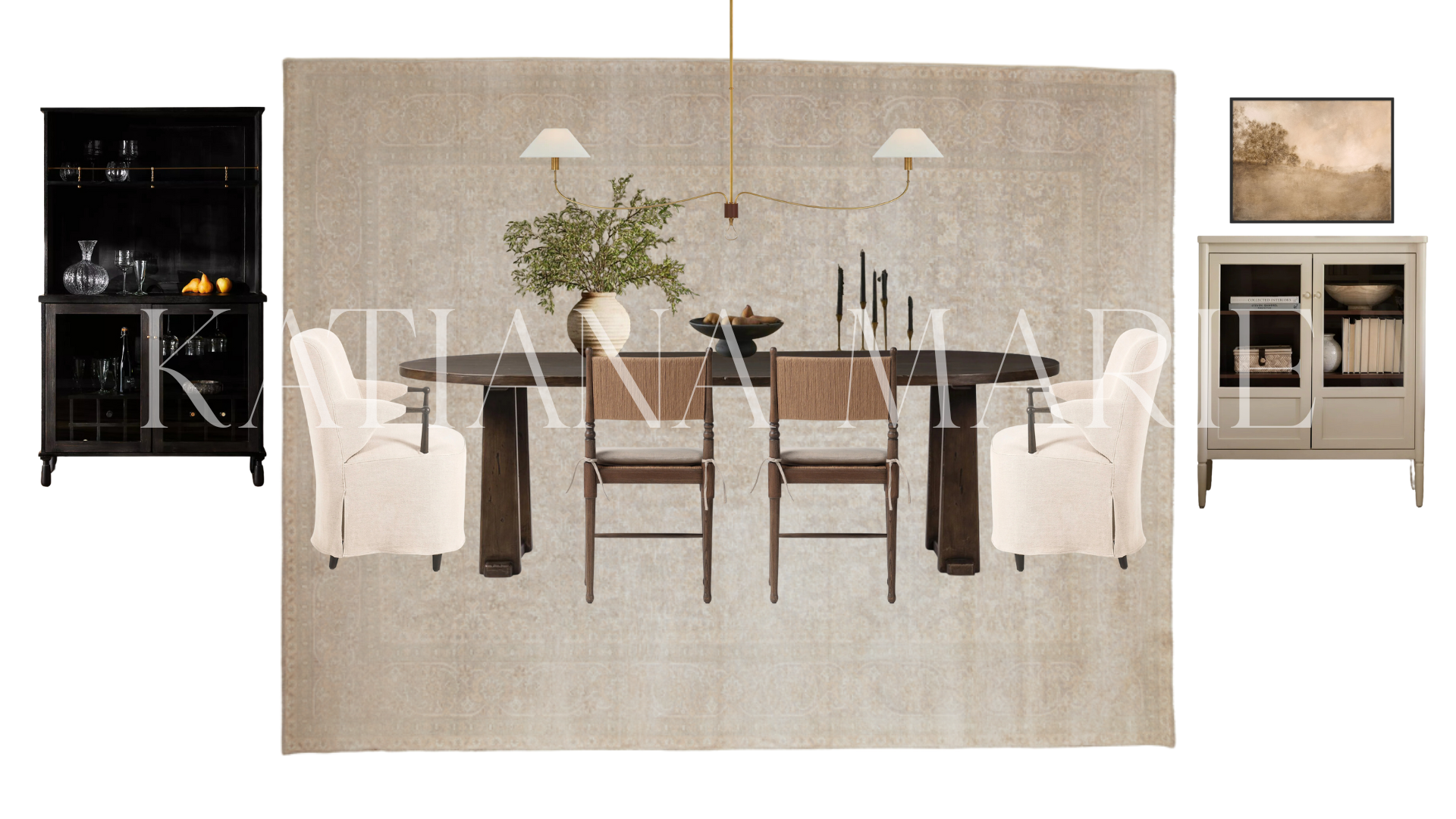 Looking for styling inspiration? Download our complimentary mood board featuring the Odette Rug, designed by Katiana Marie. This full dining room design captures the relaxed elegance of California Casual style with warm neutrals, natural textures, and timeless pieces - with direct links to every product shown so you can easily recreate the look in your own home.