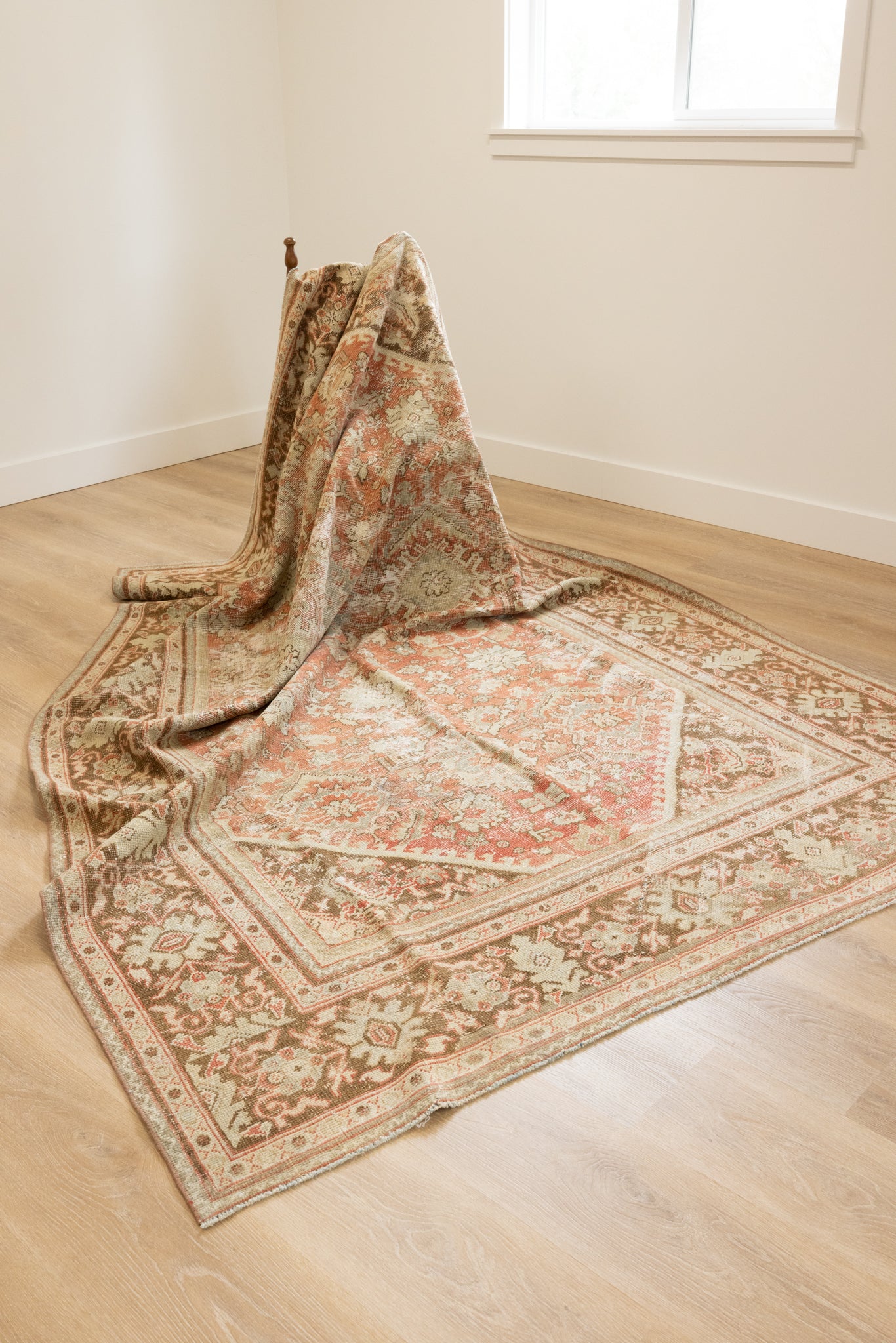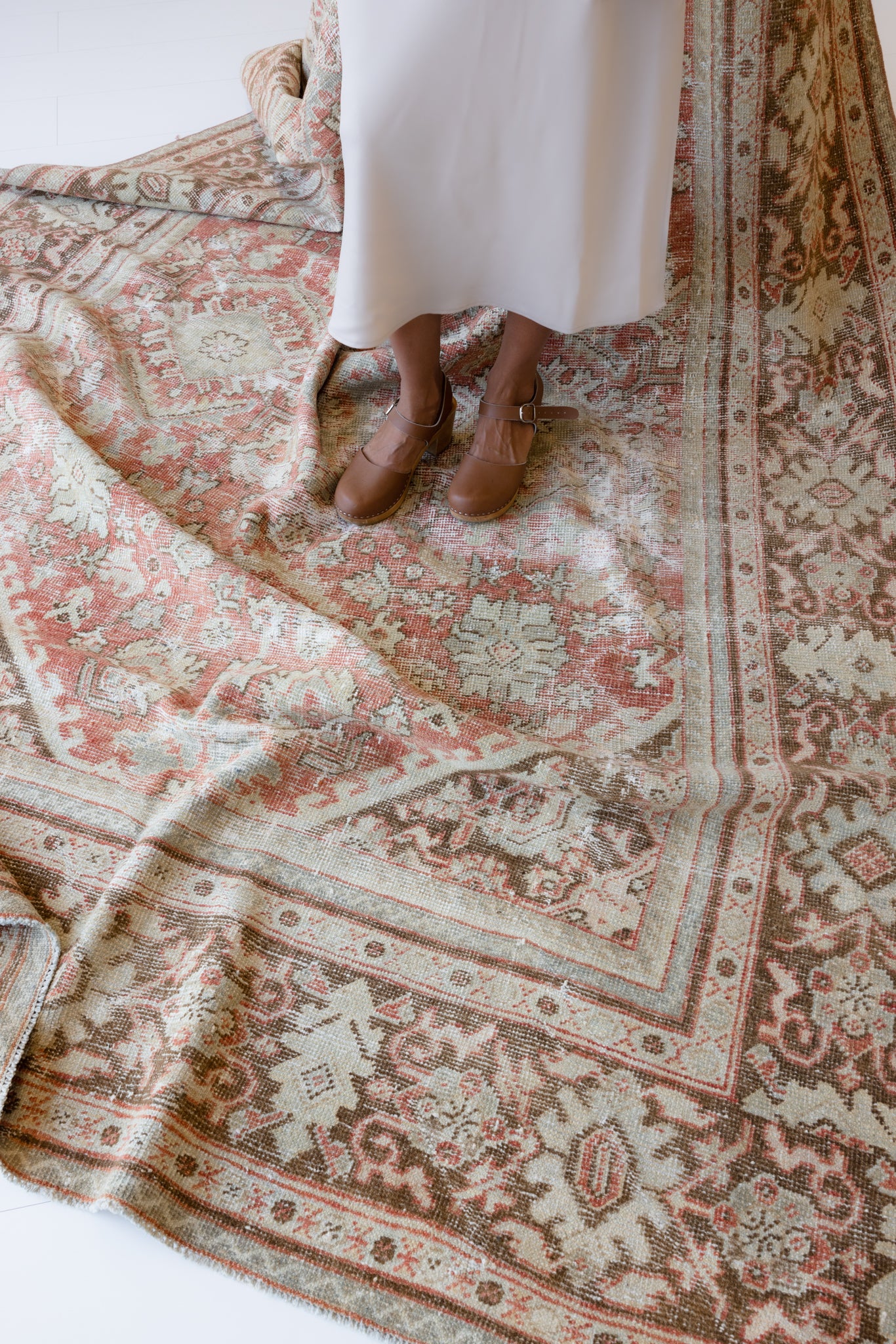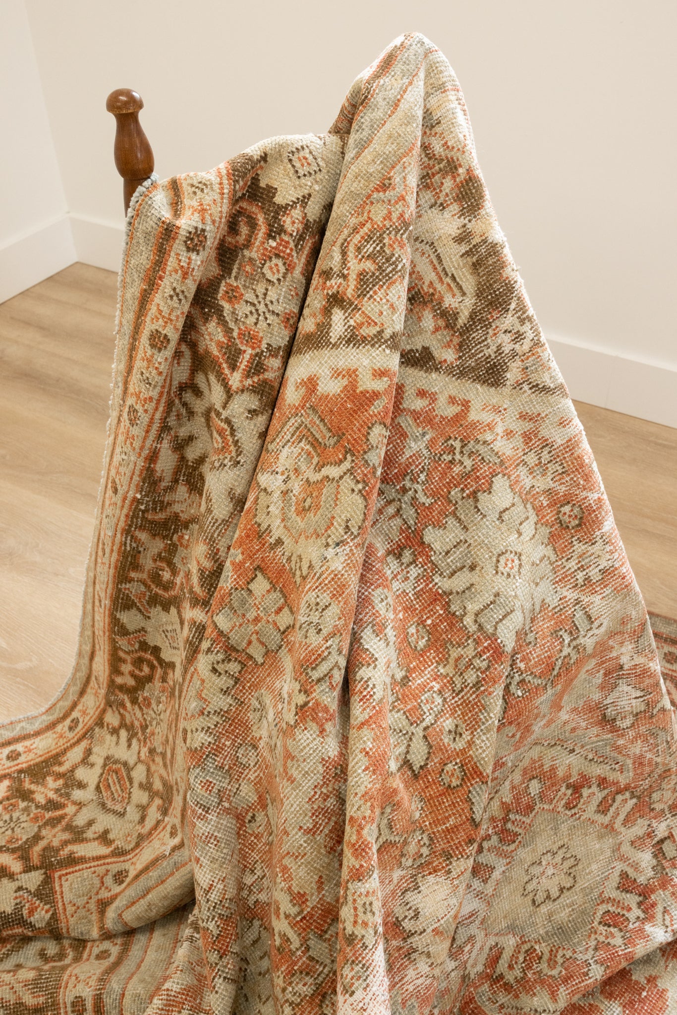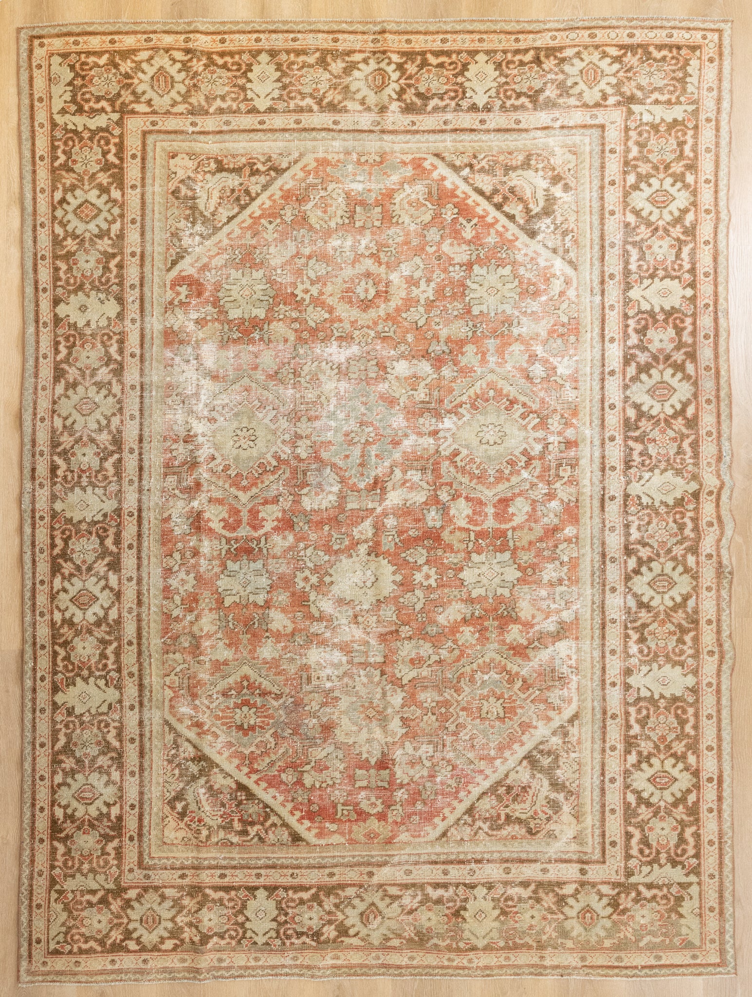 Because of the nature of this item, there may be slight imperfections in its wear, shape, dimensions, and color. Our rugs have been repaired over the years, using various techniques. There might be evidence of these repairs through texture, look and feel. This is all part of the rich history and story of each artistic piece. These markings are not considered defective.