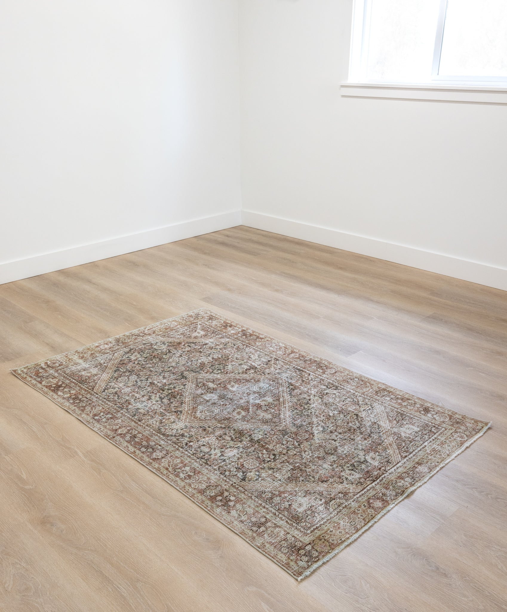 This rug has been professionally cleaned. Spot clean using the blotting technique, using a damp cloth. Take to a professional cleaner if the rug requires a deeper clean.