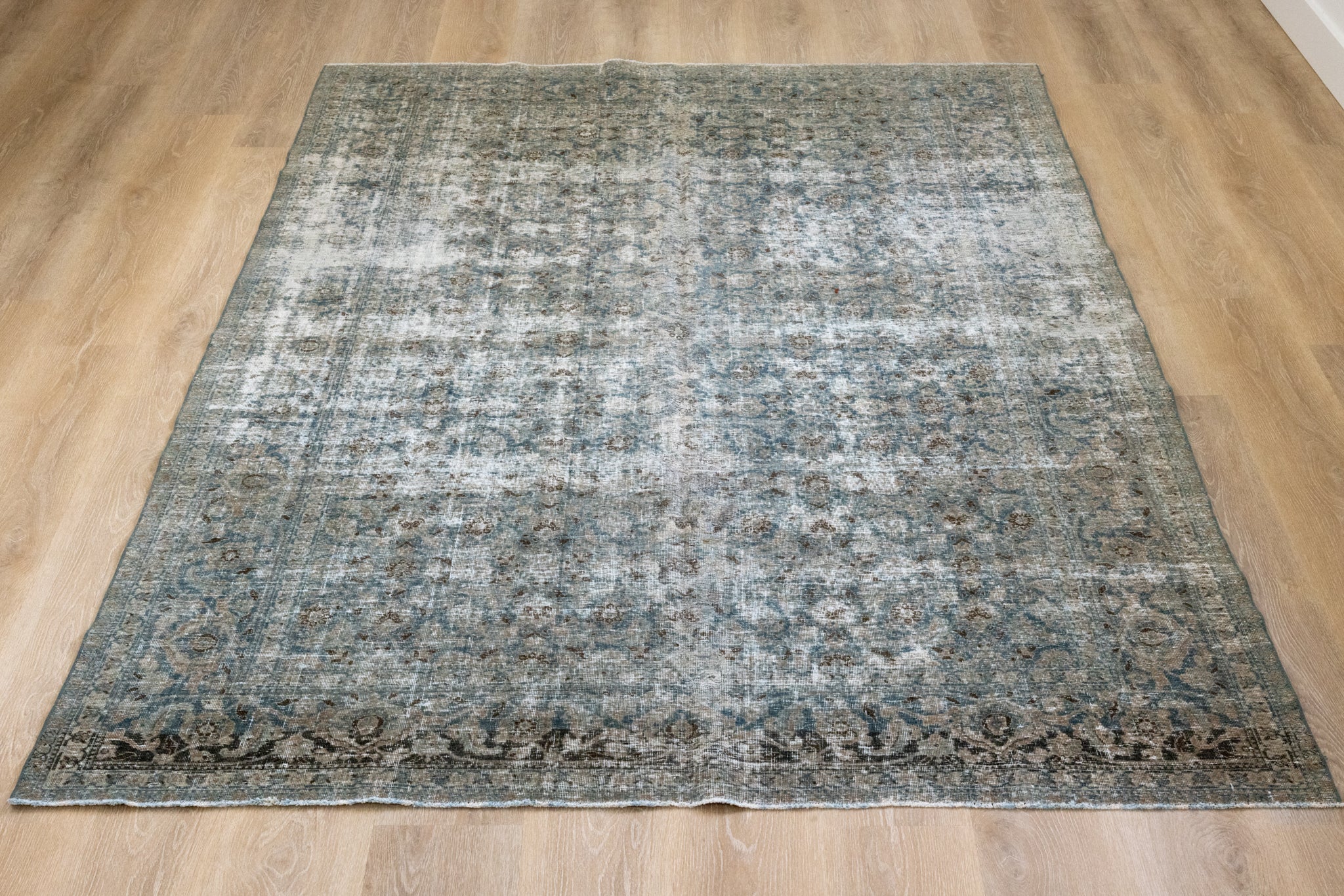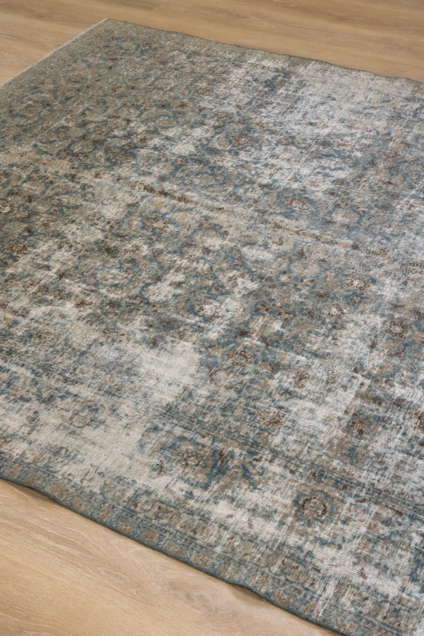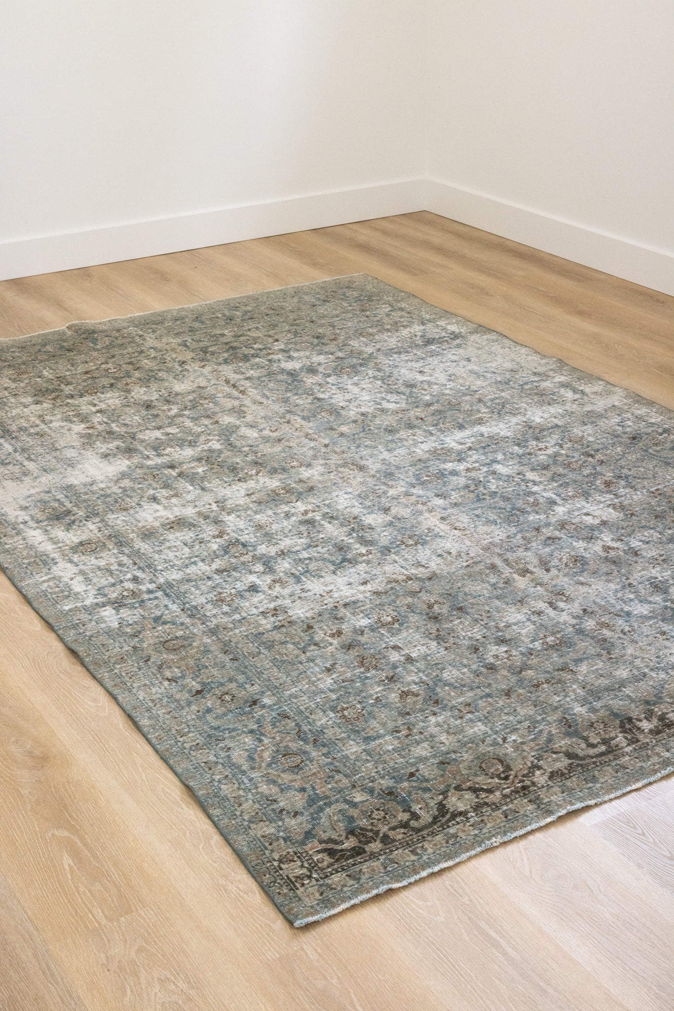 This rug has been professionally cleaned. Spot clean using the blotting technique, using a damp cloth. Take to a professional cleaner if the rug requires a deeper clean.