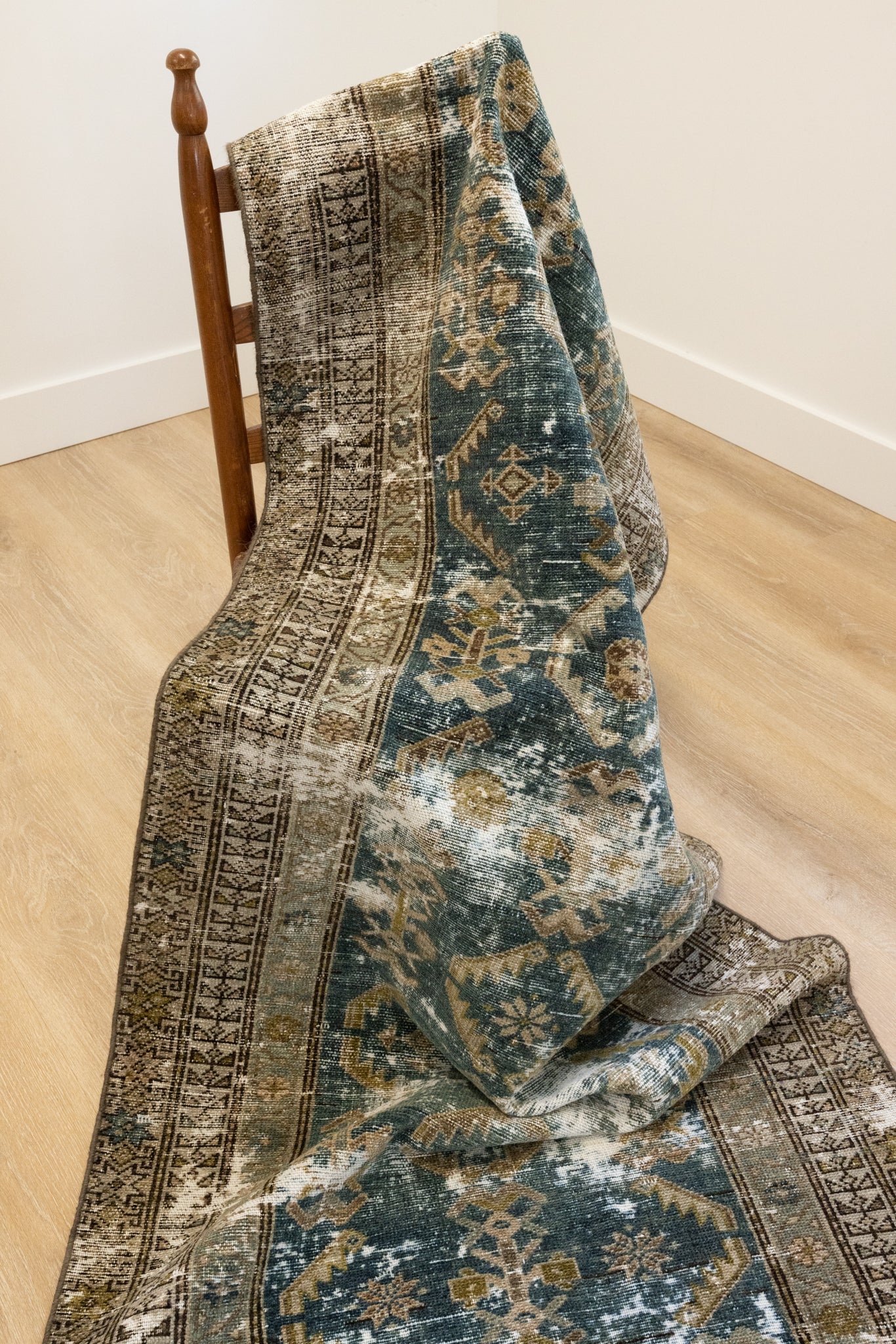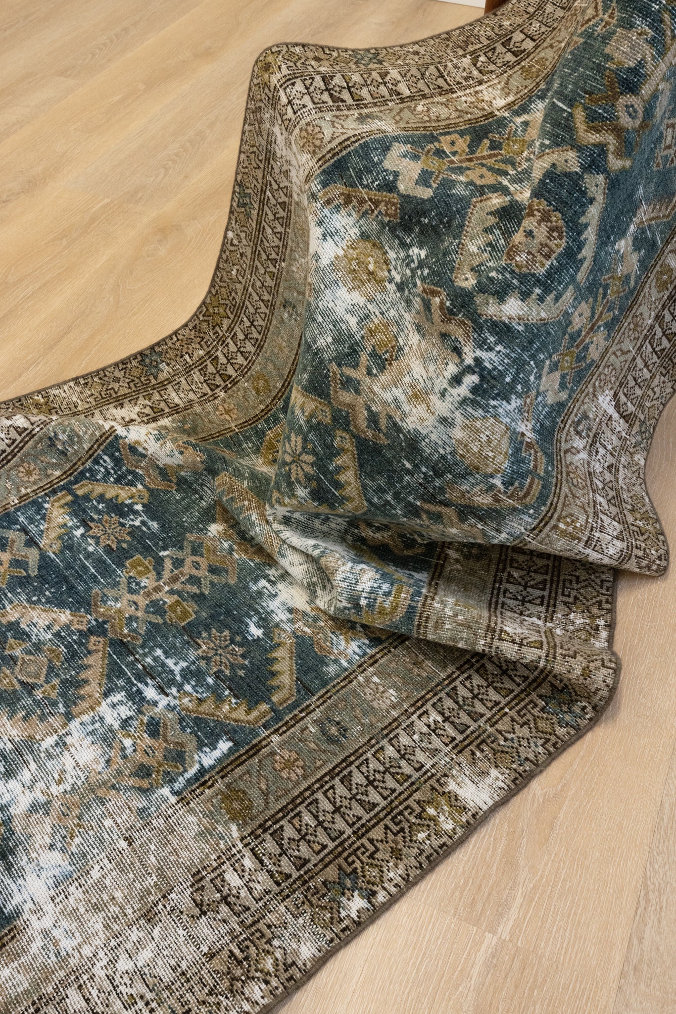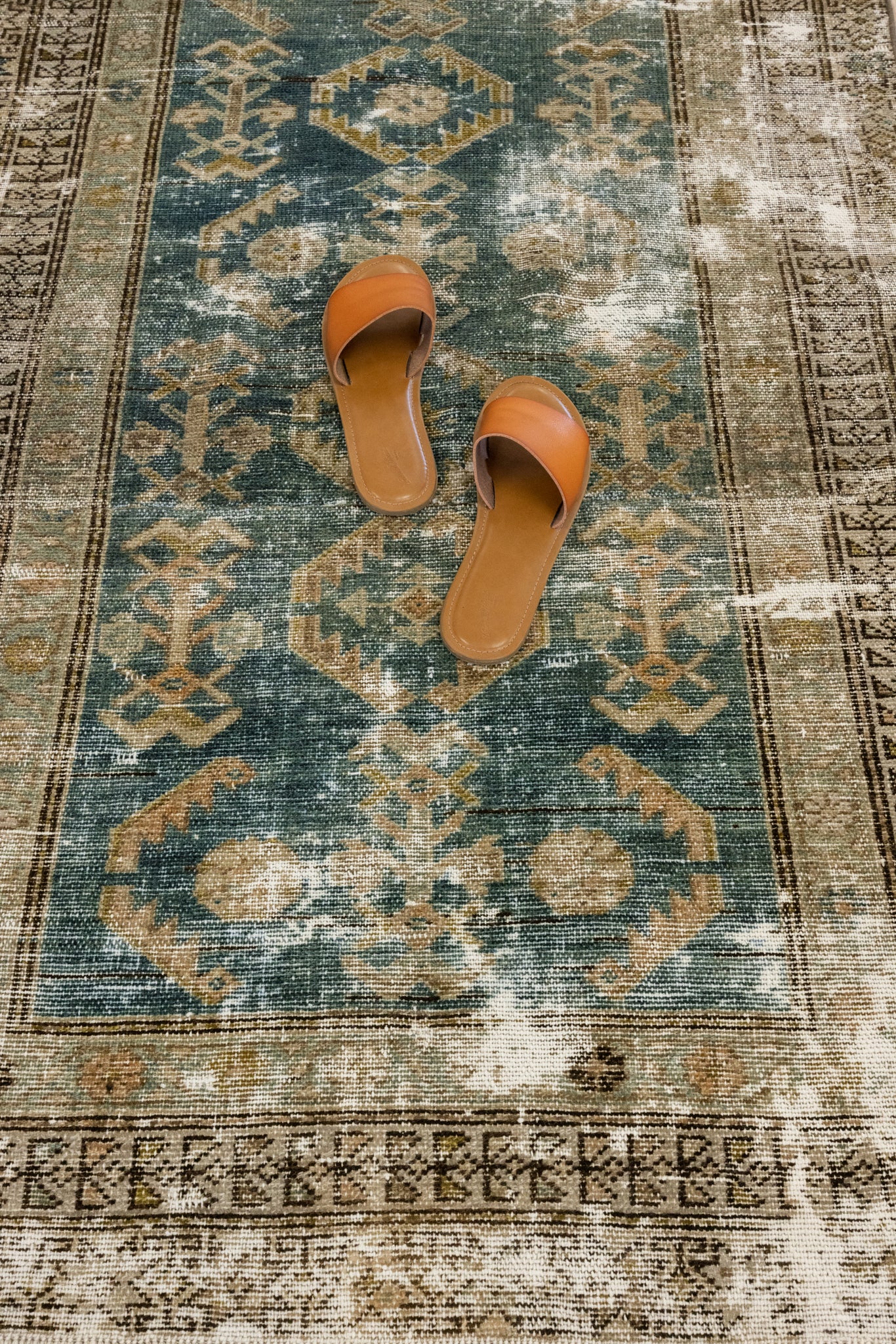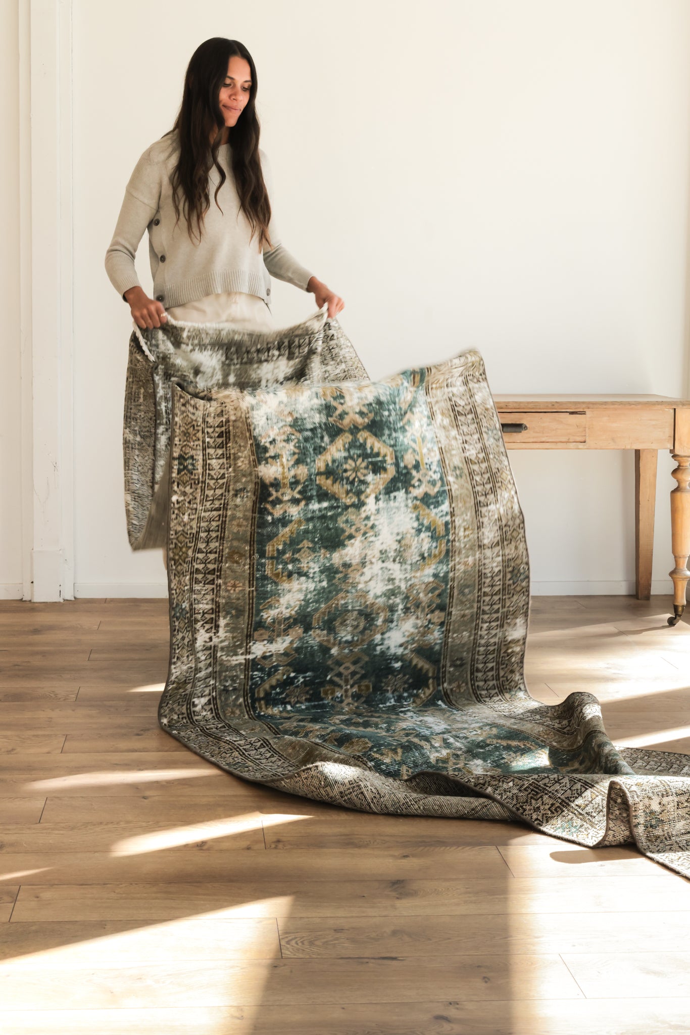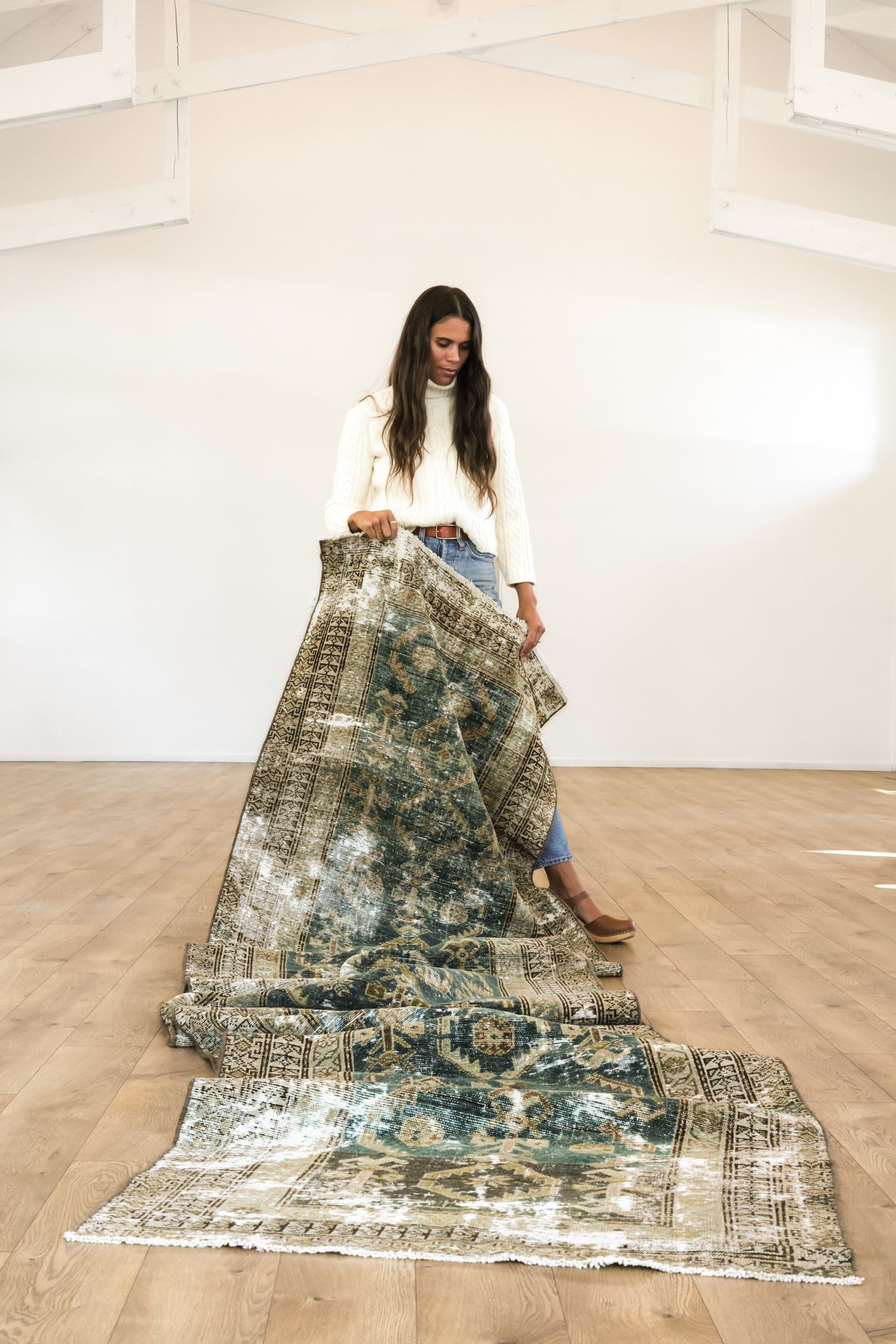 Because of the nature of this item, there may be slight imperfections in its wear, shape, dimensions, and color. Our rugs have been repaired over the years, using various techniques. There might be evidence of these repairs through texture, look and feel. This is all part of the rich history and story of each artistic piece. These markings are not considered defective.
