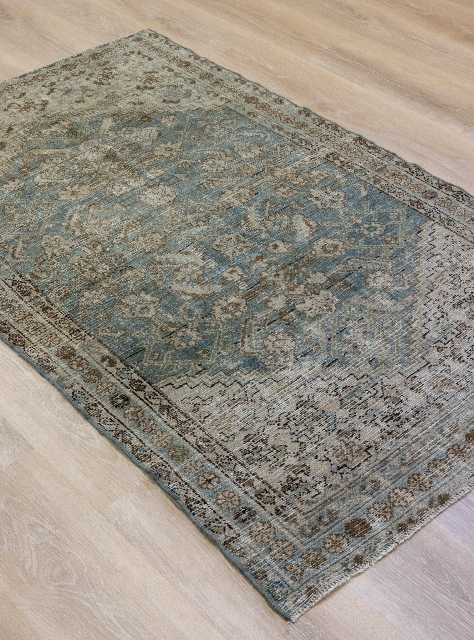 This rug has been professionally cleaned. Spot clean using the blotting technique, using a damp cloth. Take to a professional cleaner if the rug requires a deeper clean.