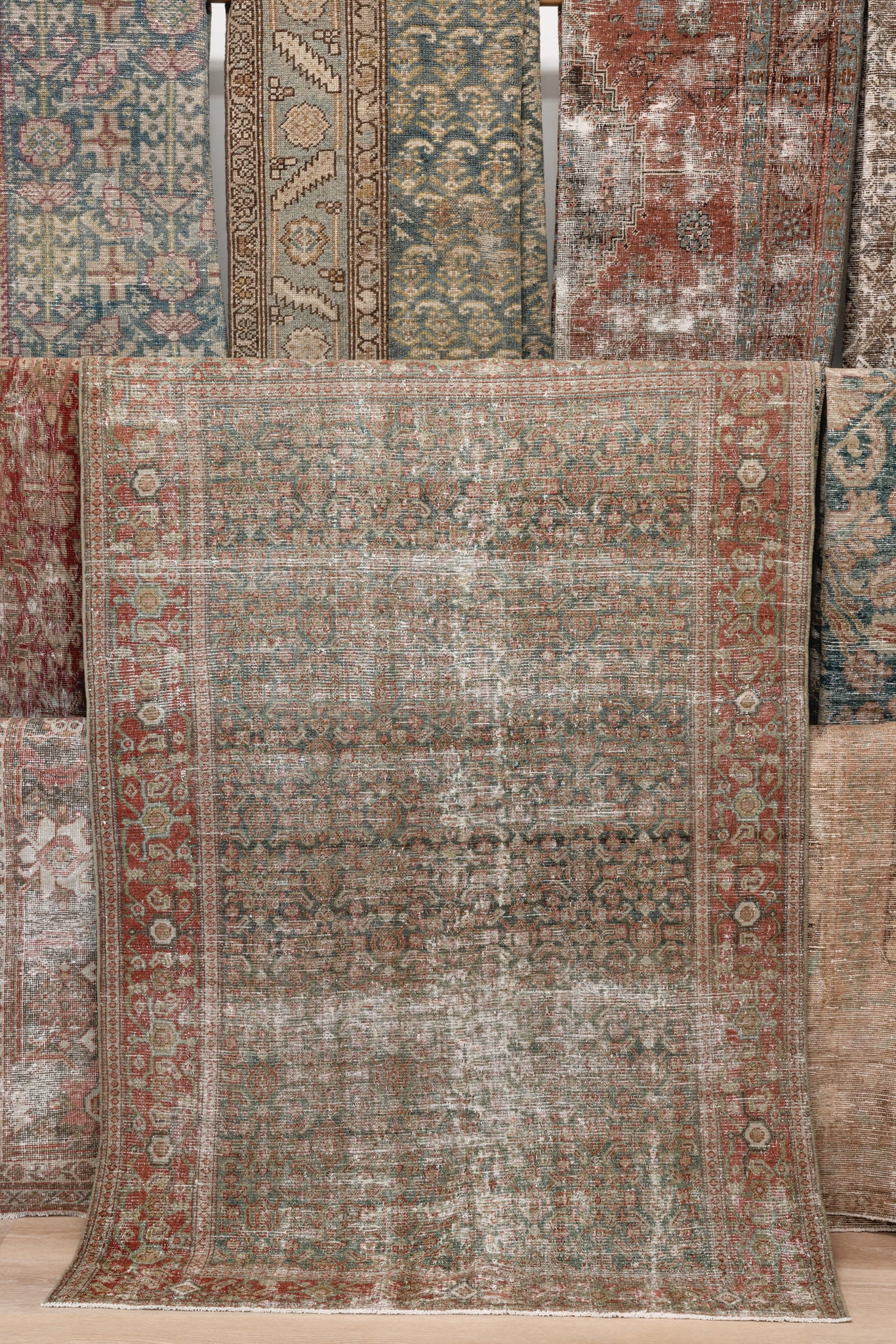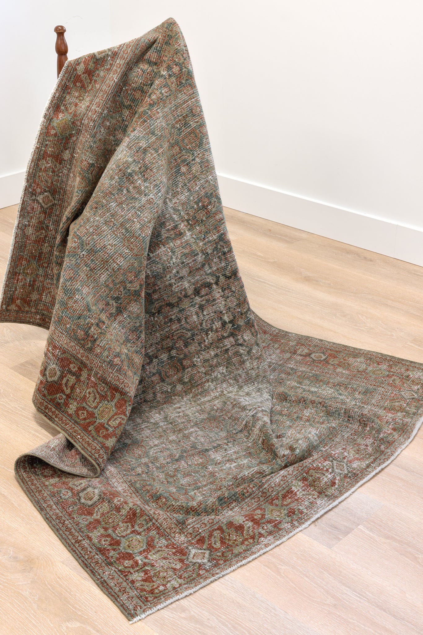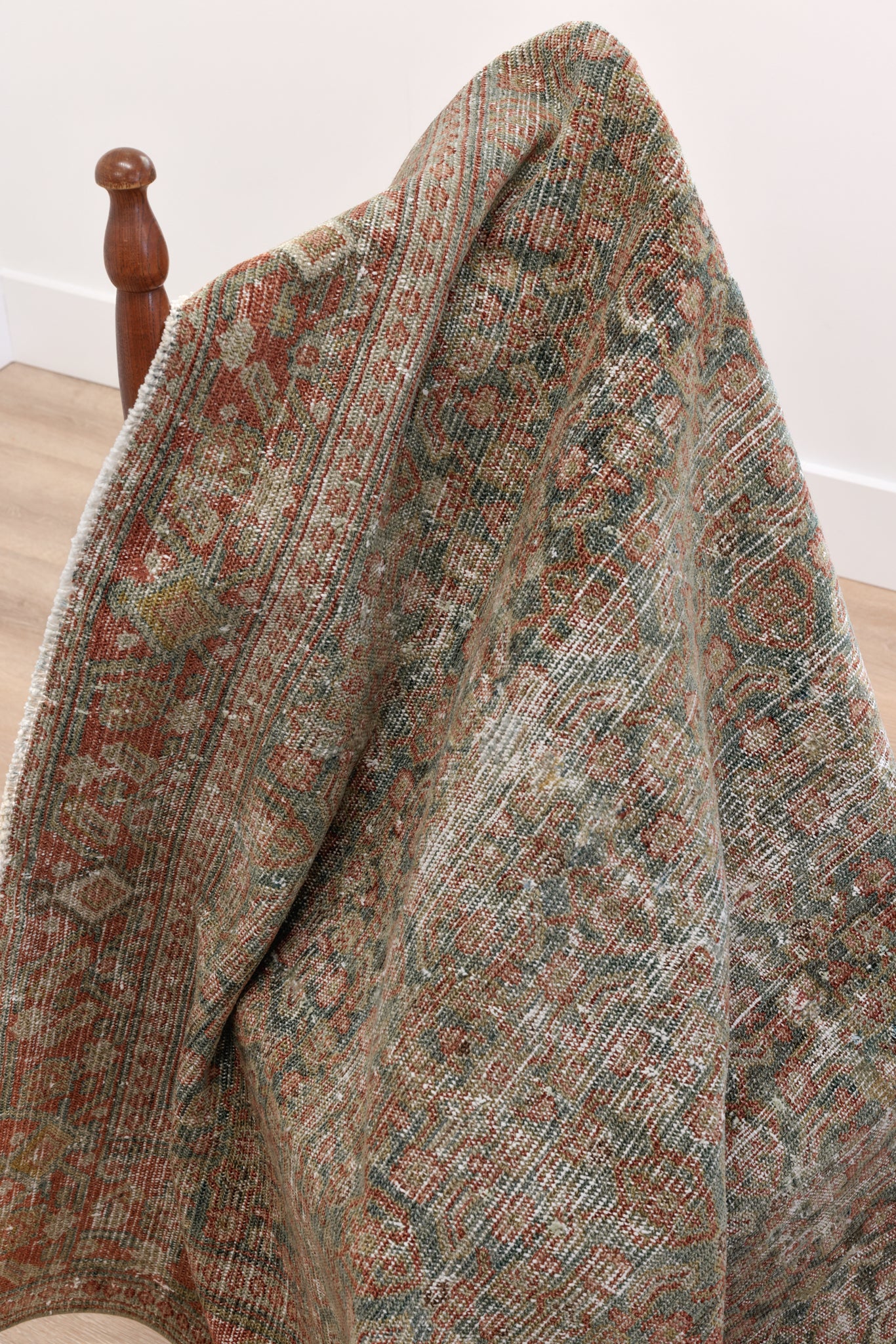 Because of the nature of this item, there may be slight imperfections in its wear, shape, dimensions, and color. Our rugs have been repaired over the years, using various techniques. There might be evidence of these repairs through texture, look and feel. This is all part of the rich history and story of each artistic piece. These markings are not considered defective.