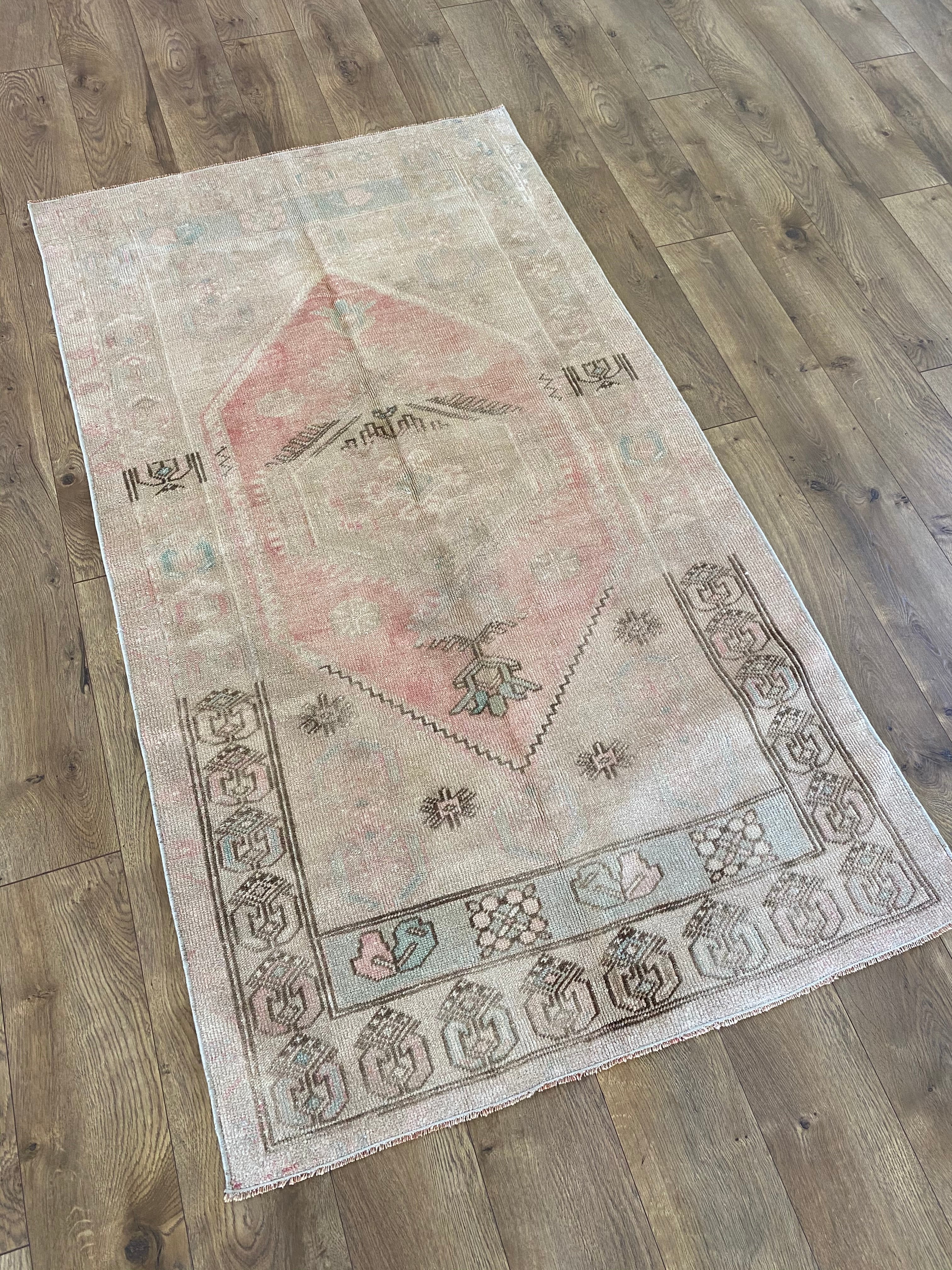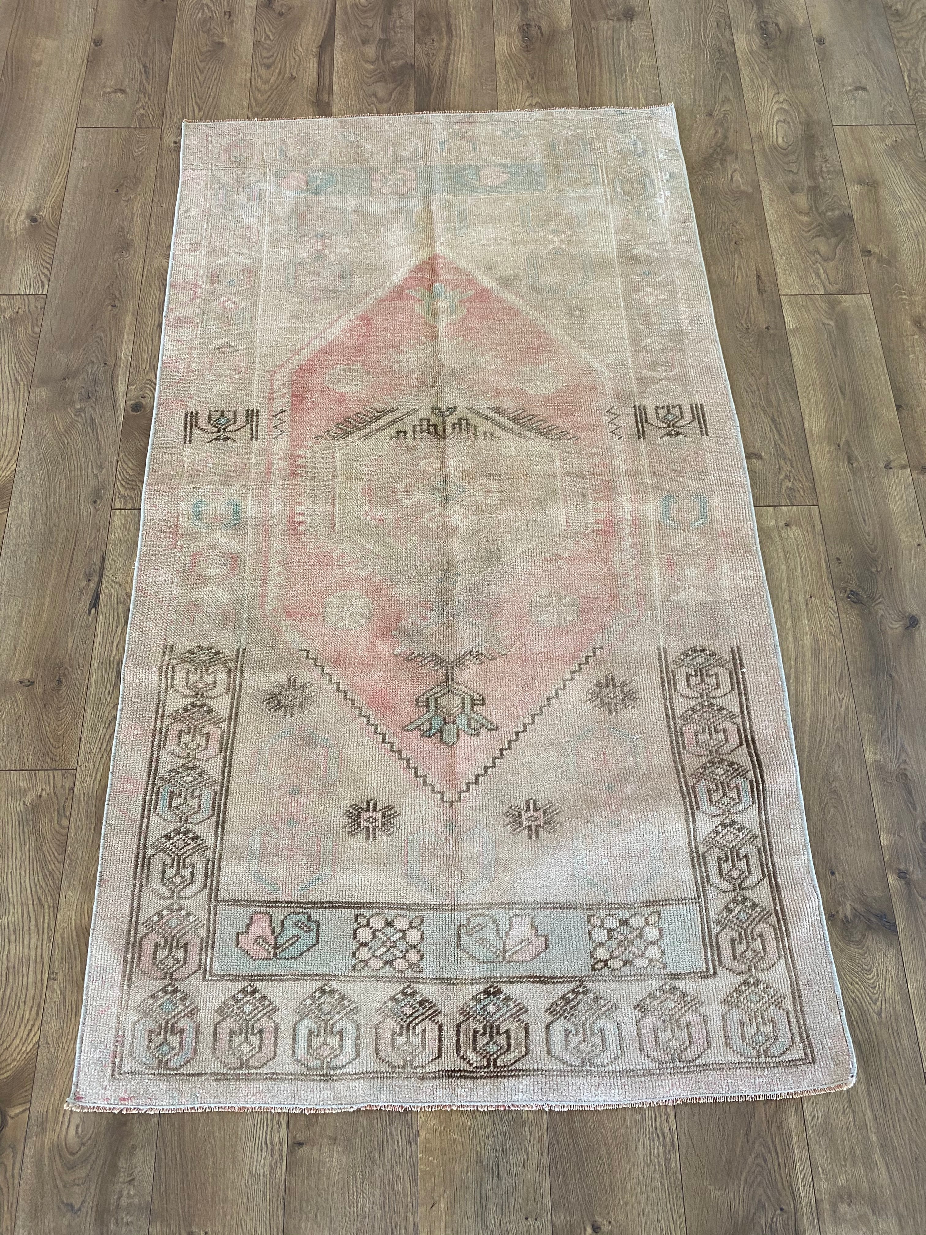 This is a one of a kind, vintage, handmade rug which was imported from Turkey.