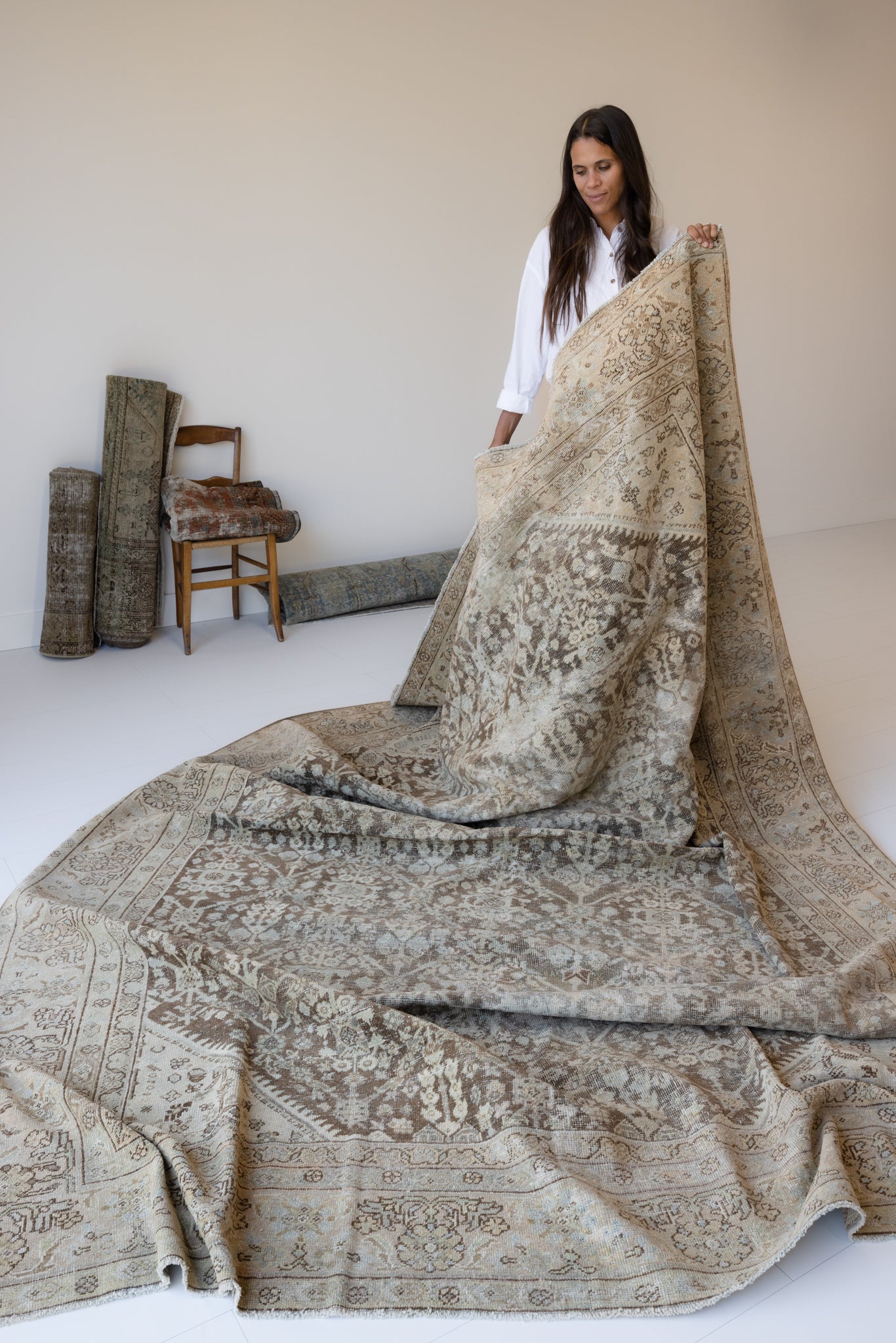 Because of the nature of this item, there may be slight imperfections in its wear, shape, dimensions, and color. Our rugs have been repaired over the years, using various techniques. There might be evidence of these repairs through texture, look and feel. This is all part of the rich history and story of each artistic piece. These markings are not considered defective.