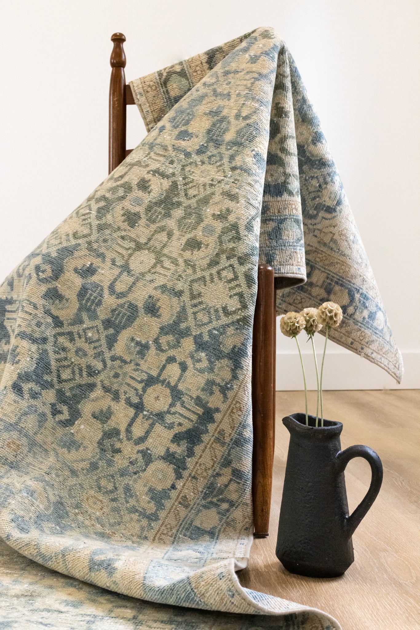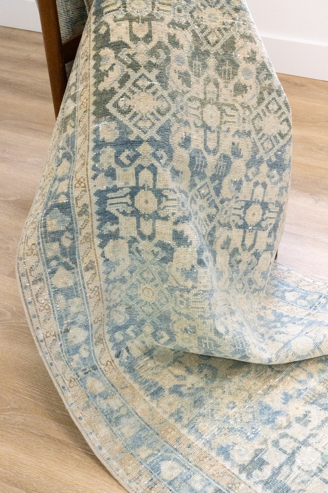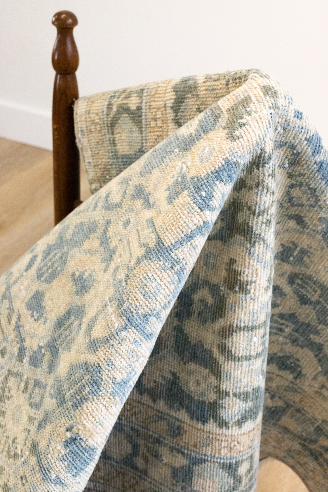Please note that because this is a vintage rug, there may be slight imperfections in its wear, dimensions, and color. Our rugs have been repaired over the years, using various techniques. There might be evidence of these repairs through texture, look and feel. This is all part of the rich history and story of each artistic piece. These markings are not considered defective.