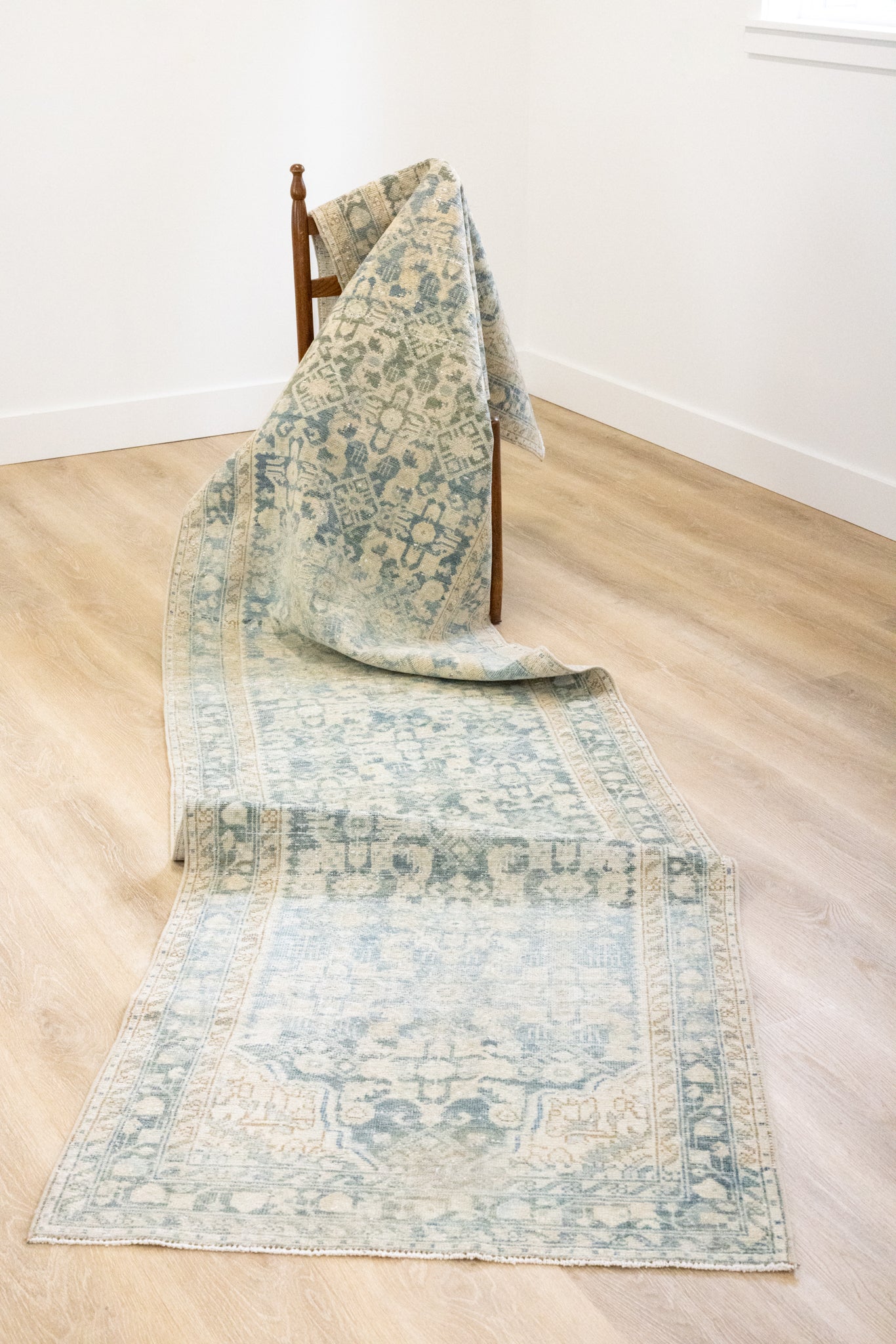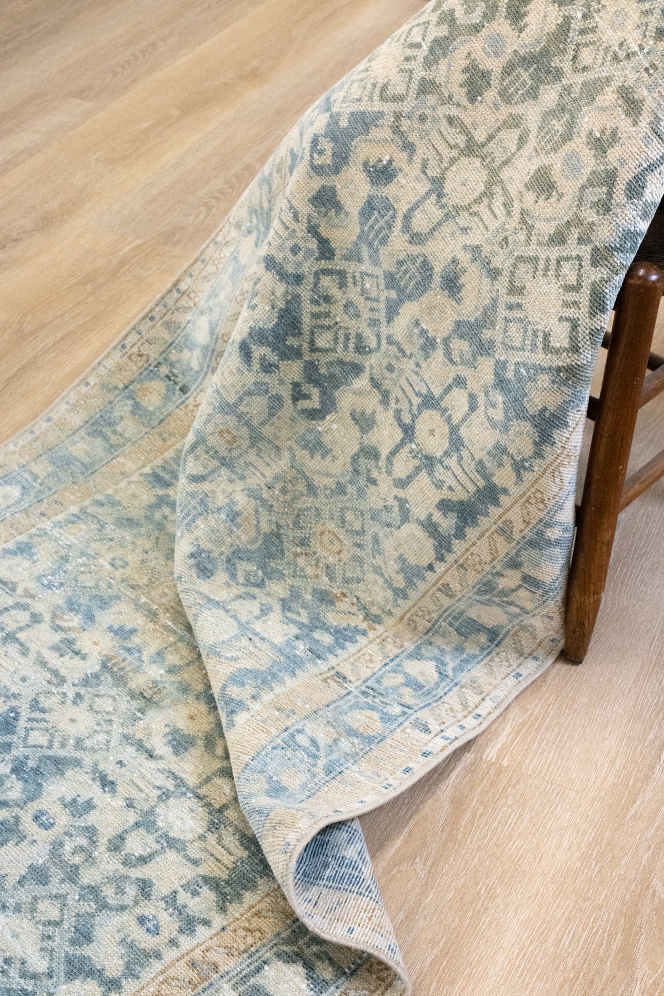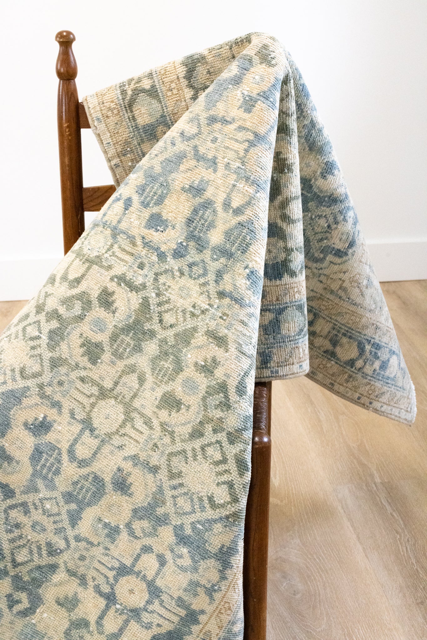 Please note that because this is a vintage rug, there may be slight imperfections in its wear, dimensions, and color. Our rugs have been repaired over the years, using various techniques. There might be evidence of these repairs through texture, look and feel. This is all part of the rich history and story of each artistic piece. These markings are not considered defective.
