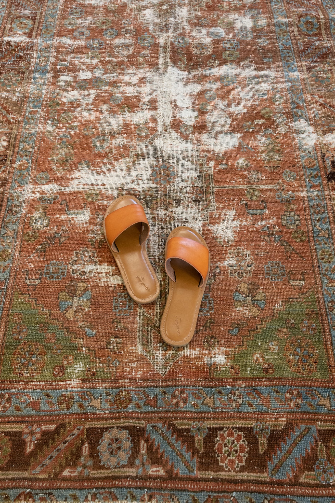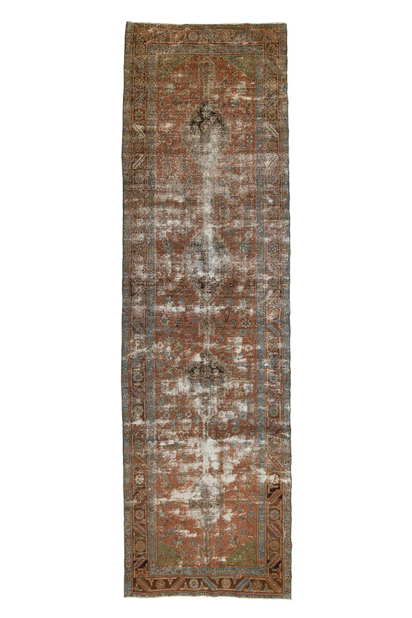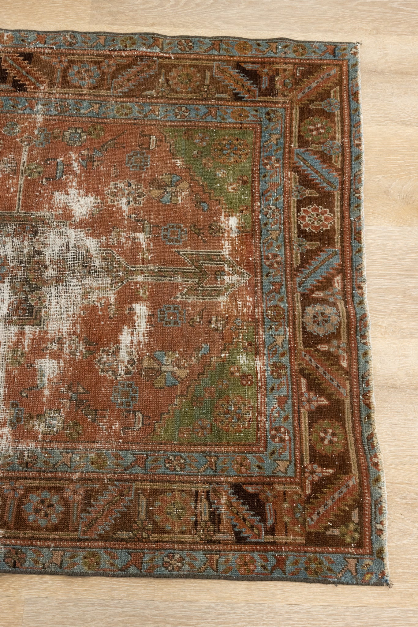 Because of the nature of this item, there may be slight imperfections in its wear, shape, dimensions, and color. Our rugs have been repaired over the years using various techniques. There might be evidence of these repairs through texture, look and feel. This is all part of the rich history and story of each artistic piece. These markings are not considered defective.