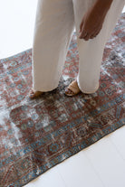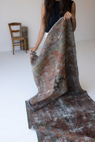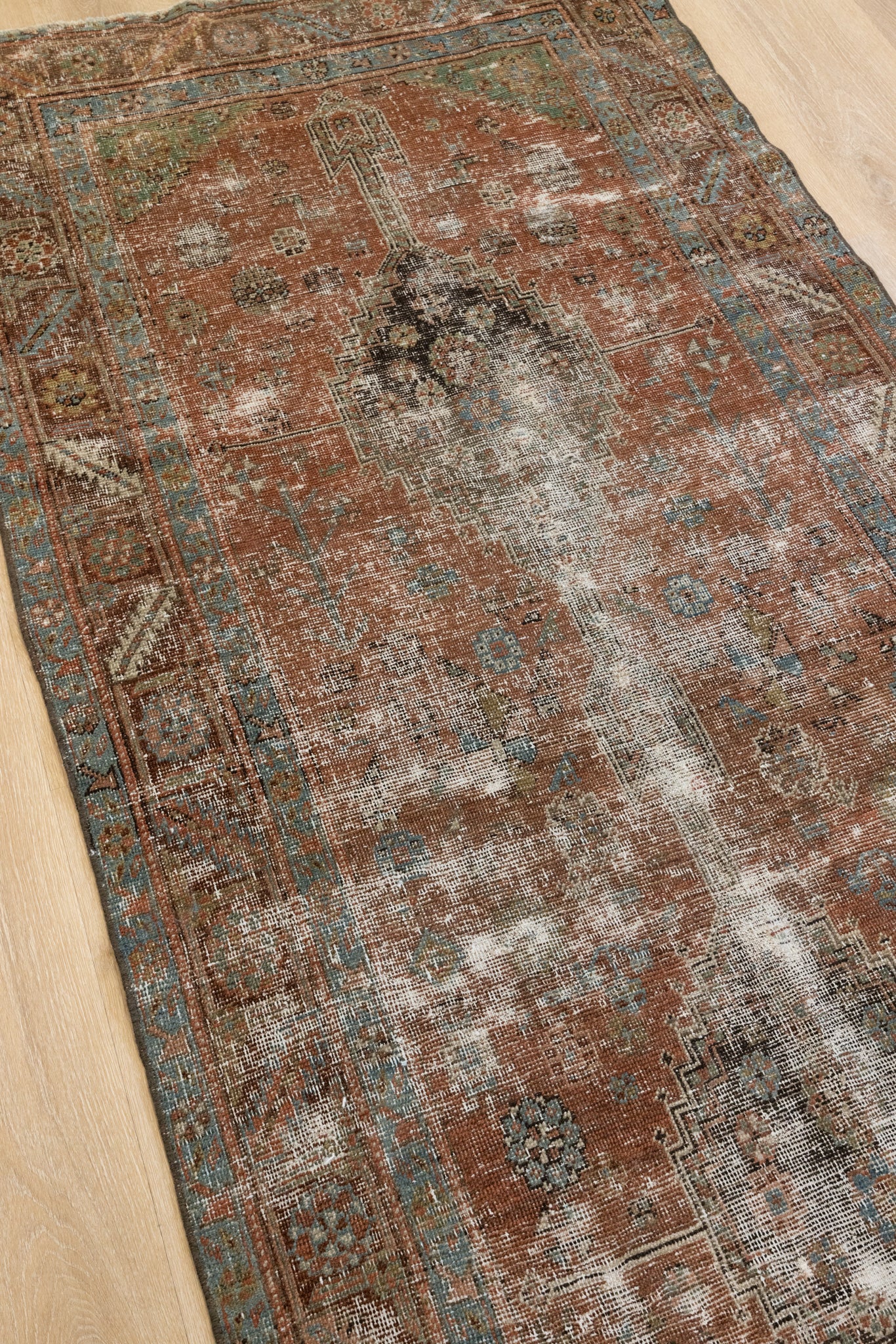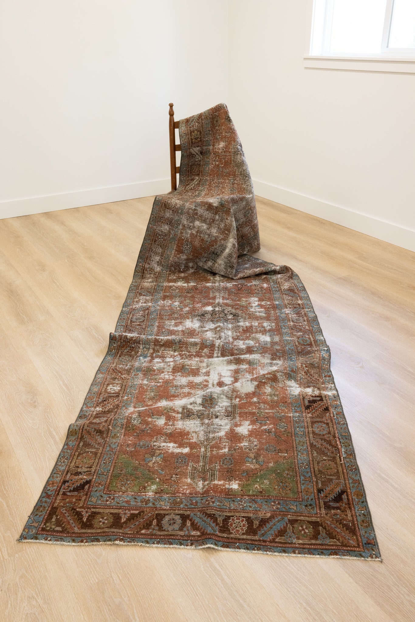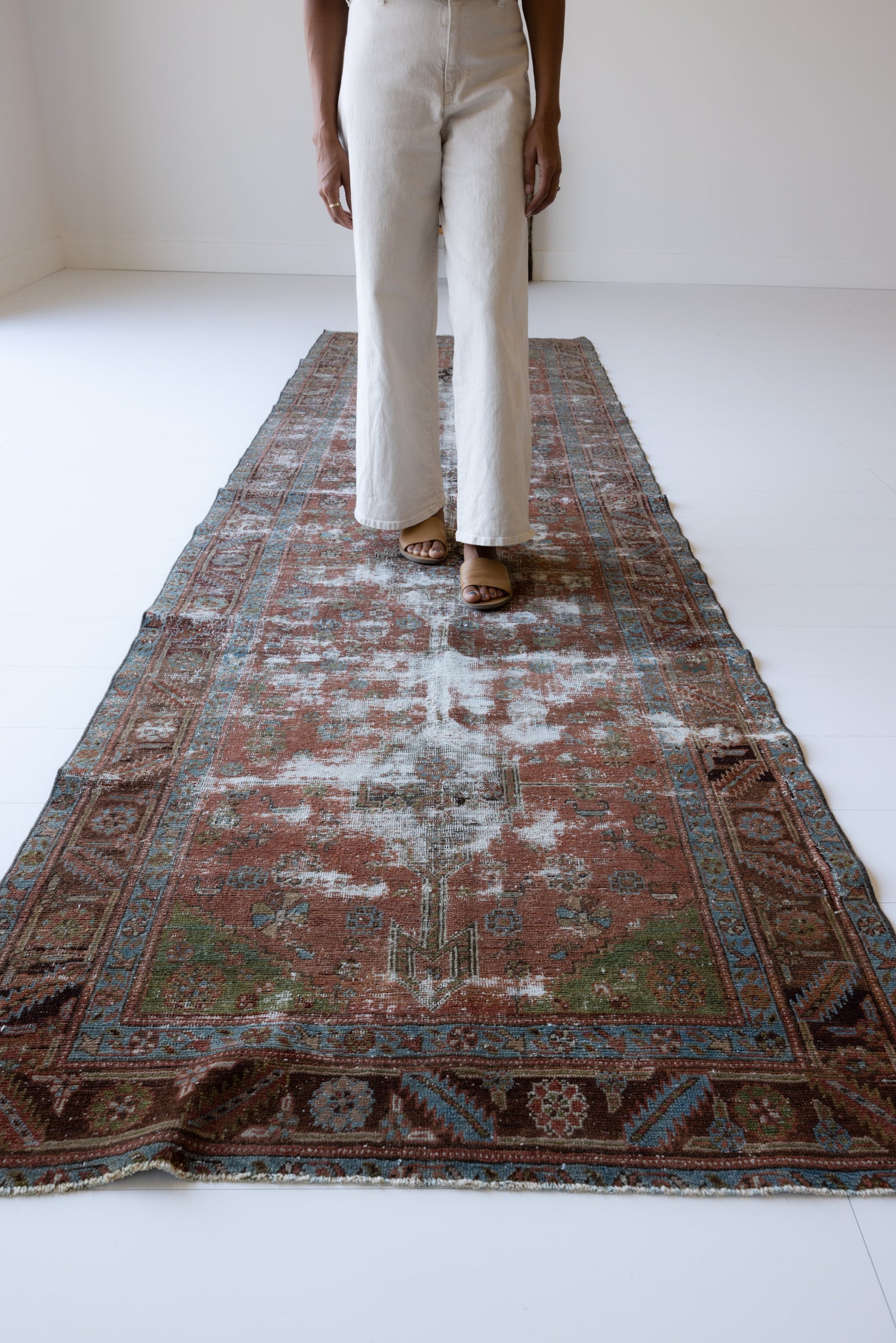 Because of the nature of this item, there may be slight imperfections in its wear, shape, dimensions, and color. Our rugs have been repaired over the years using various techniques. There might be evidence of these repairs through texture, look and feel. This is all part of the rich history and story of each artistic piece. These markings are not considered defective.