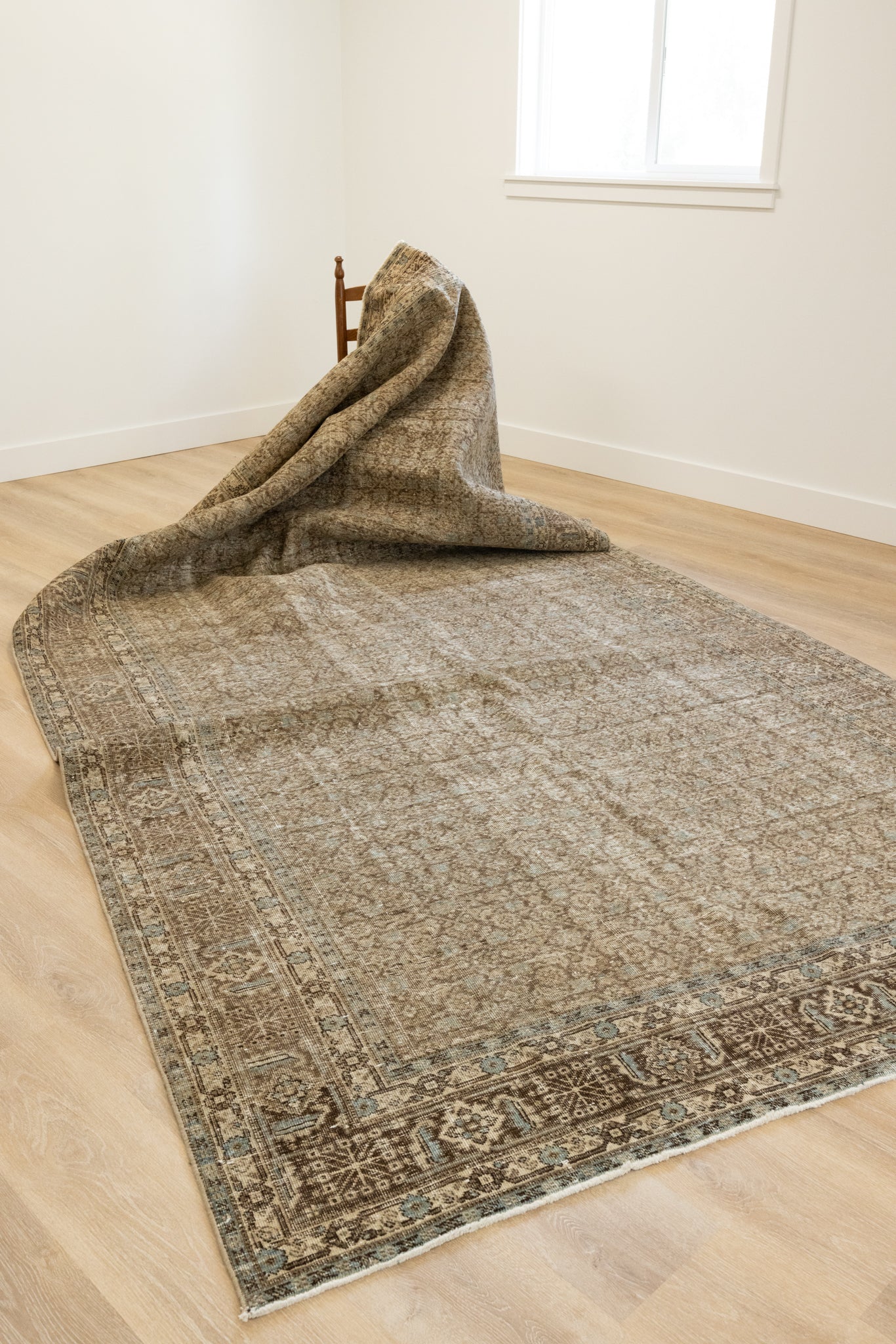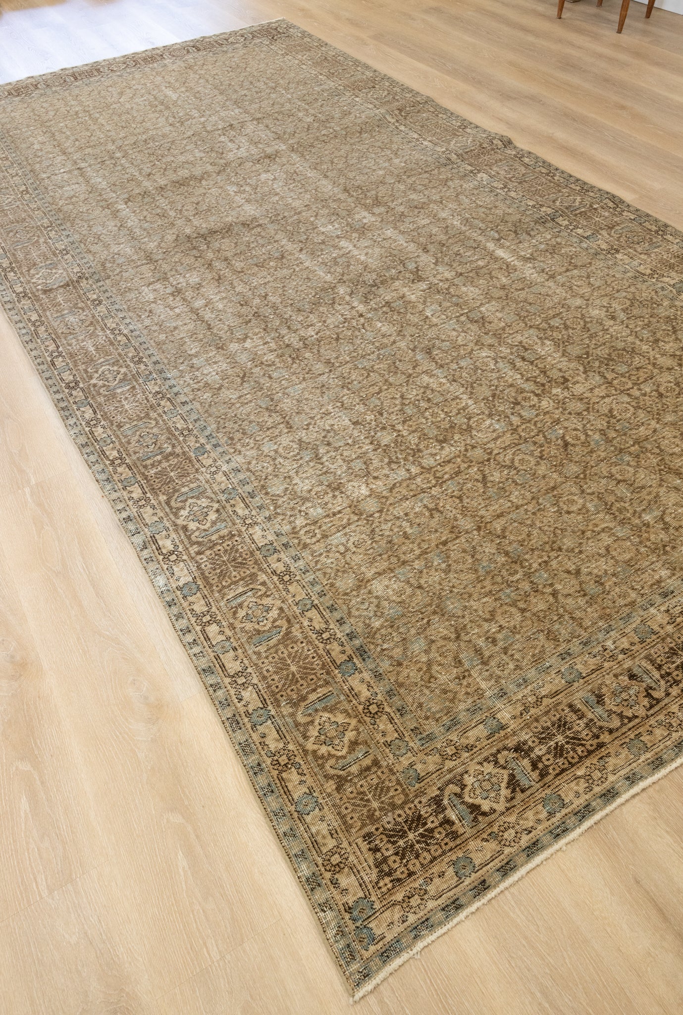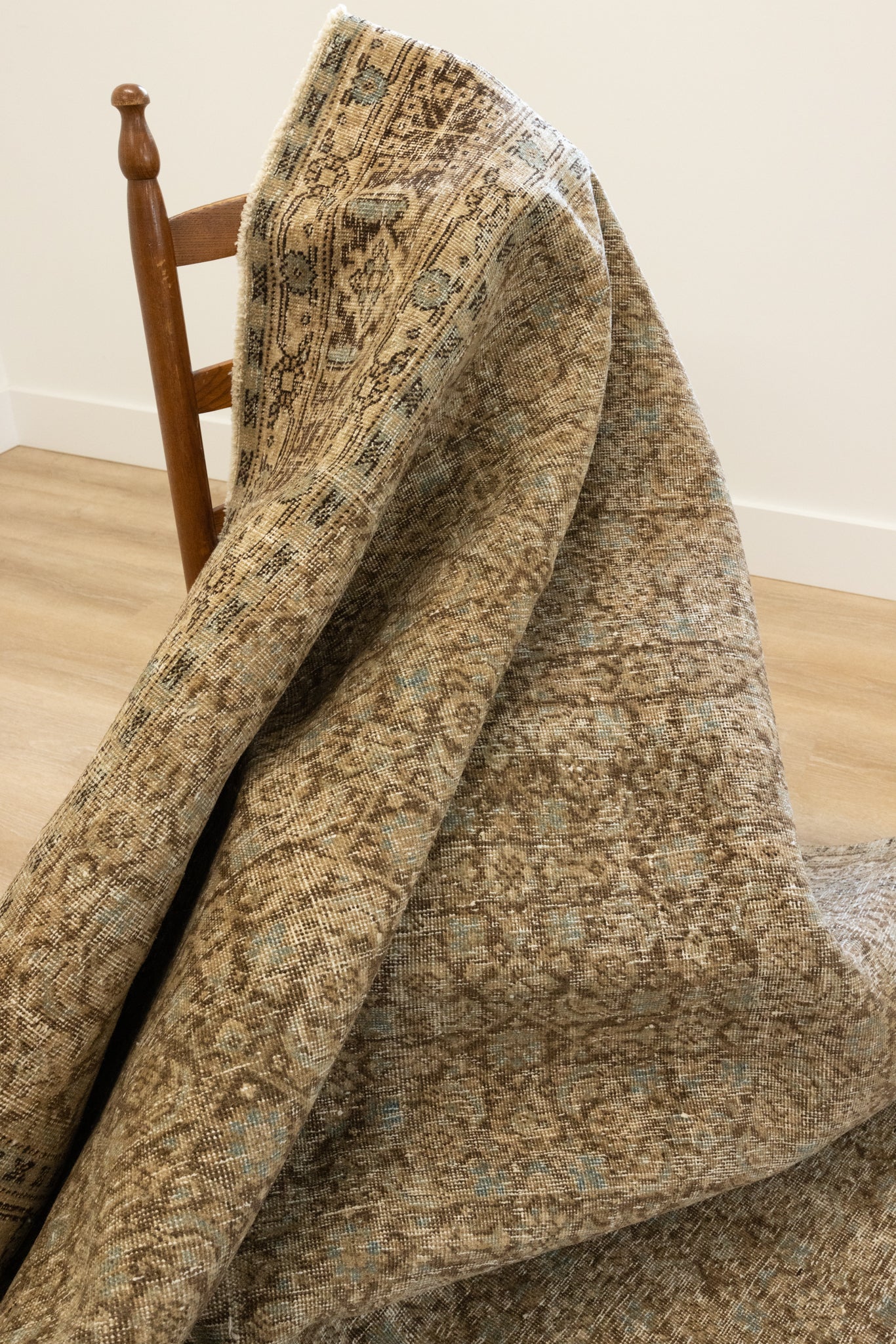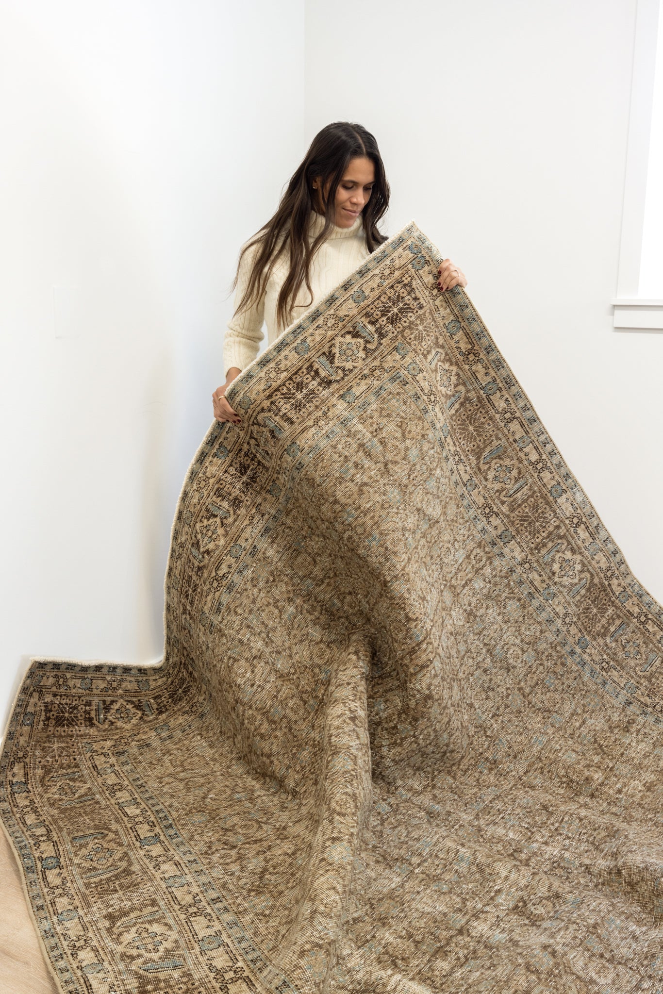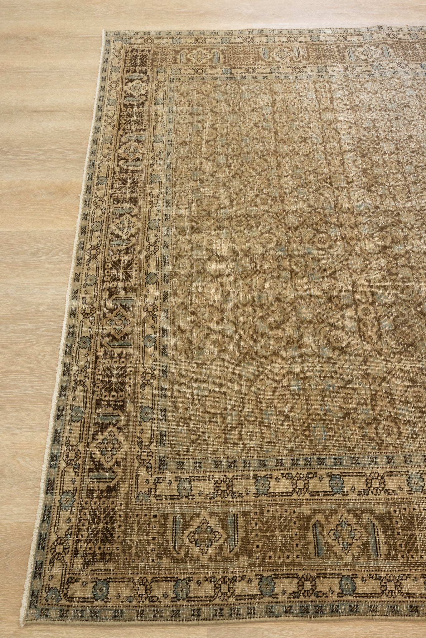 Please note that because this is a vintage rug, there may be slight imperfections in its wear, dimensions, and color. Our rugs have been repaired over the years, using various techniques. There might be evidence of these repairs through texture, look and feel. This is all part of the rich history and story of each artistic piece. These markings are not considered defective.