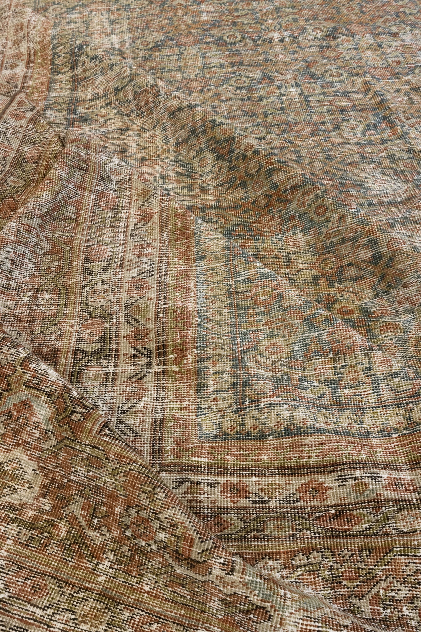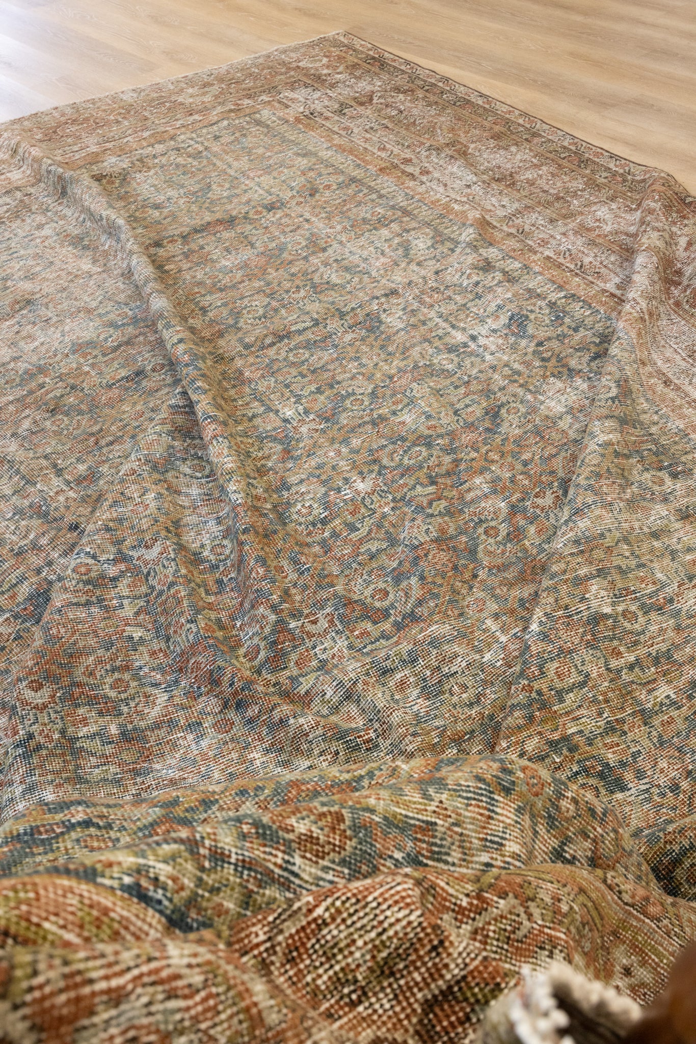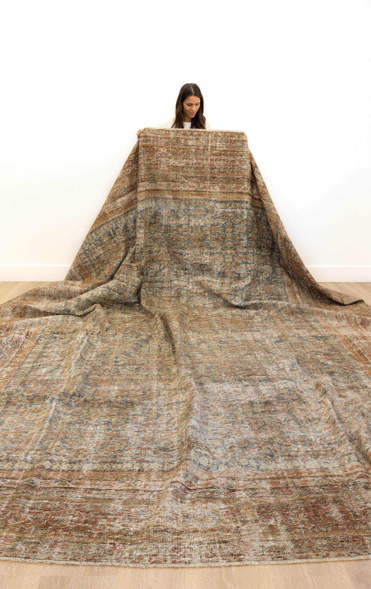 Because of the nature of this item, there may be slight imperfections in its wear, shape, dimensions, and color. Our rugs have been repaired over the years, using various techniques. There might be evidence of these repairs through texture, look and feel. This is all part of the rich history and story of each artistic piece. These markings are not considered defective.