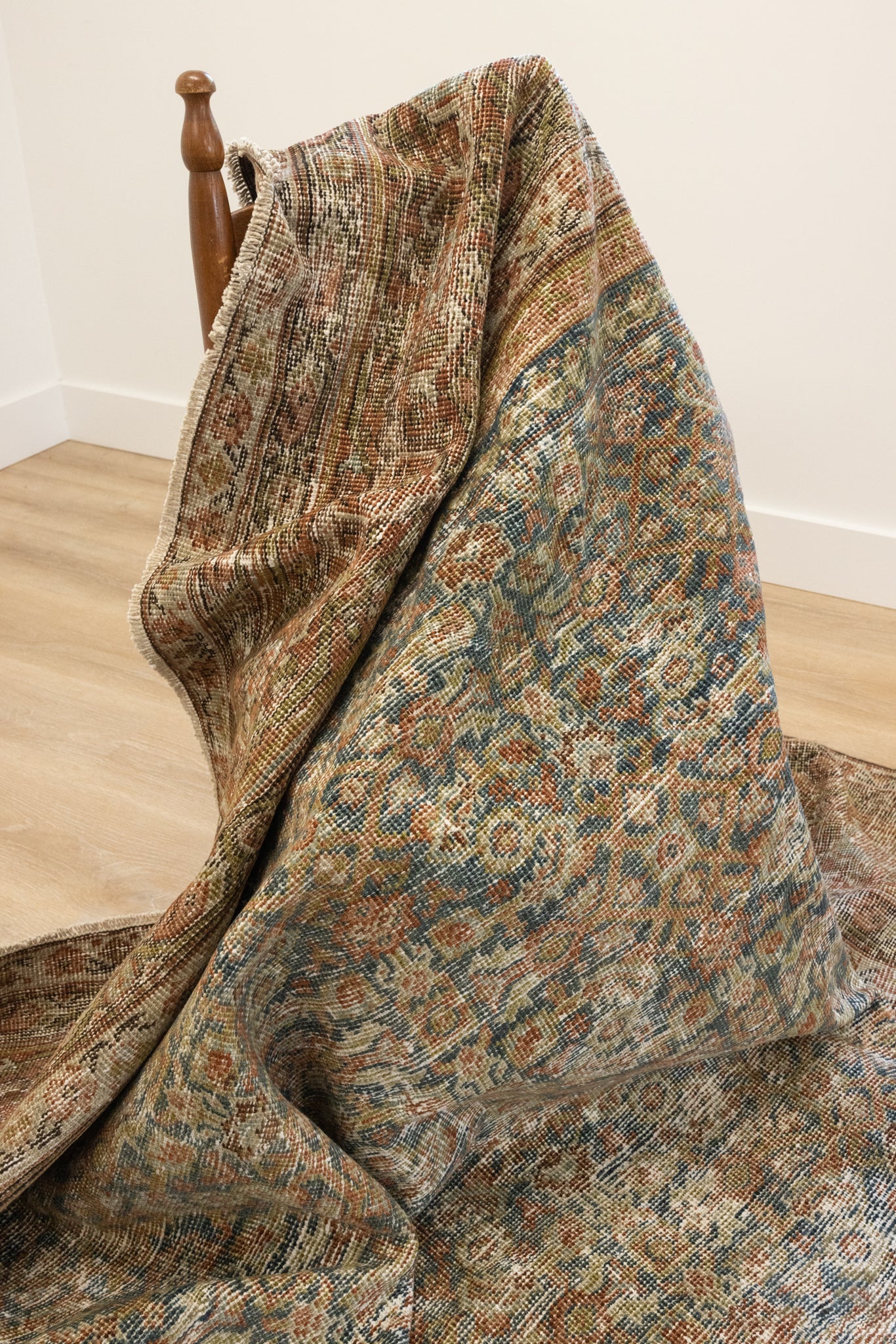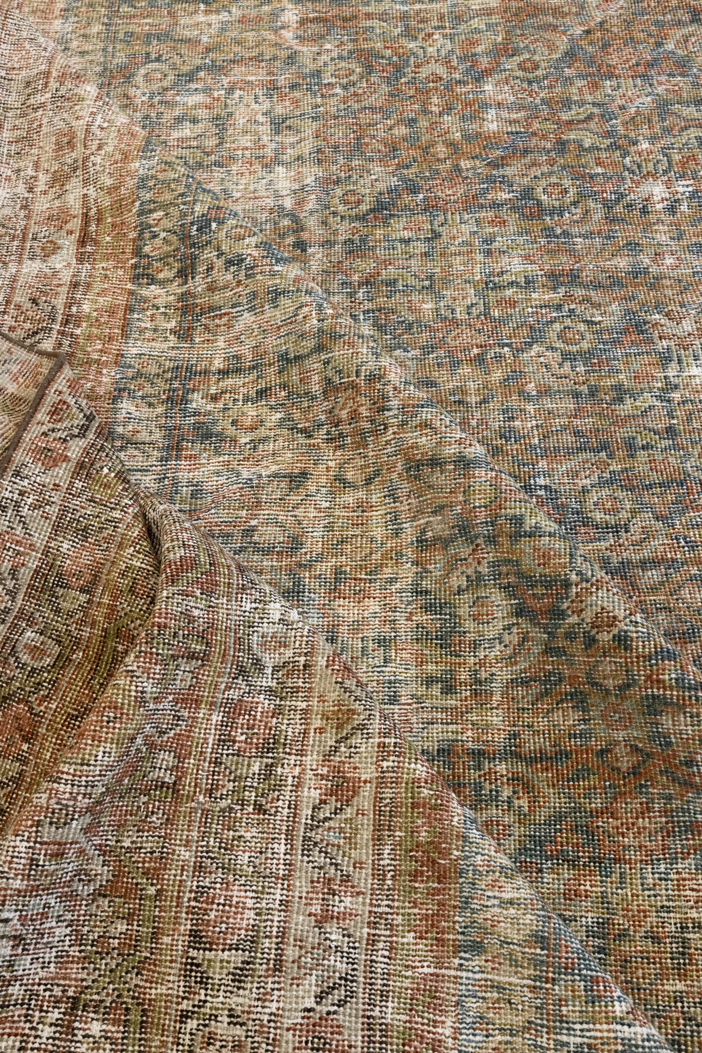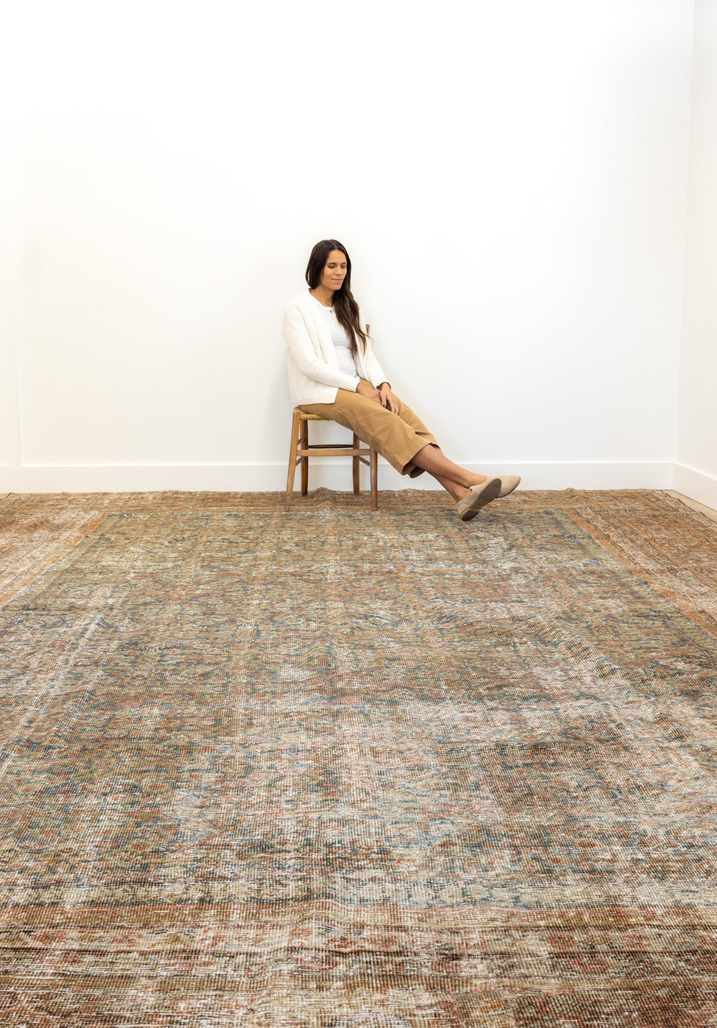 Because of the nature of this item, there may be slight imperfections in its wear, shape, dimensions, and color. Our rugs have been repaired over the years, using various techniques. There might be evidence of these repairs through texture, look and feel. This is all part of the rich history and story of each artistic piece. These markings are not considered defective.