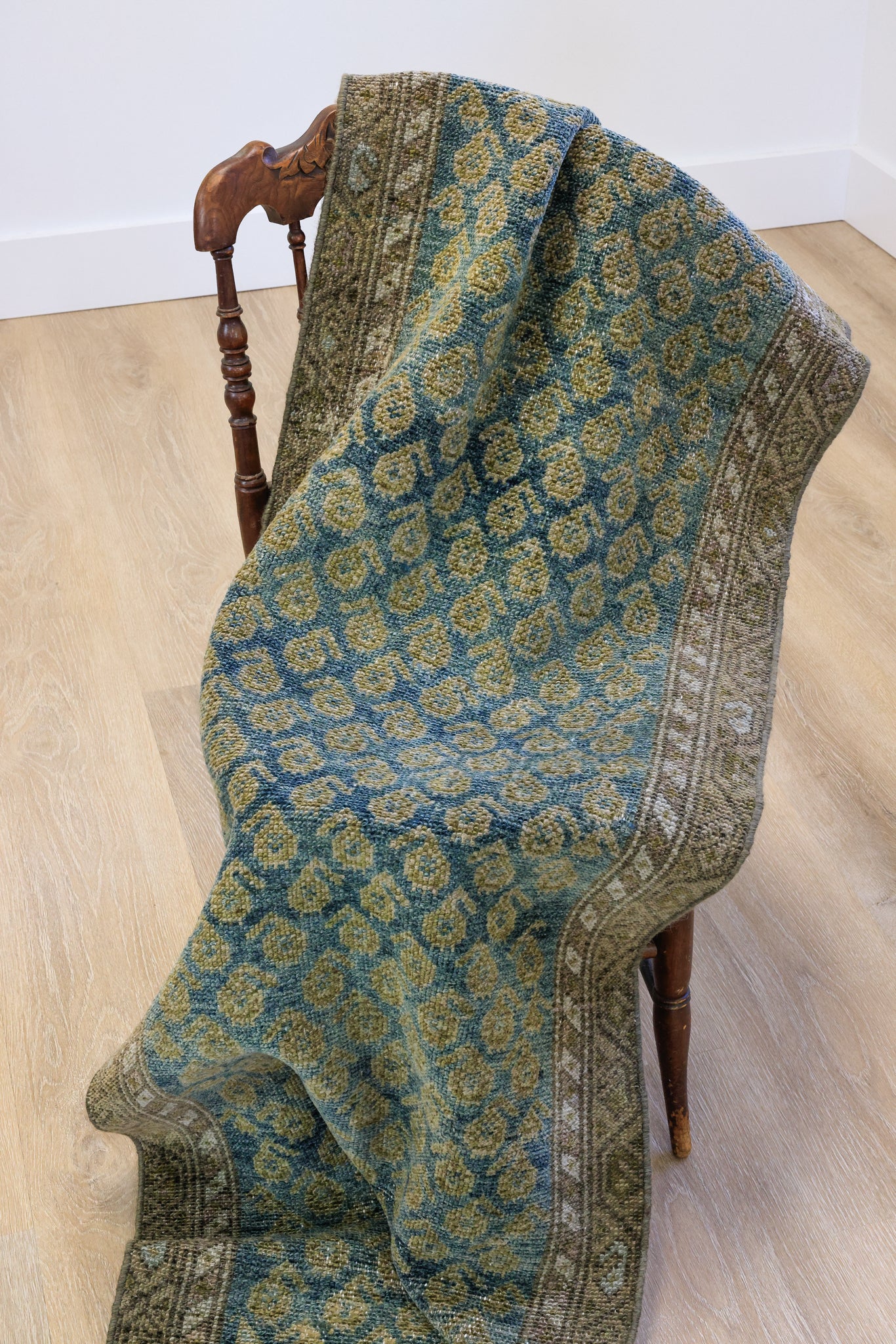 Because of the nature of this item, there may be slight imperfections in its wear, shape, dimensions, and color. Our rugs have been repaired over the years using various techniques. There might be evidence of these repairs through texture, look and feel. This is all part of the rich history and story of each artistic piece. These markings are not considered defective.