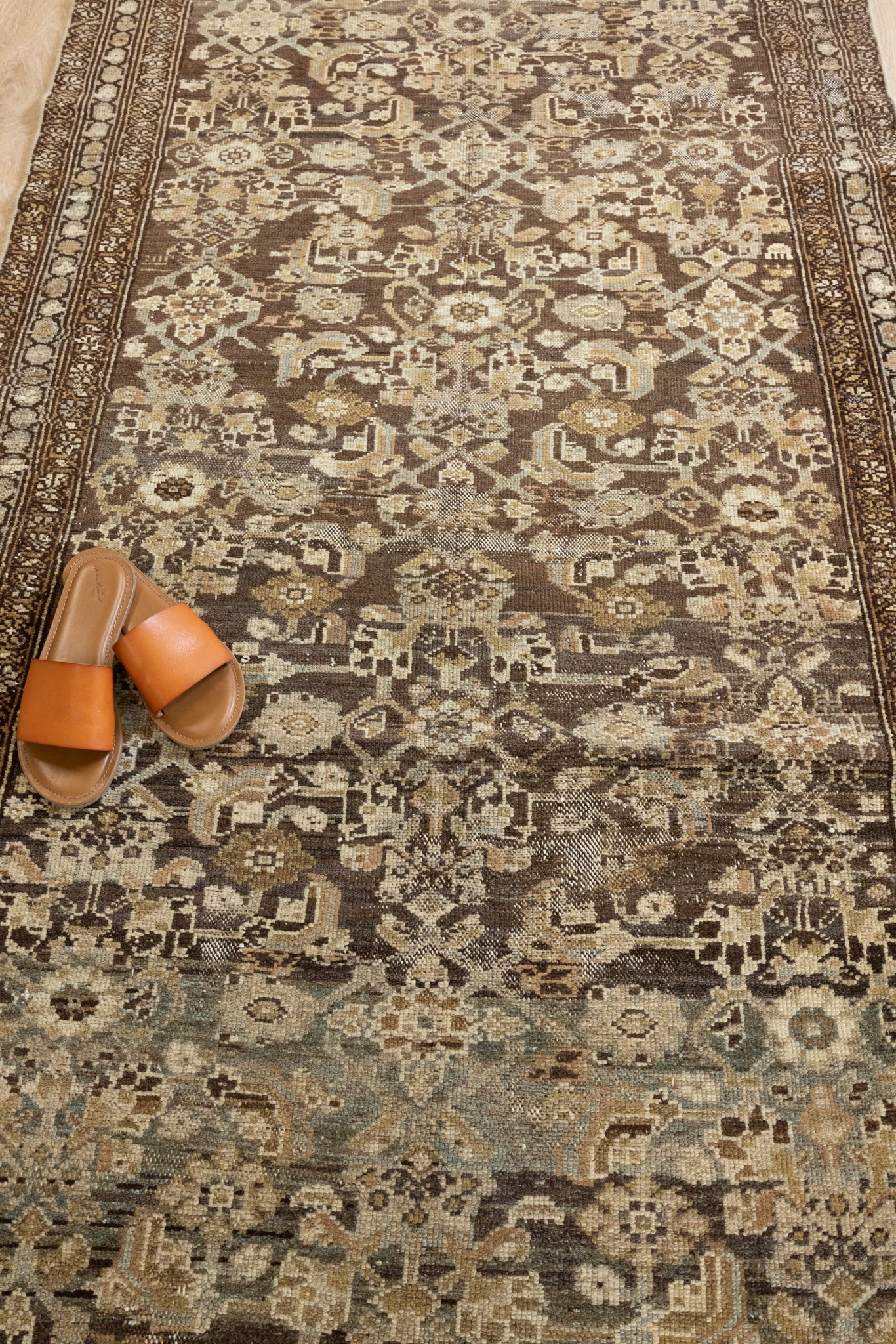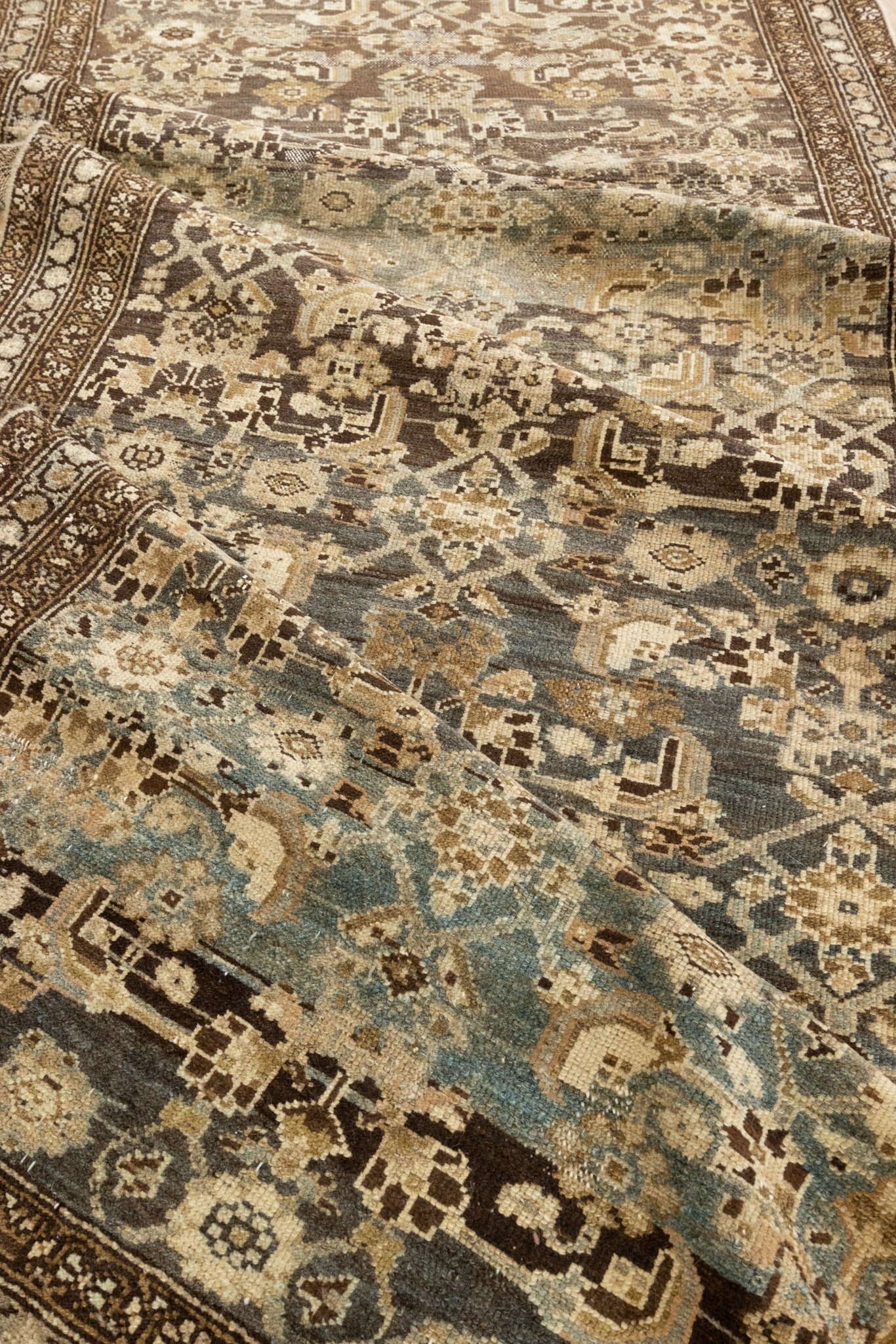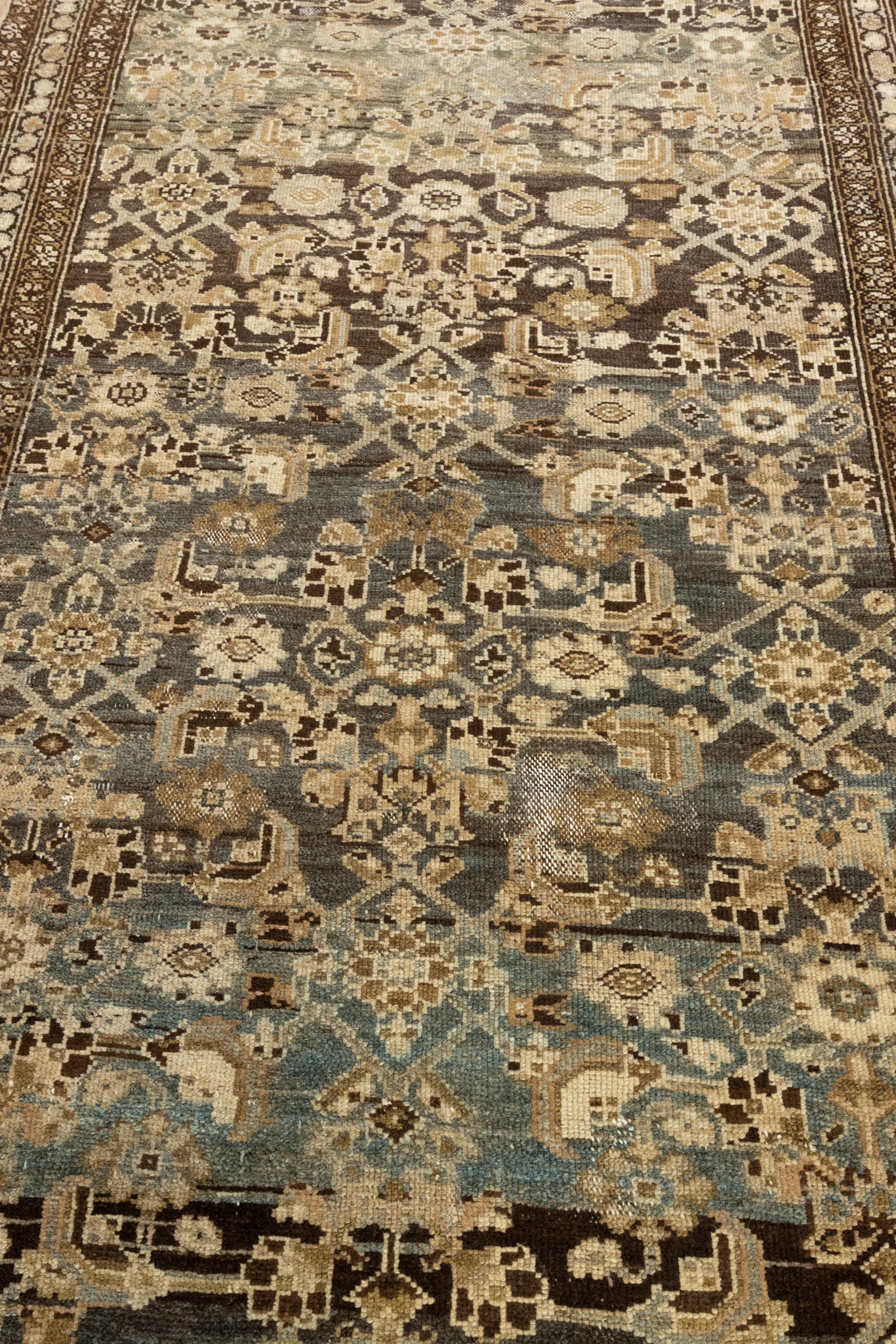 Because of the nature of this item, there may be slight imperfections in its wear, shape, dimensions, and color. Our rugs have been repaired over the years, using various techniques. There might be evidence of these repairs through texture, look and feel. This is all part of the rich history and story of each artistic piece. These markings are not considered defective.