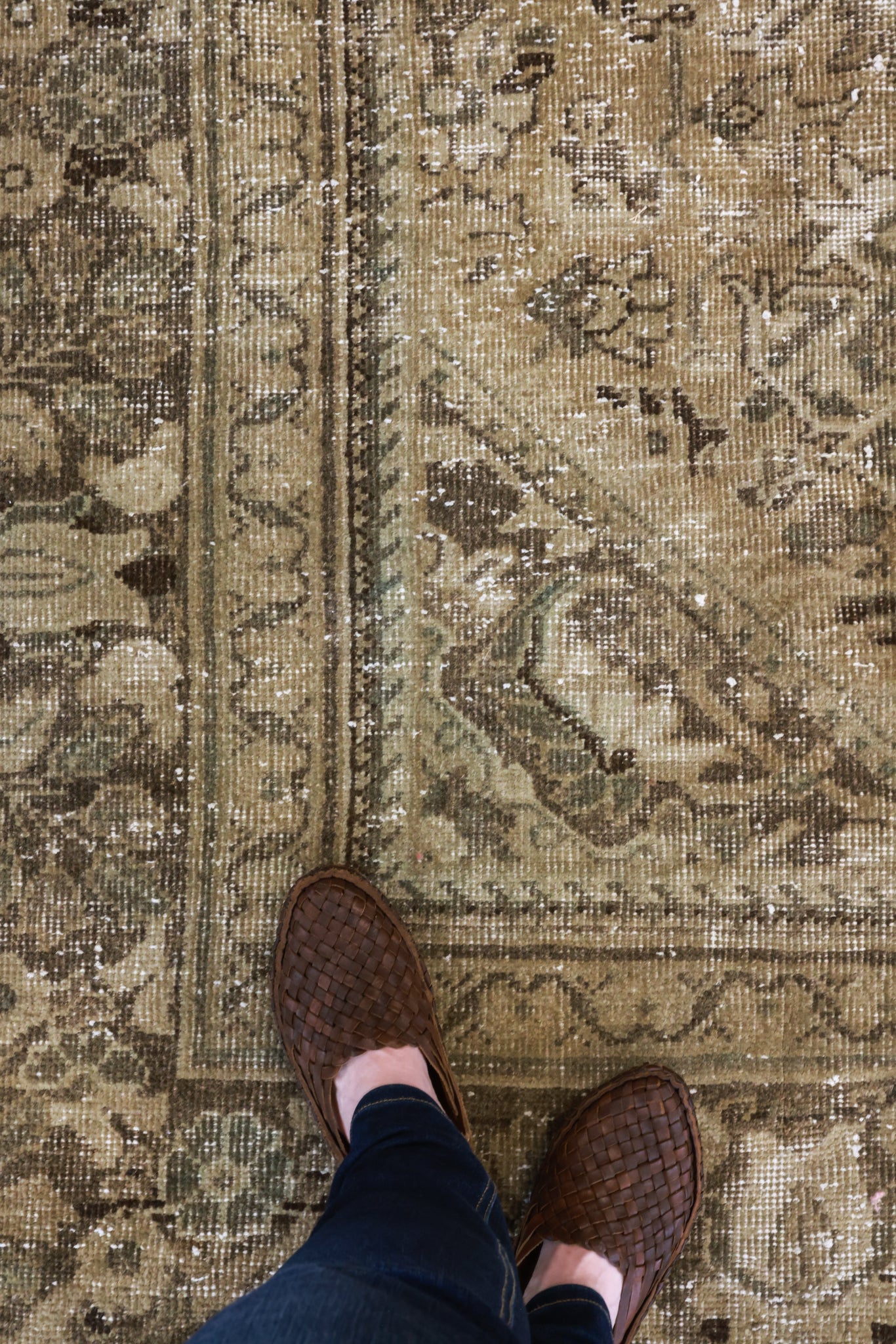 Because of the nature of this item, there may be slight imperfections in its wear, shape, dimensions, and color. Our rugs have been repaired over the years using various techniques. There might be evidence of these repairs through texture, look and feel. This is all part of the rich history and story of each artistic piece. These markings are not considered defective.