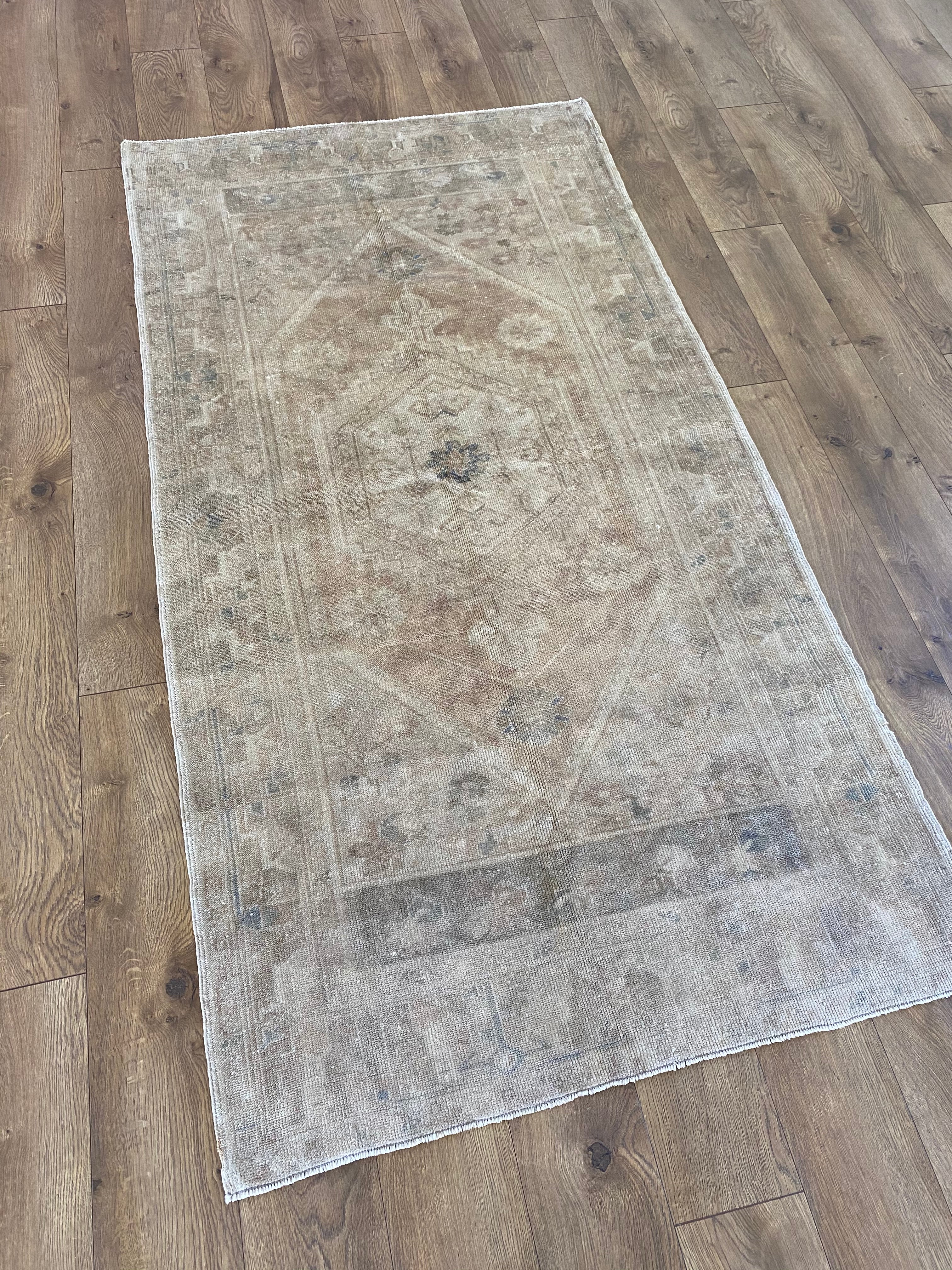 This is a one of a kind, vintage, handmade rug which was imported from Turkey.
