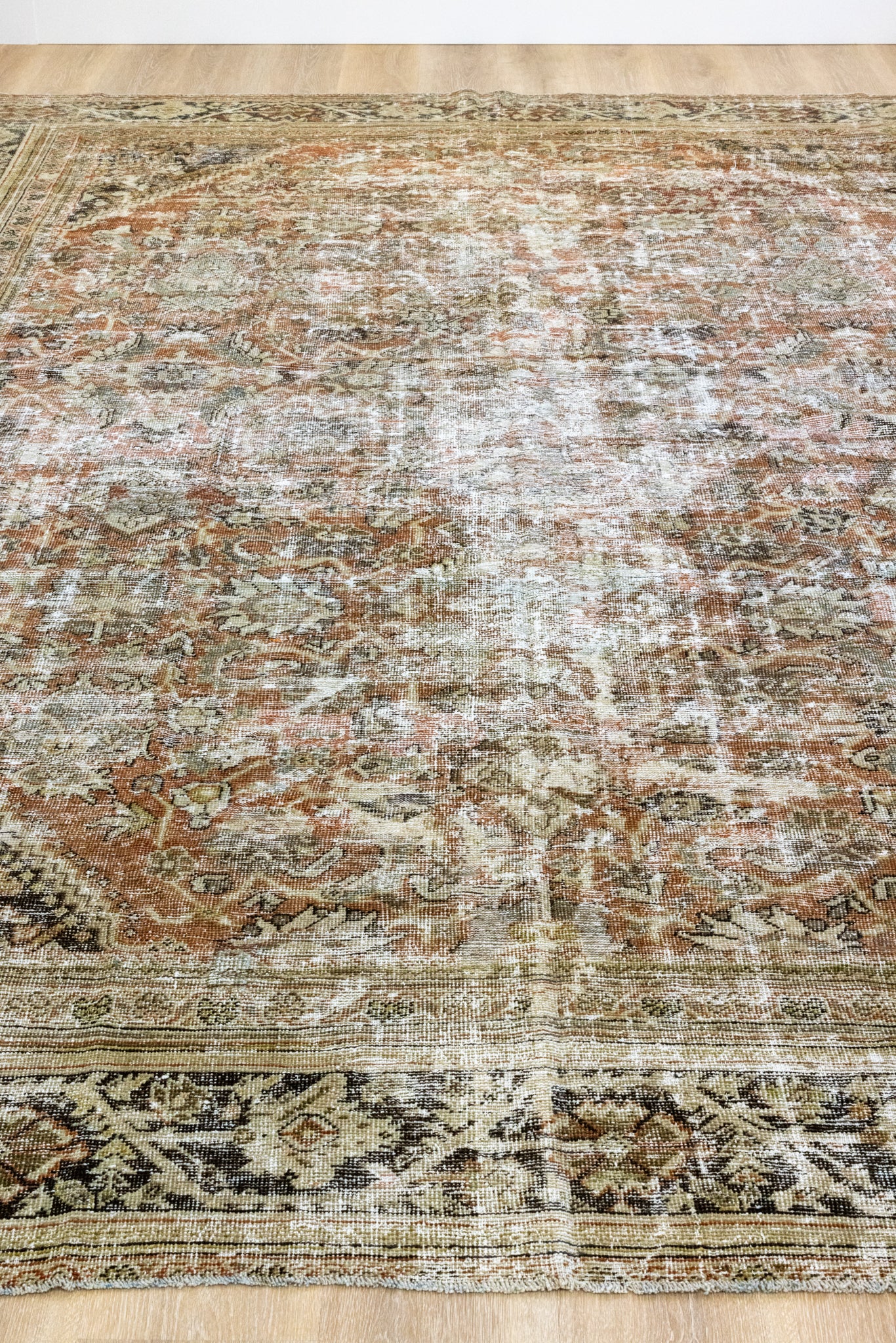This rug has been professionally cleaned. Spot clean using the blotting technique, using a damp cloth. Take to a professional cleaner if the rug requires a deeper clean.