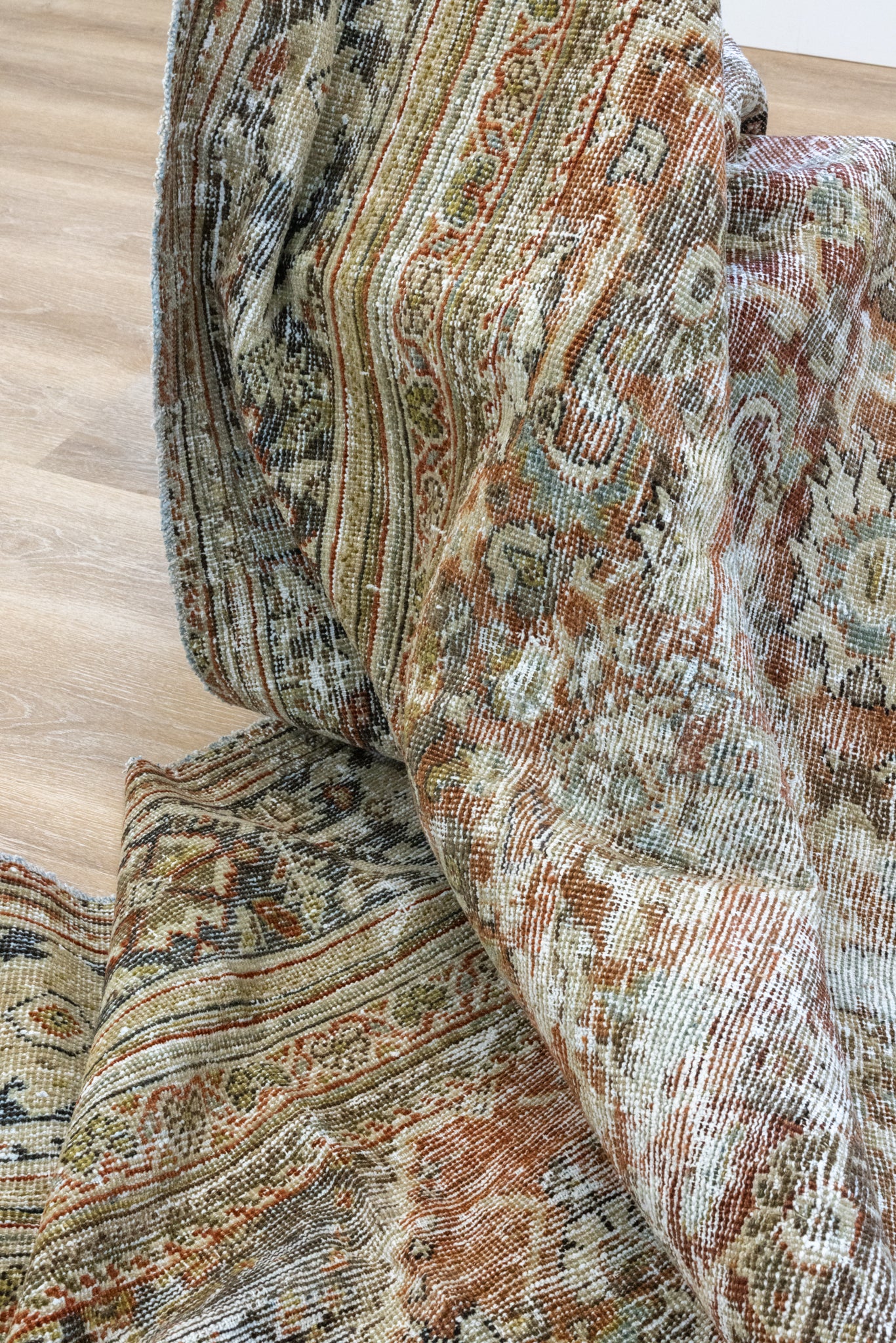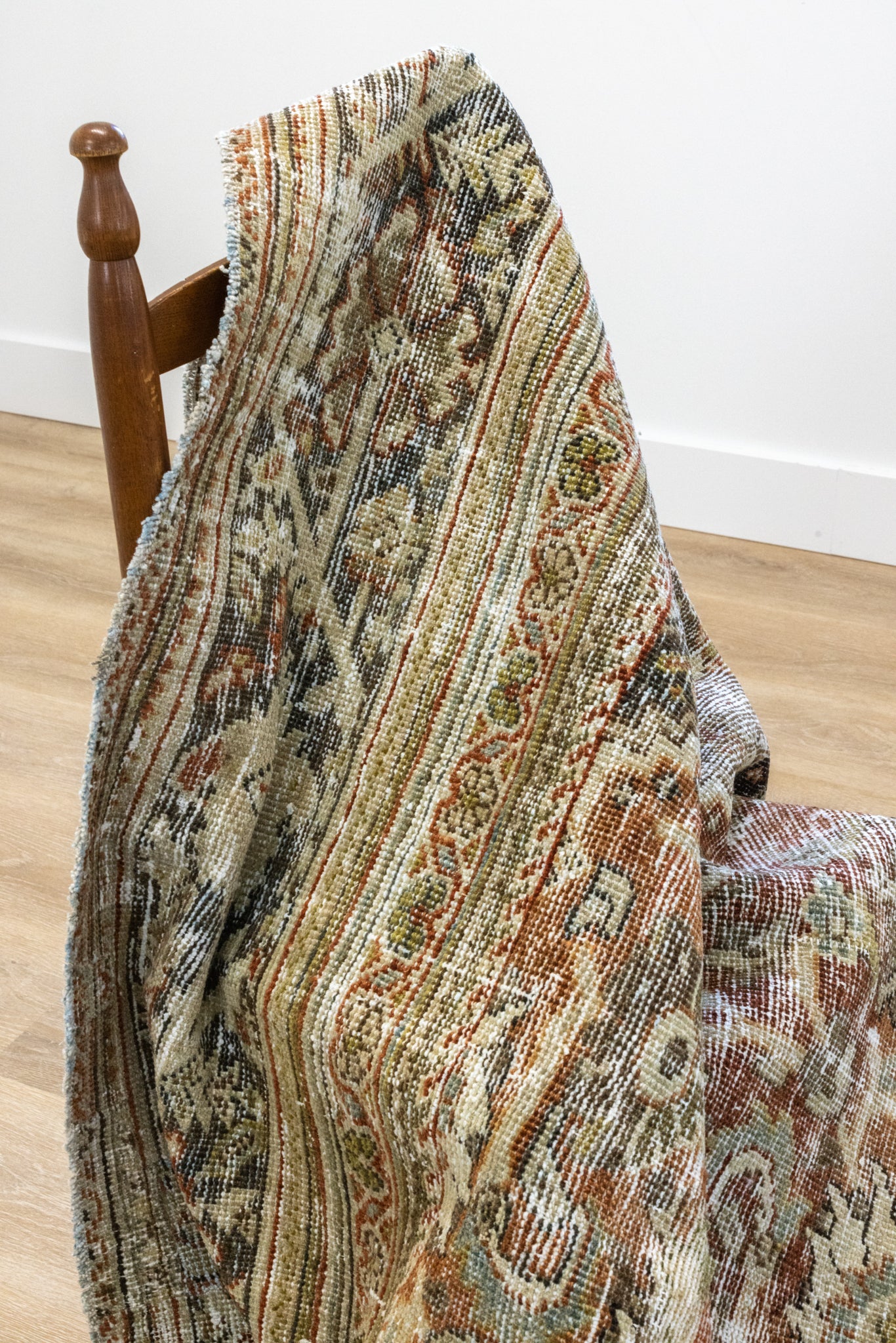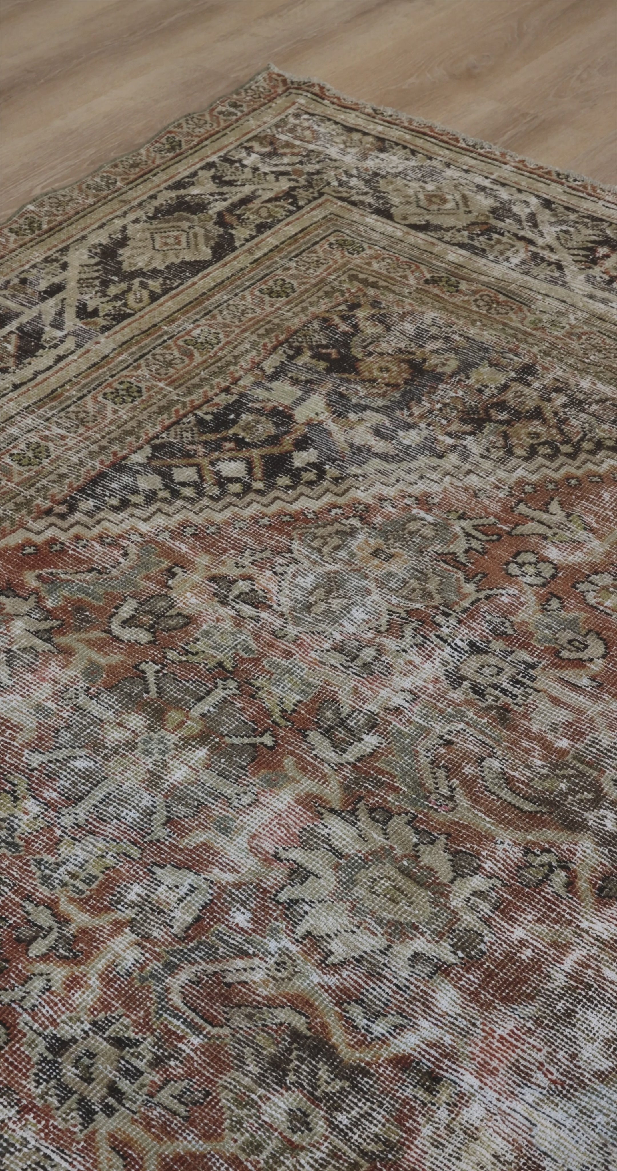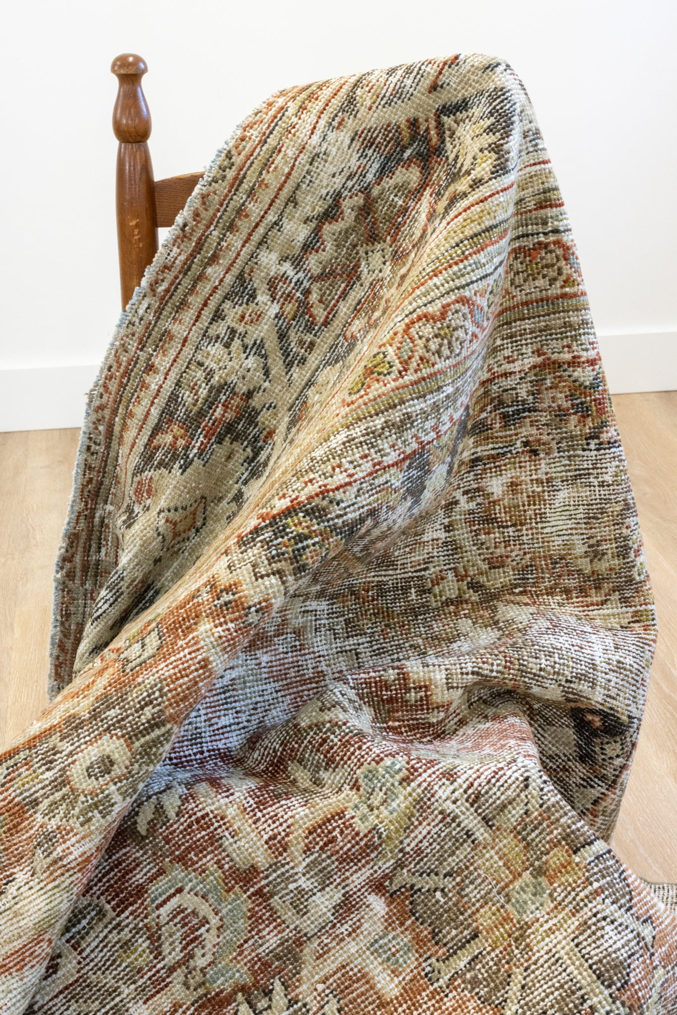 Because of the nature of this item, there may be slight imperfections in its wear, shape, dimensions, and color. Our rugs have been repaired over the years using various techniques. There might be evidence of these repairs through texture, look and feel. This is all part of the rich history and story of each artistic piece. These markings are not considered defective.