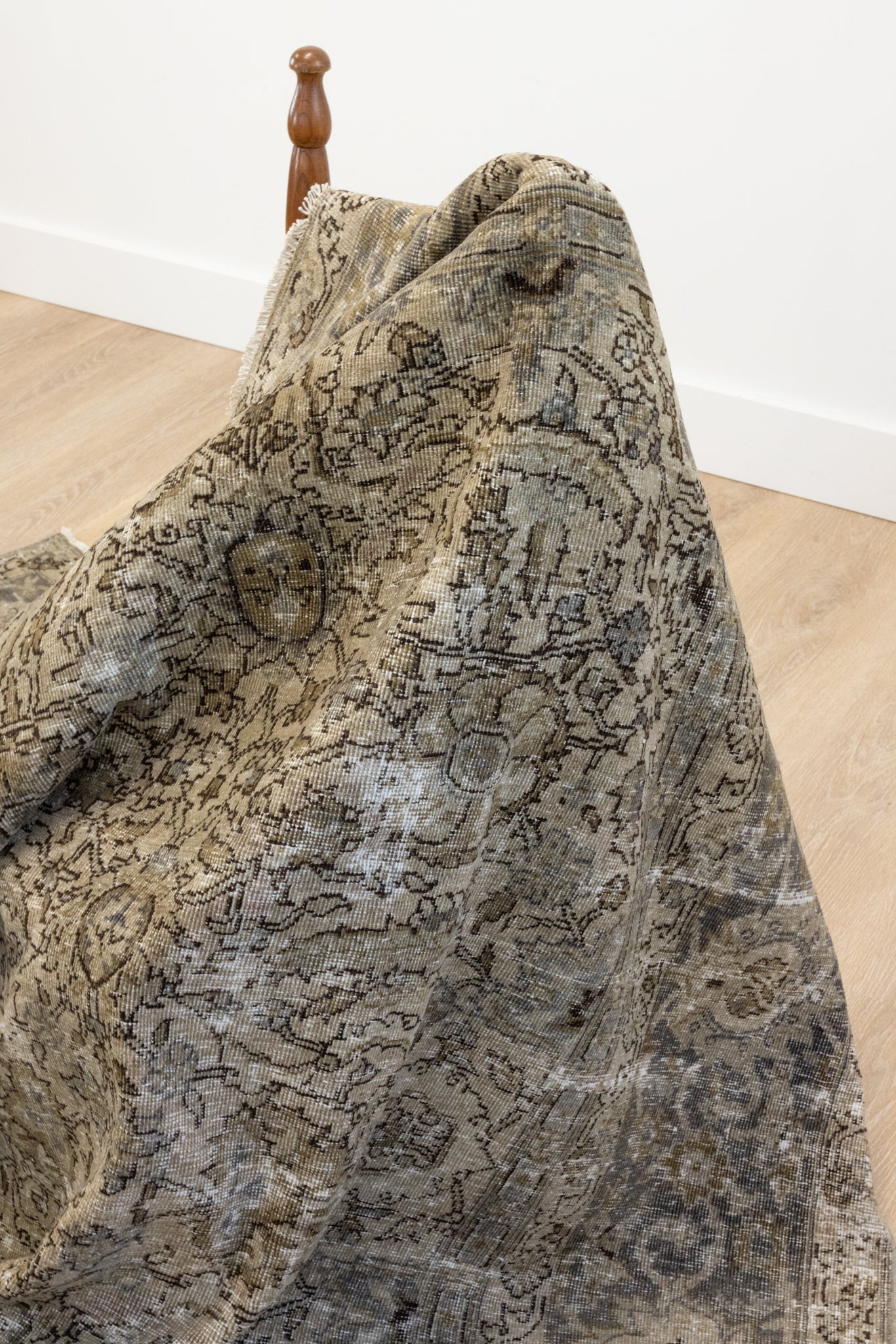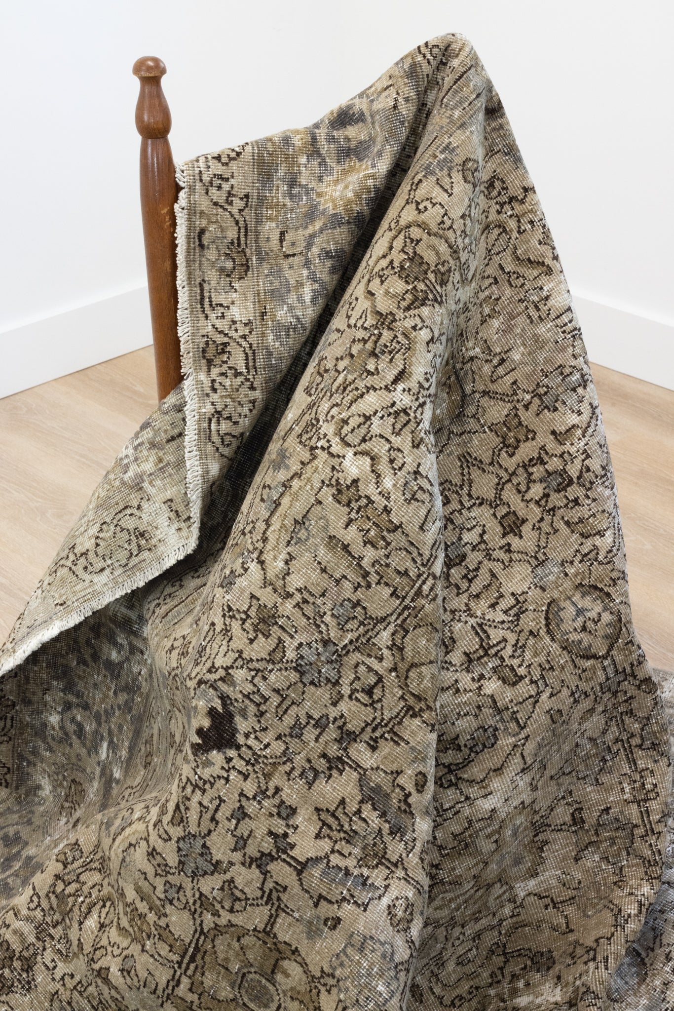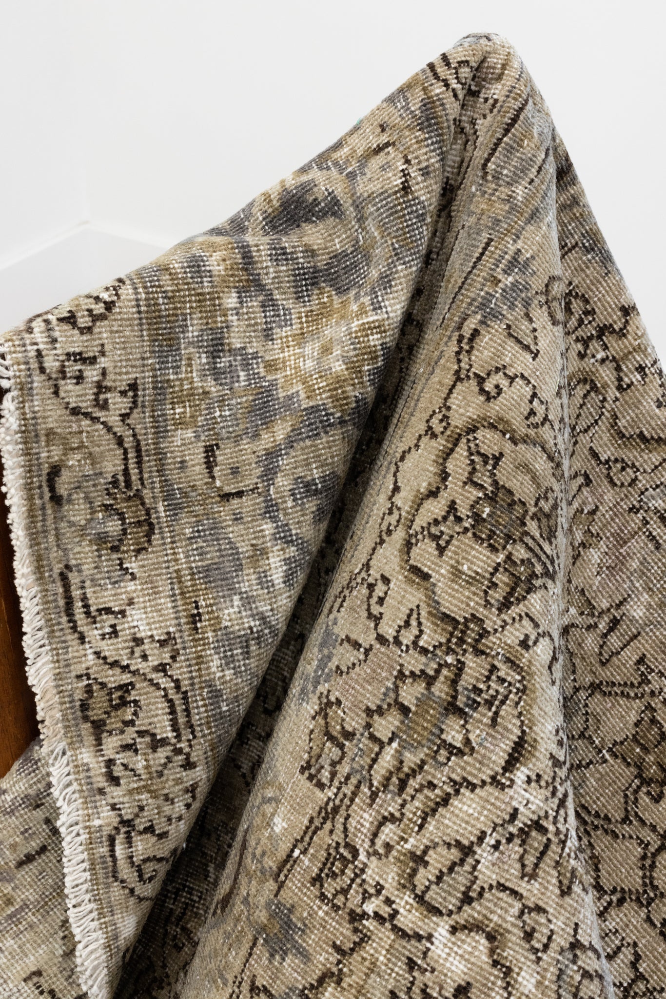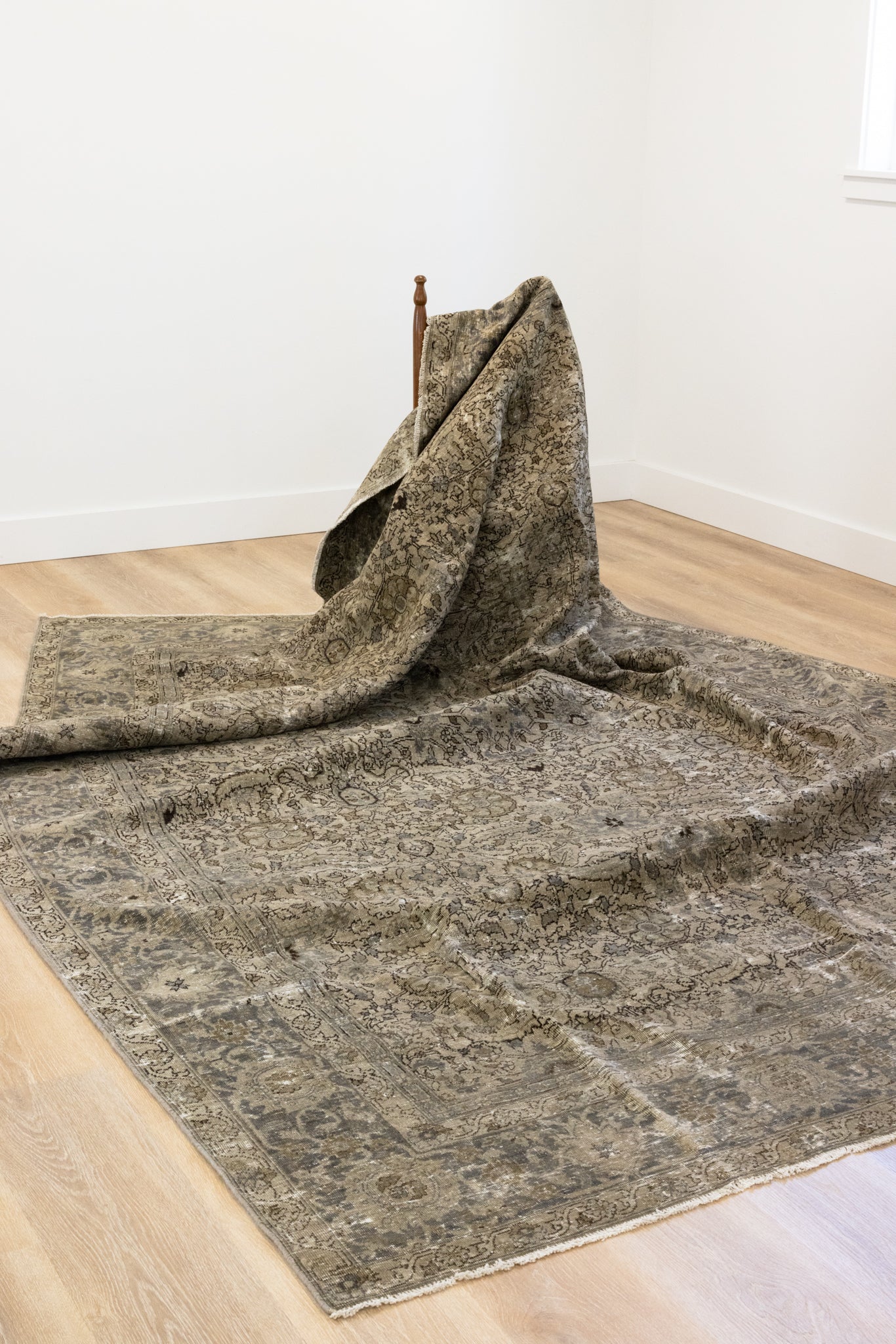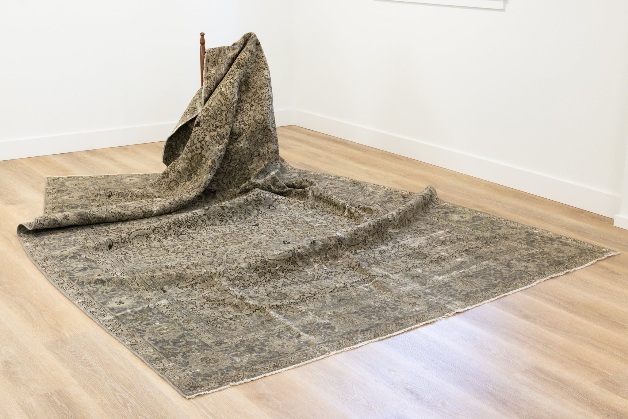 This rug has been professionally cleaned. Spot clean using the blotting technique, using a damp cloth. Take to a professional cleaner if the rug requires a deeper clean.