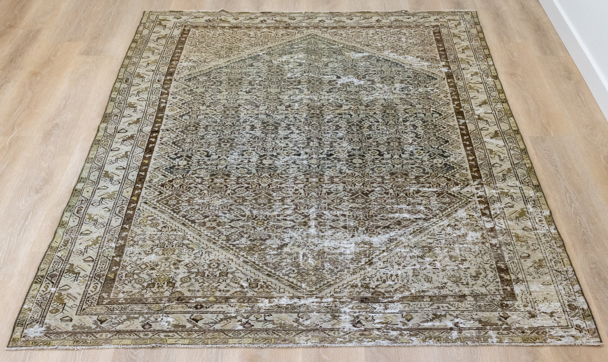 Because of the nature of this item, there may be slight imperfections in its wear, shape, dimensions, and color. Our rugs have been repaired over the years using various techniques. There might be evidence of these repairs through texture, look and feel. This is all part of the rich history and story of each artistic piece. These markings are not considered defective.