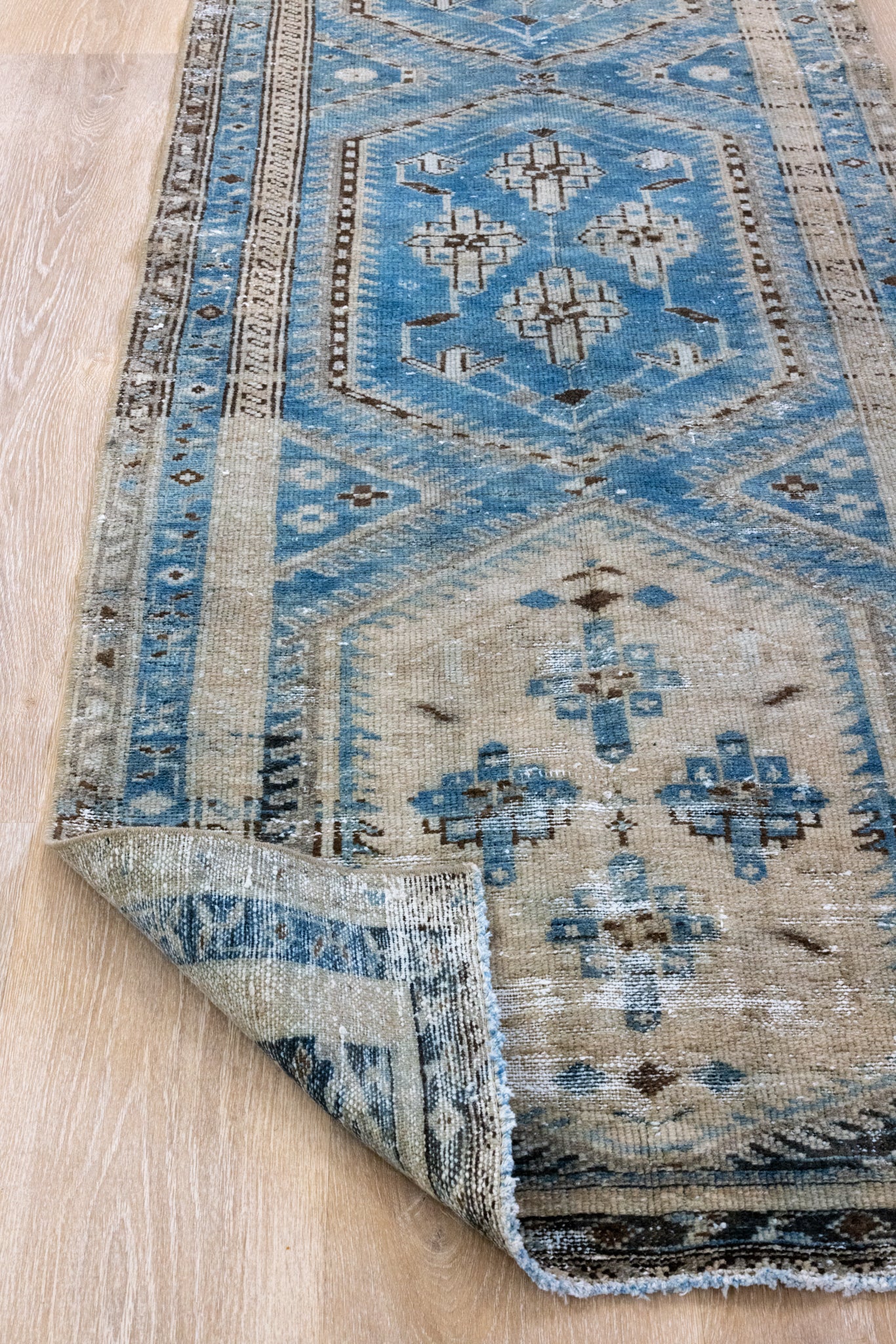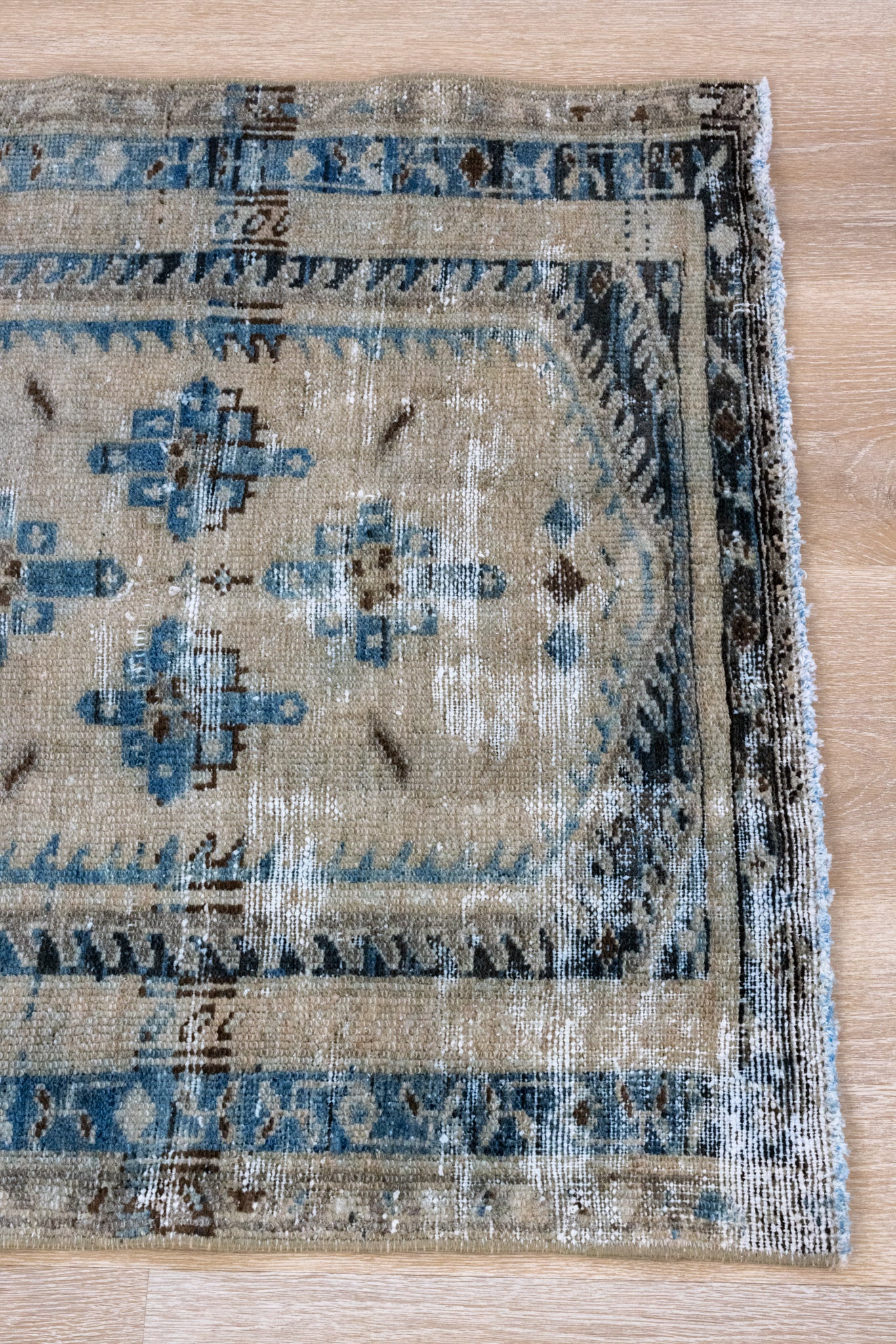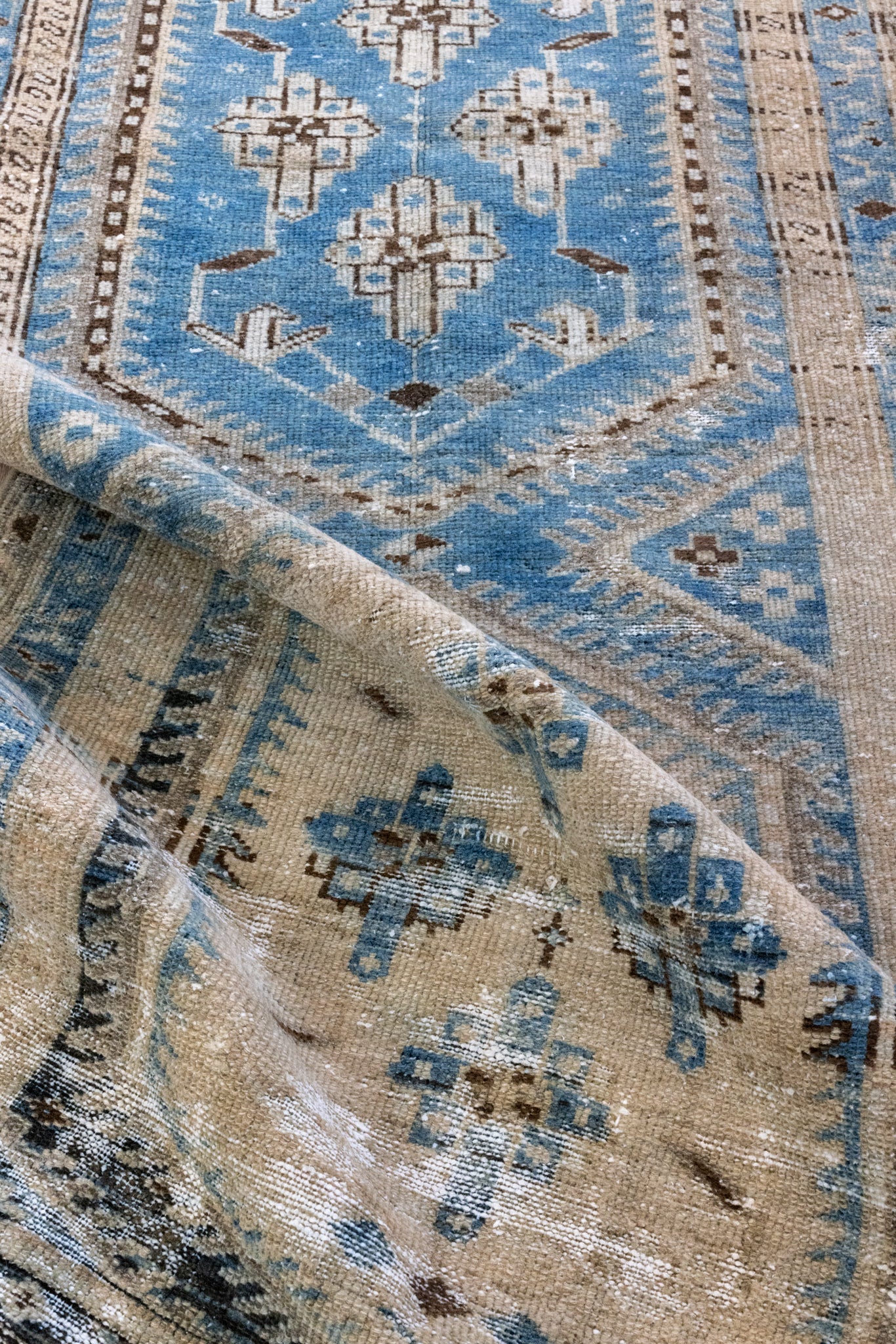 Please note that because this is a vintage rug, there may be slight imperfections in its wear, dimensions, and color. Our rugs have been repaired over the years, using various techniques. There might be evidence of these repairs through texture, look and feel. This is all part of the rich history and story of each artistic piece. These markings are not considered defective.