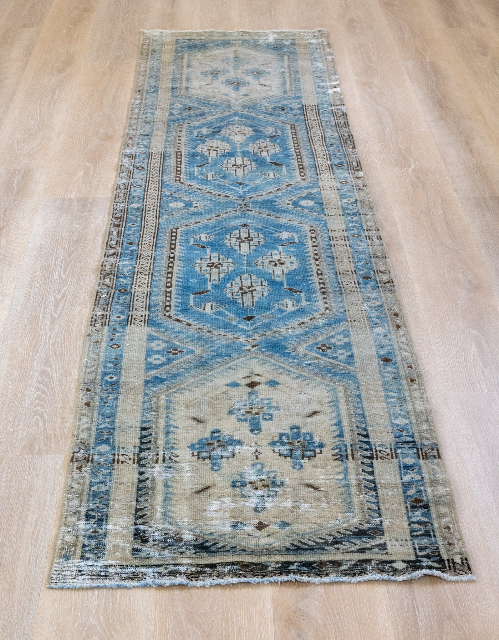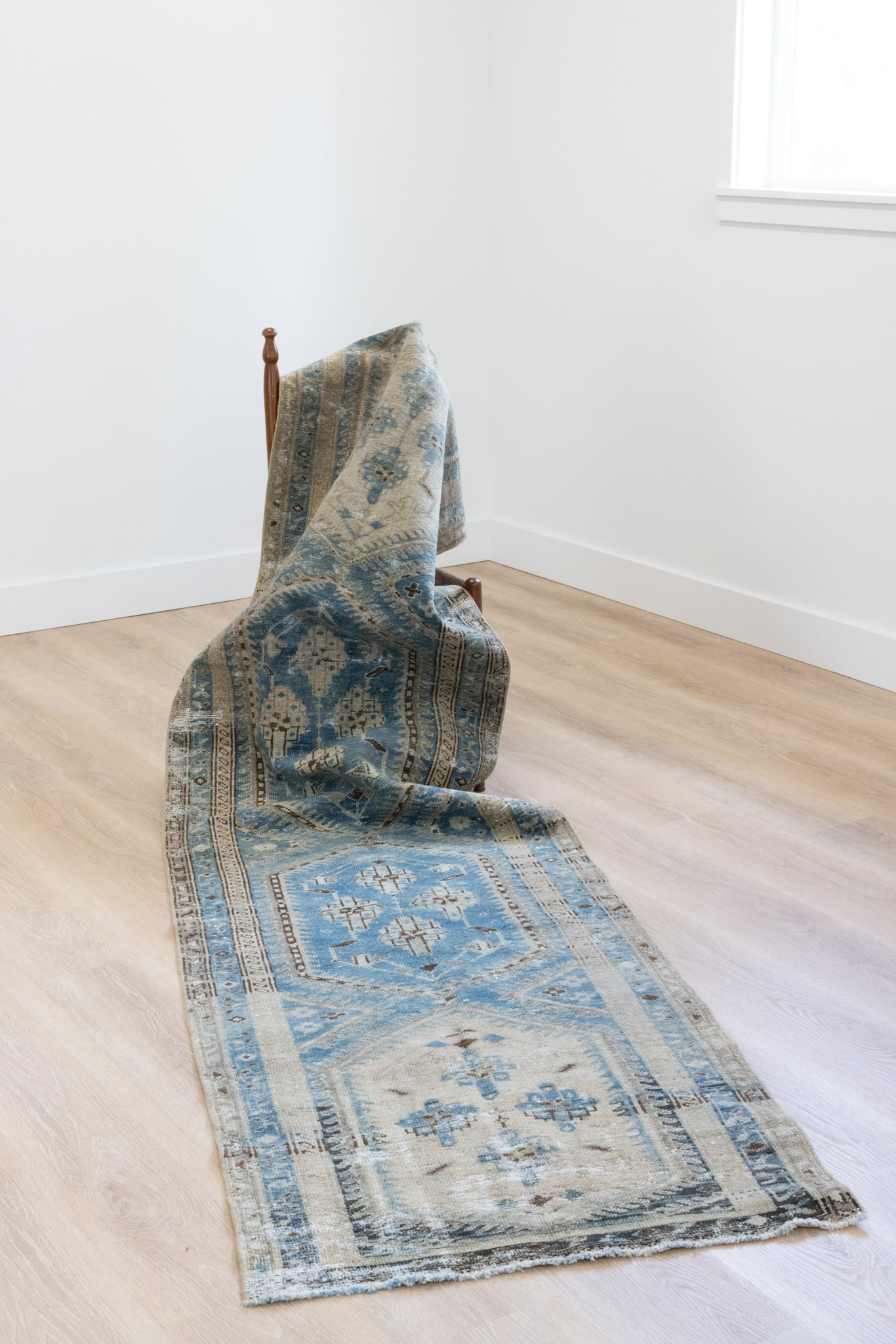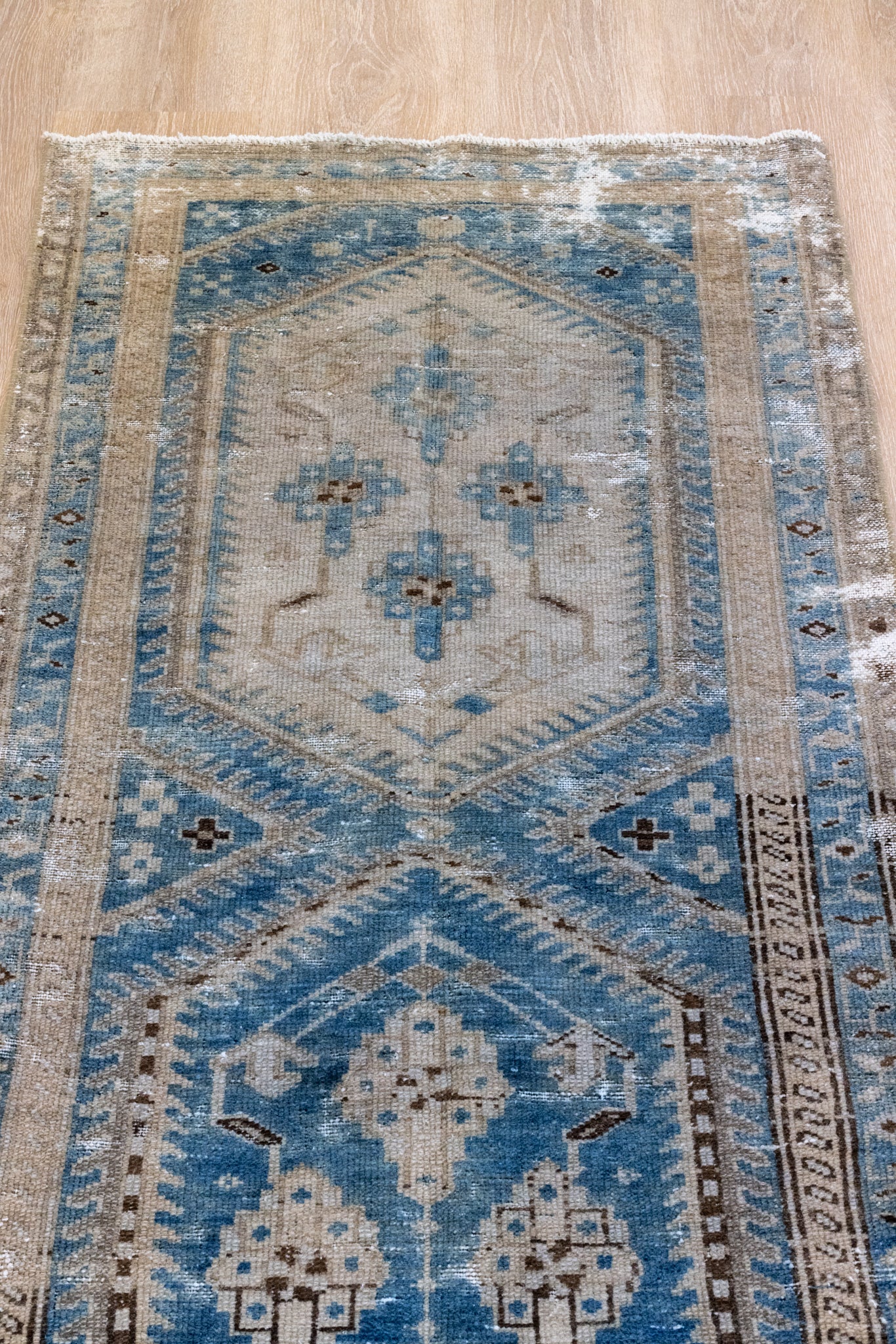 Please note that because this is a vintage rug, there may be slight imperfections in its wear, dimensions, and color. Our rugs have been repaired over the years, using various techniques. There might be evidence of these repairs through texture, look and feel. This is all part of the rich history and story of each artistic piece. These markings are not considered defective.