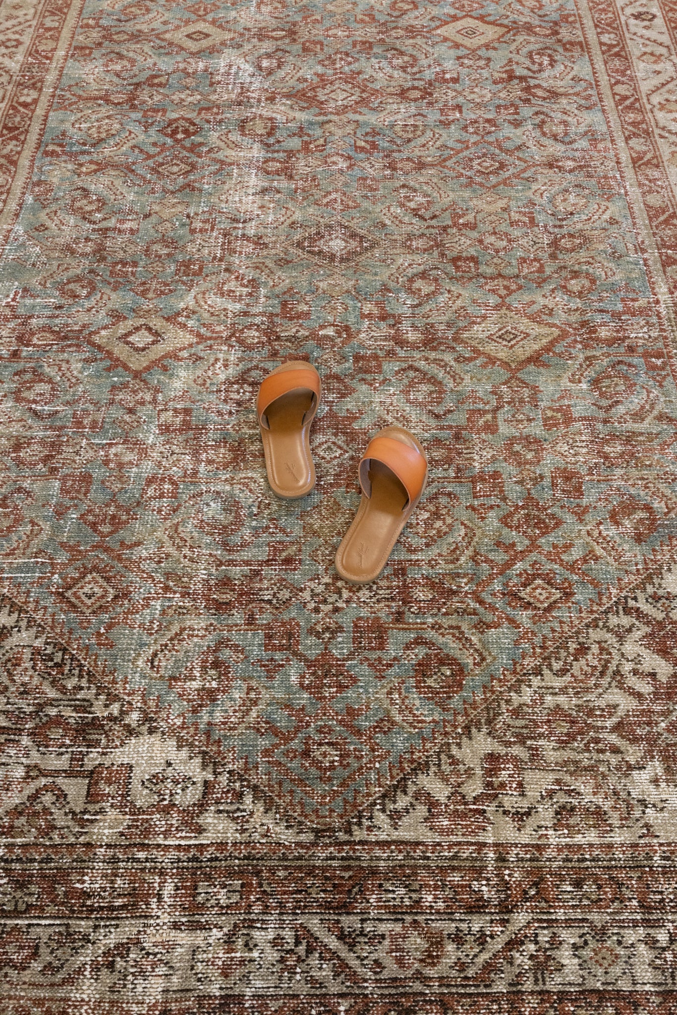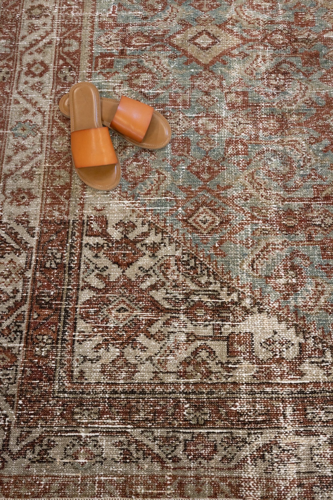 Because of the nature of this item, there may be slight imperfections in its wear, shape, dimensions, and color. Our rugs have been repaired over the years using various techniques. There might be evidence of these repairs through texture, look and feel. This is all part of the rich history and story of each artistic piece. These markings are not considered defective.