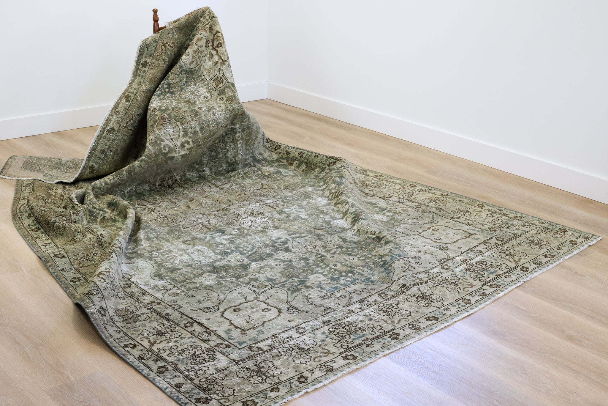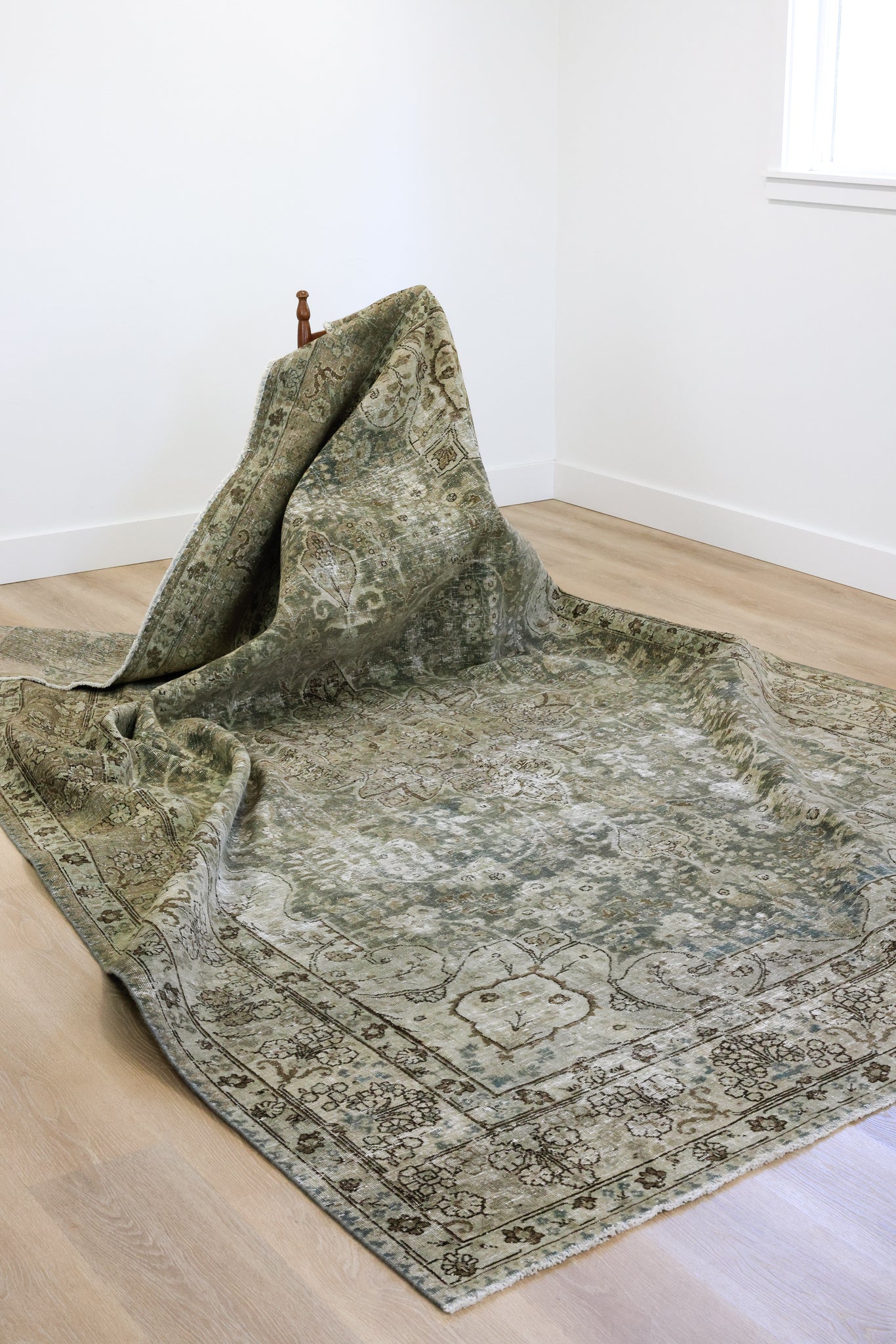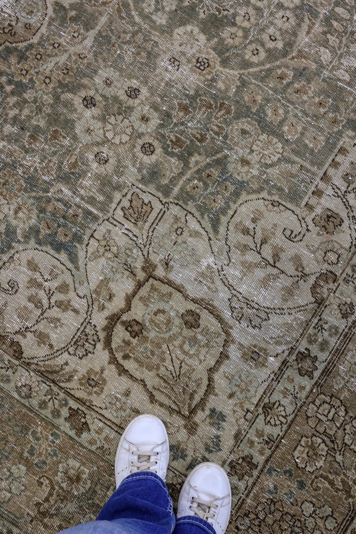 Because of the nature of this item, there may be slight imperfections in its wear, shape, dimensions, and color. Our rugs have been repaired over the years using various techniques. There might be evidence of these repairs through texture, look and feel. This is all part of the rich history and story of each artistic piece. These markings are not considered defective.