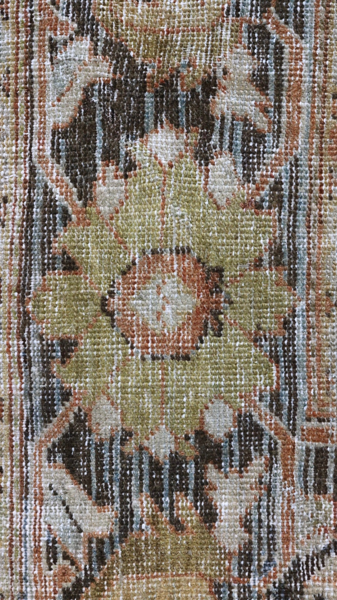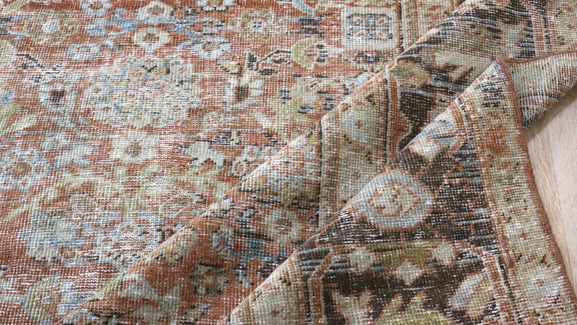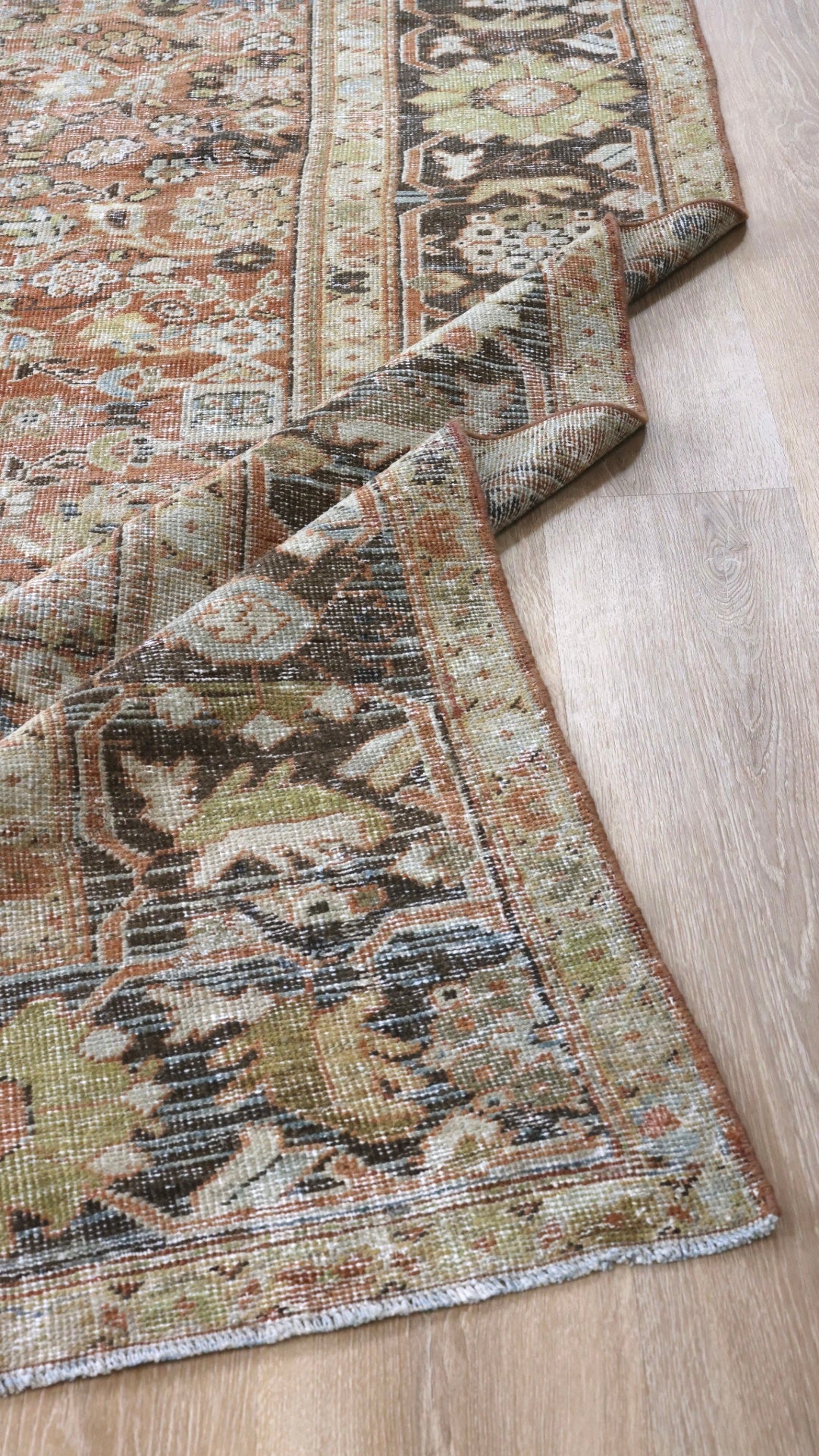 Please note that because this is a vintage rug, there may be slight imperfections in its wear, dimensions, and color. Our rugs have been repaired over the years, using various techniques. There might be evidence of these repairs through texture, look and feel. This is all part of the rich history and story of each artistic piece. These markings are not considered defective.