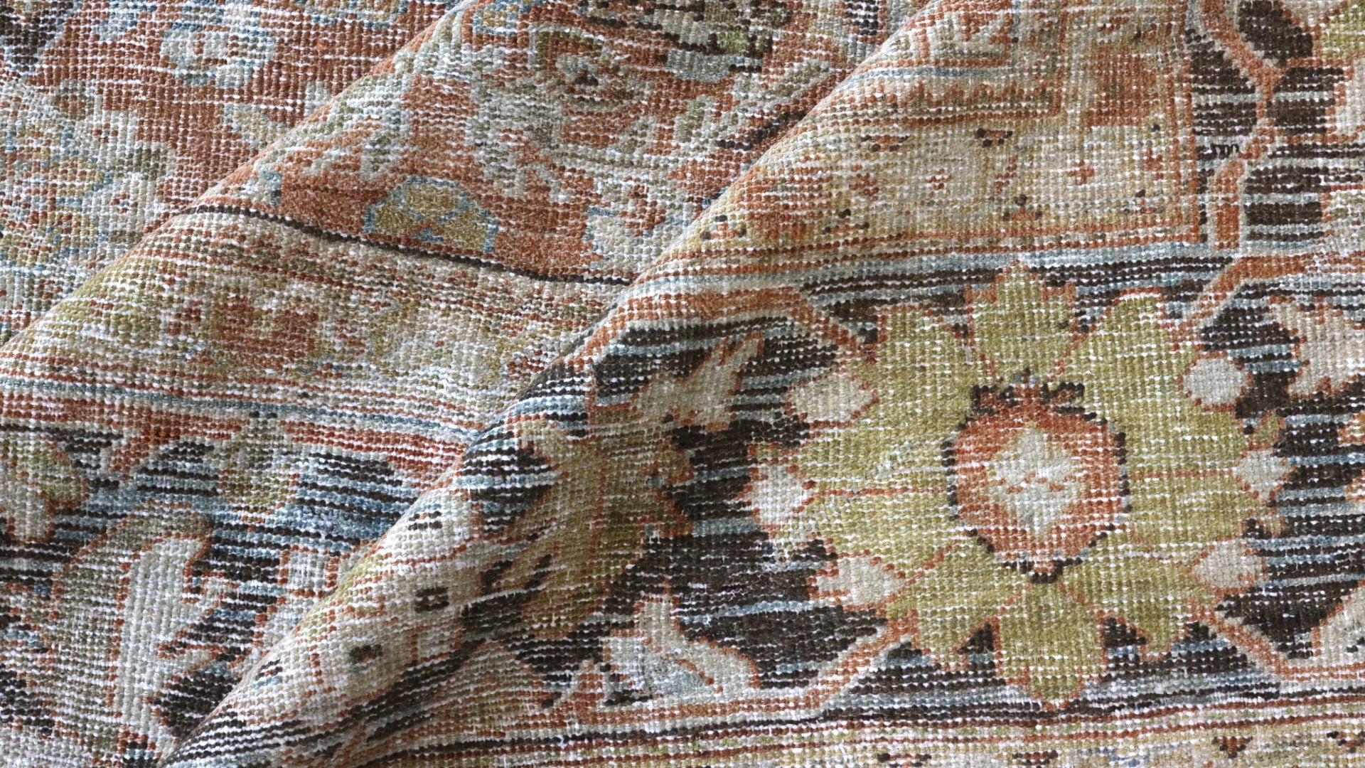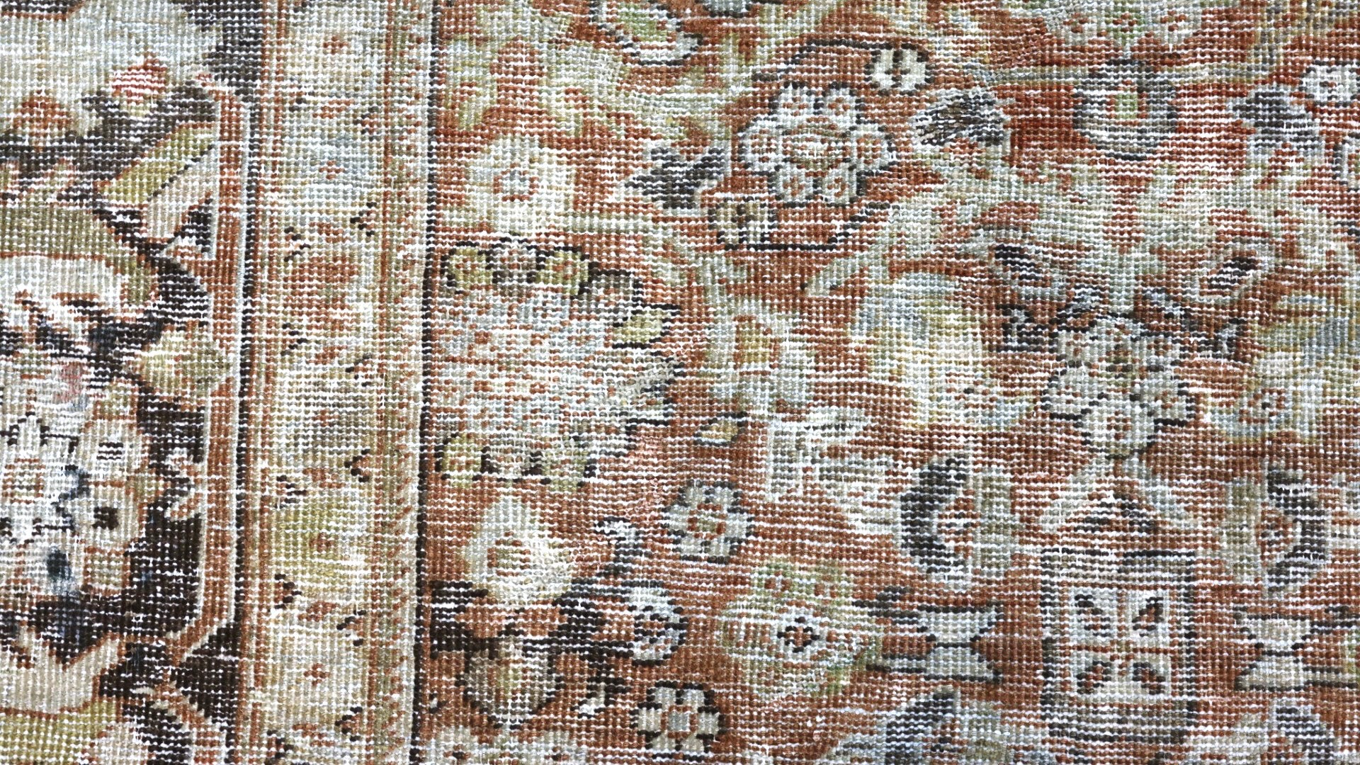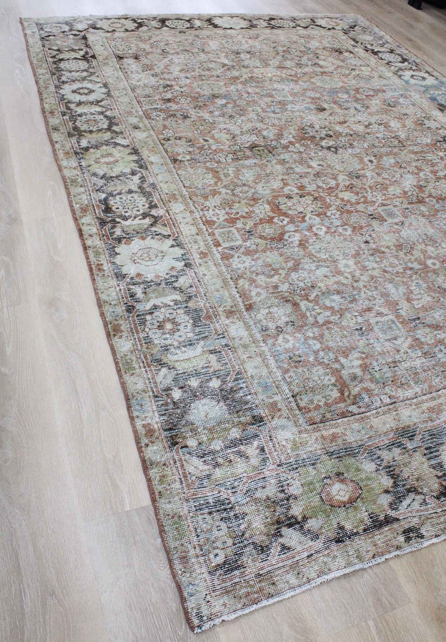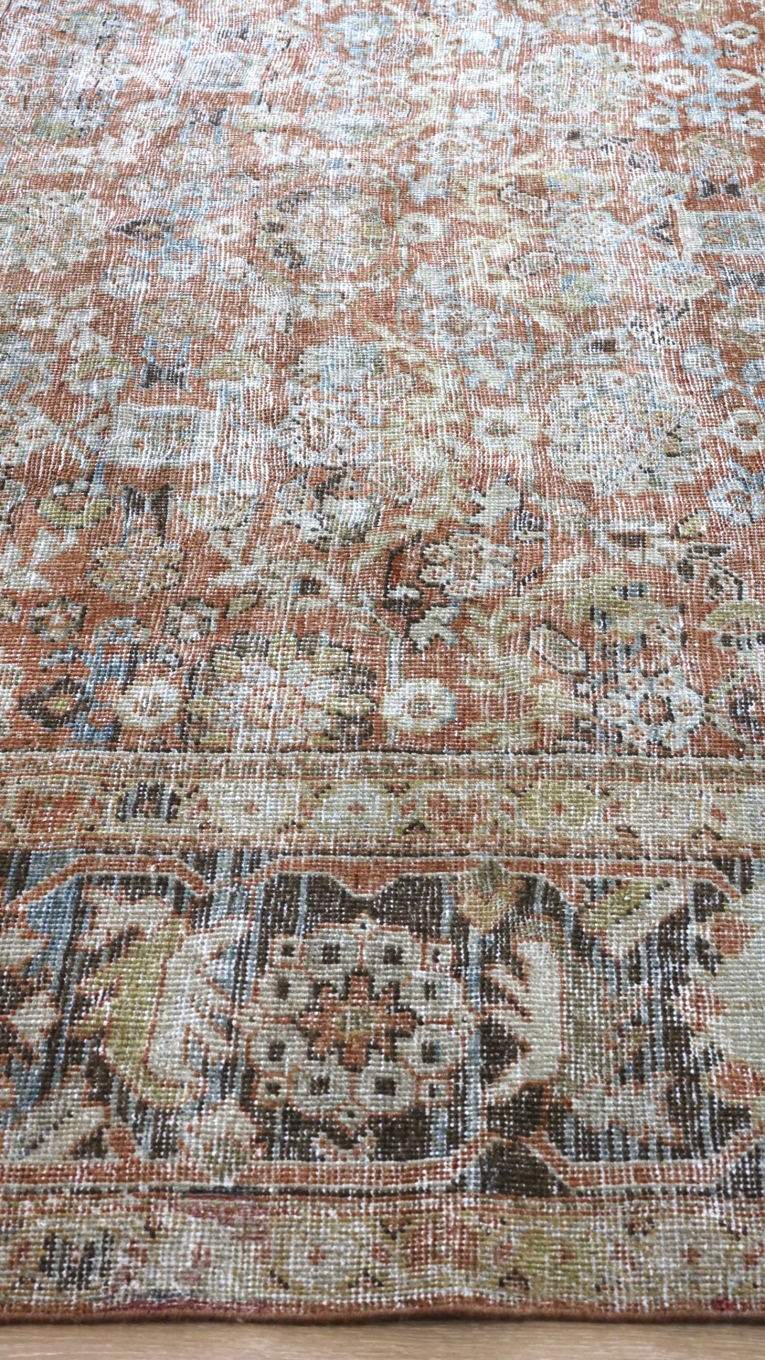 Please note that because this is a vintage rug, there may be slight imperfections in its wear, dimensions, and color. Our rugs have been repaired over the years, using various techniques. There might be evidence of these repairs through texture, look and feel. This is all part of the rich history and story of each artistic piece. These markings are not considered defective.