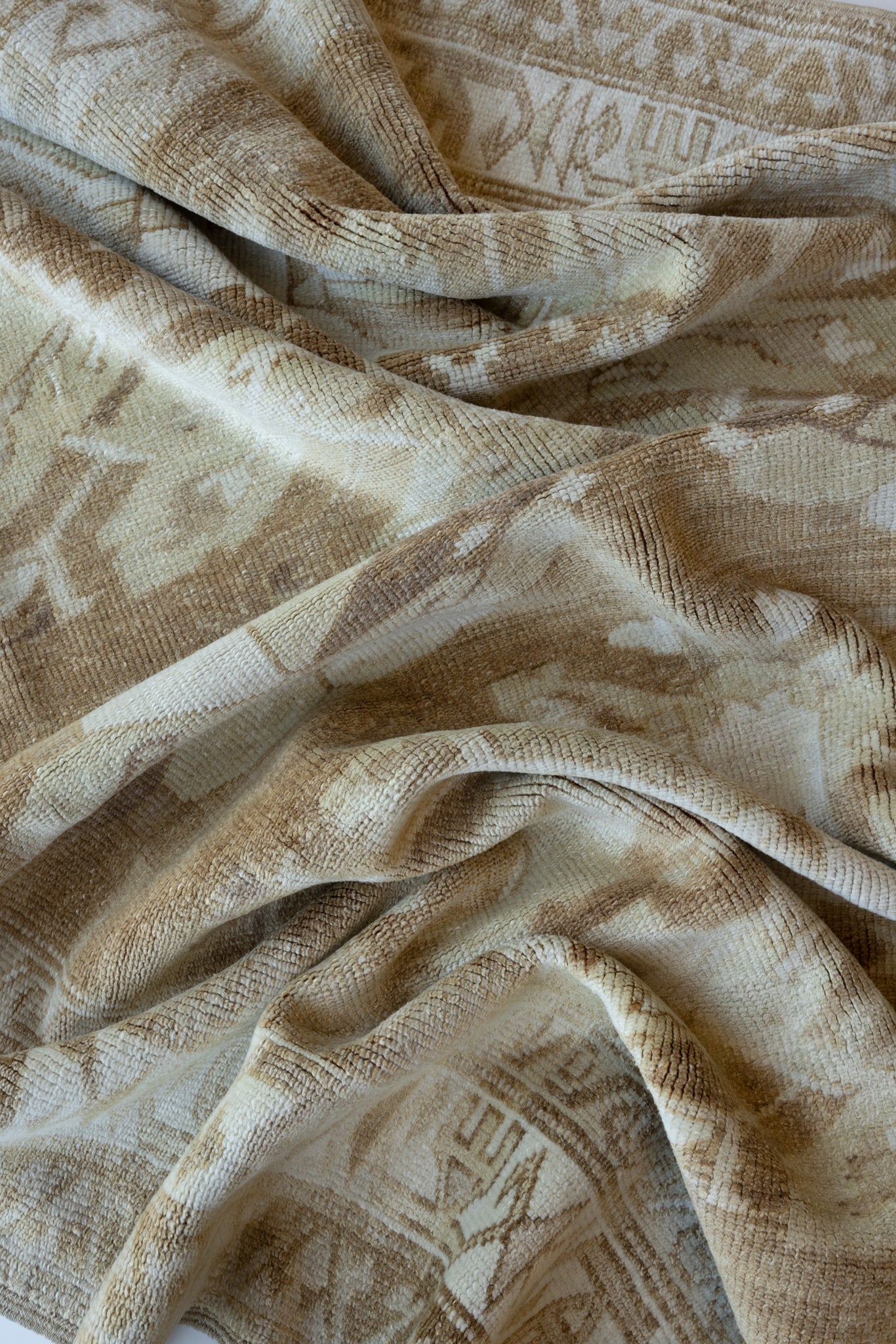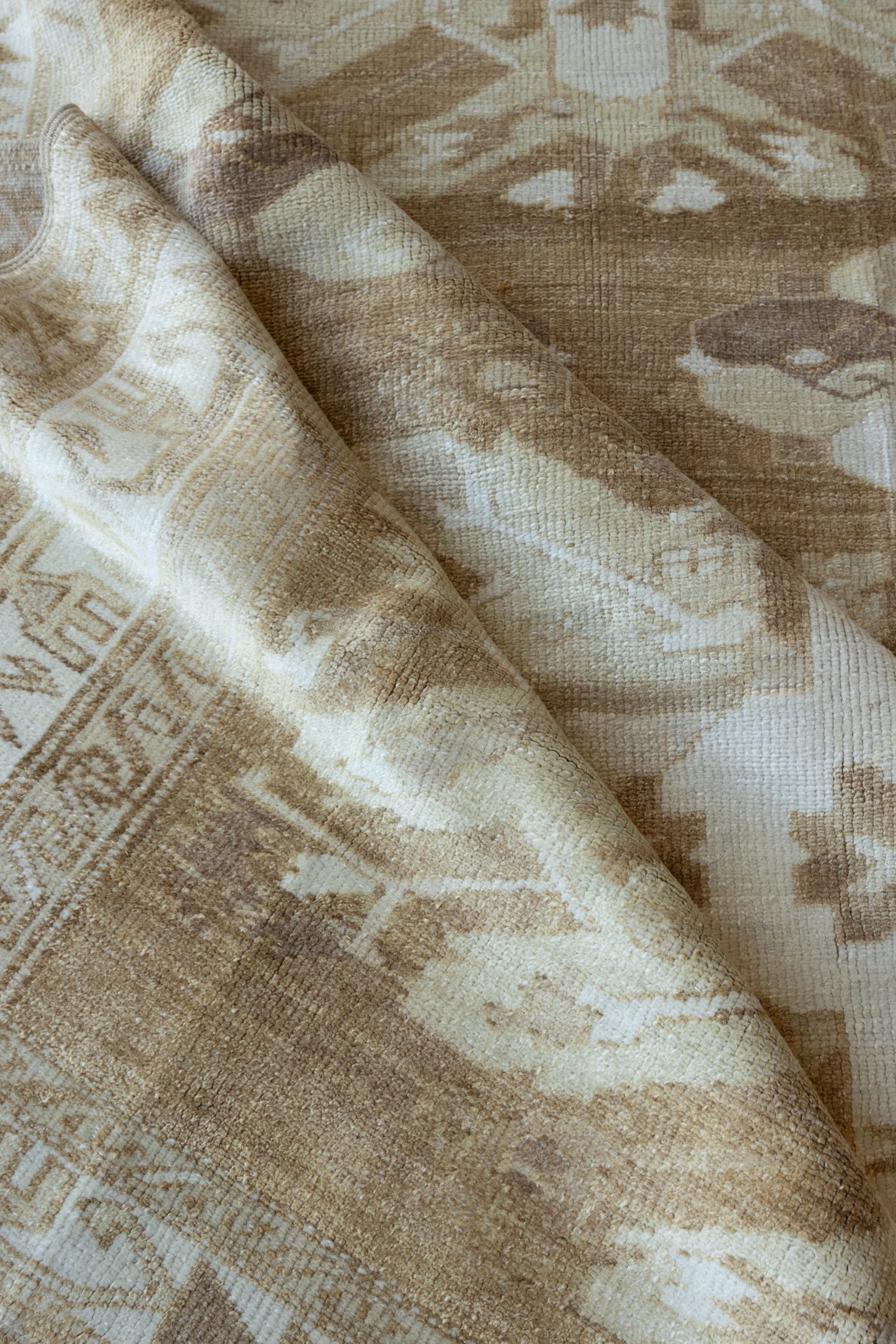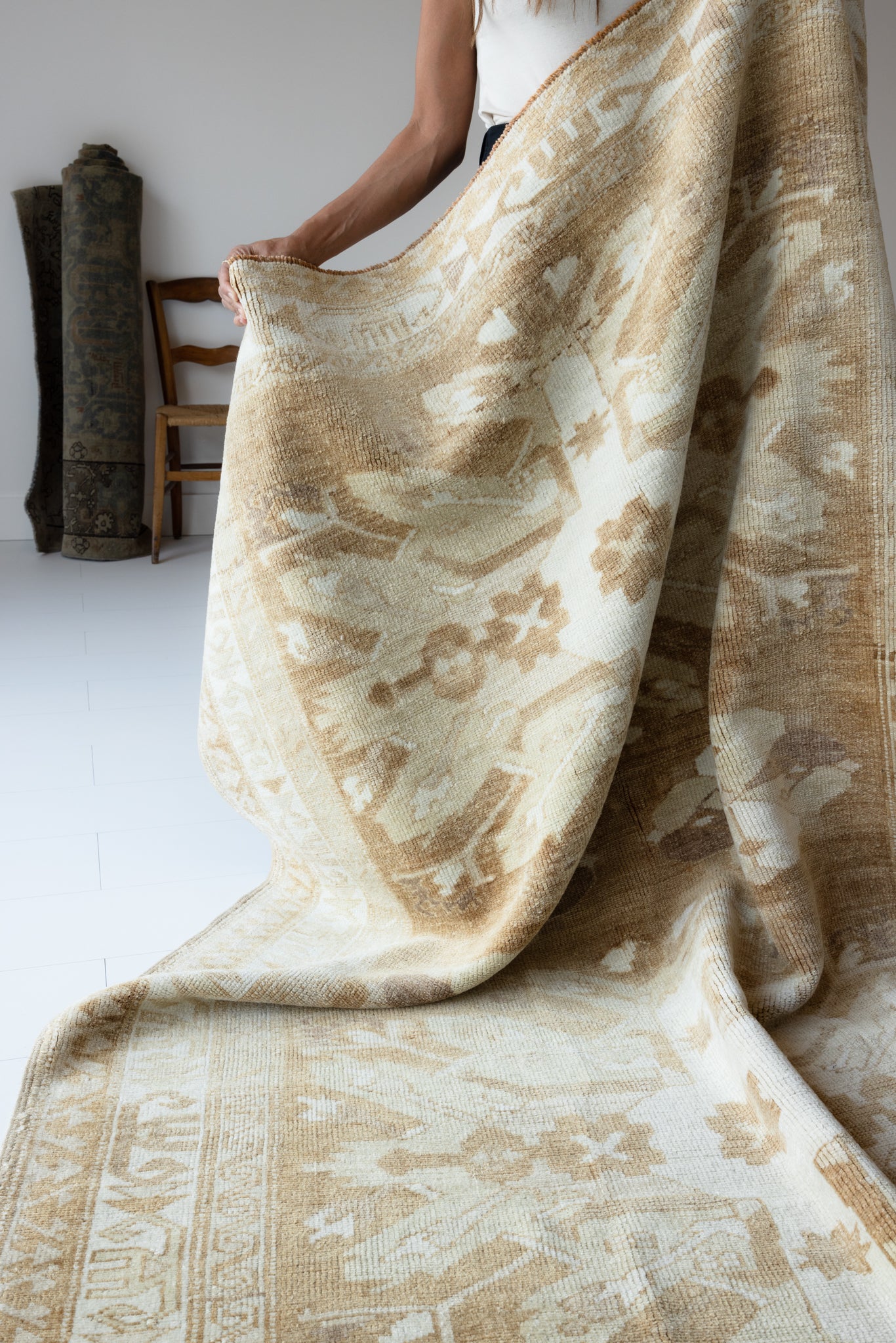 Because of the nature of this item, there may be slight imperfections in its wear, shape, dimensions, and color. Our rugs have been repaired over the years, using various techniques. There might be evidence of these repairs through texture, look and feel. This is all part of the rich history and story of each artistic piece. These markings are not considered defective.