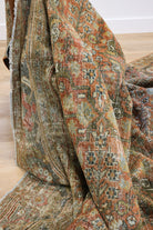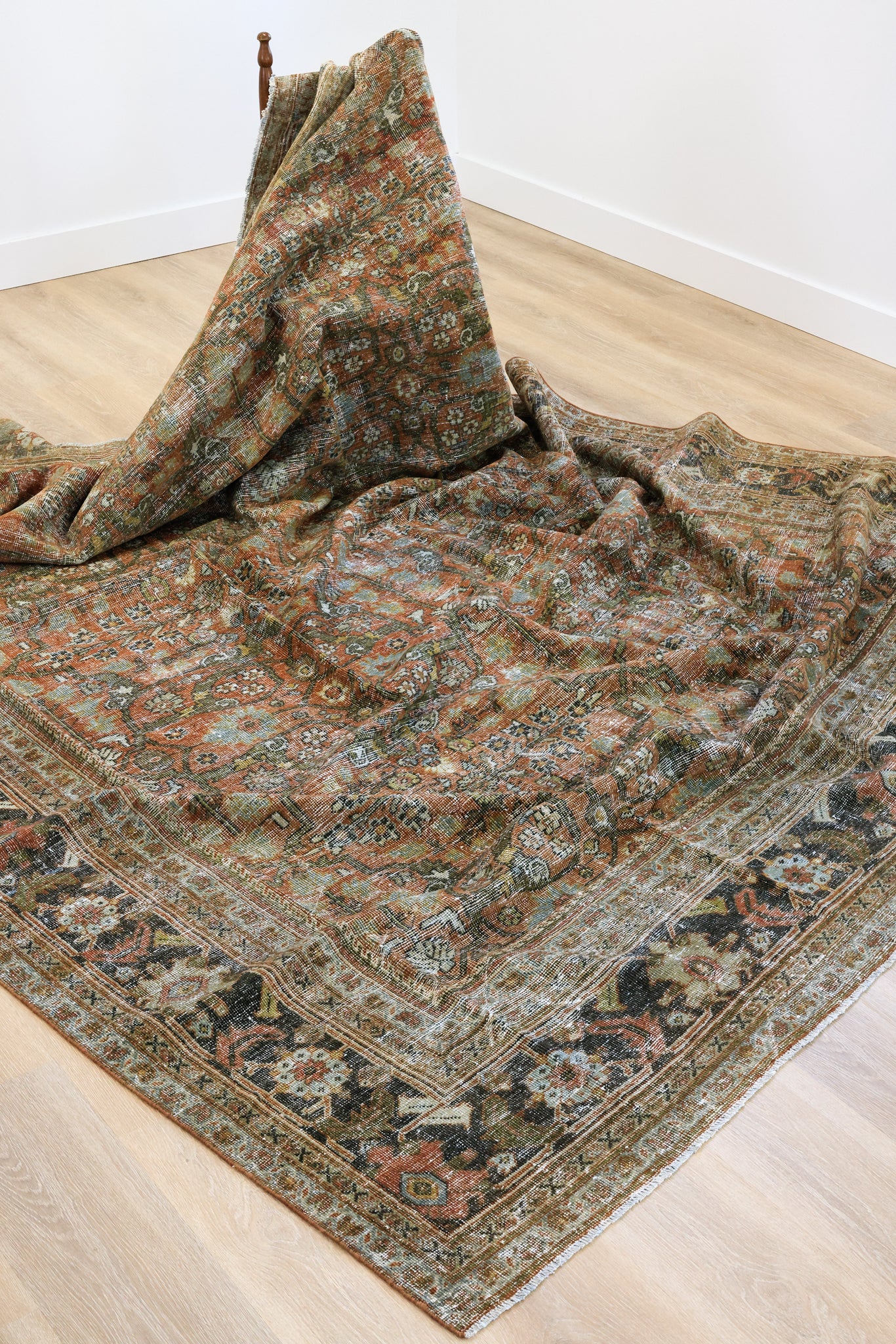 Because of the nature of this item, there may be slight imperfections in its wear, shape, dimensions, and color. Our rugs have been repaired over the years using various techniques. There might be evidence of these repairs through texture, look and feel. This is all part of the rich history and story of each artistic piece. These markings are not considered defective.