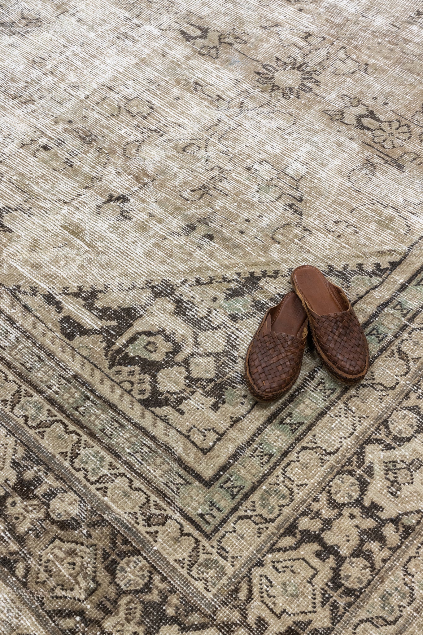 Because of the nature of this item, there may be slight imperfections in its wear, shape, dimensions, and color. Our rugs have been repaired over the years, using various techniques. There might be evidence of these repairs through texture, look and feel. This is all part of the rich history and story of each artistic piece. These markings are not considered defective.