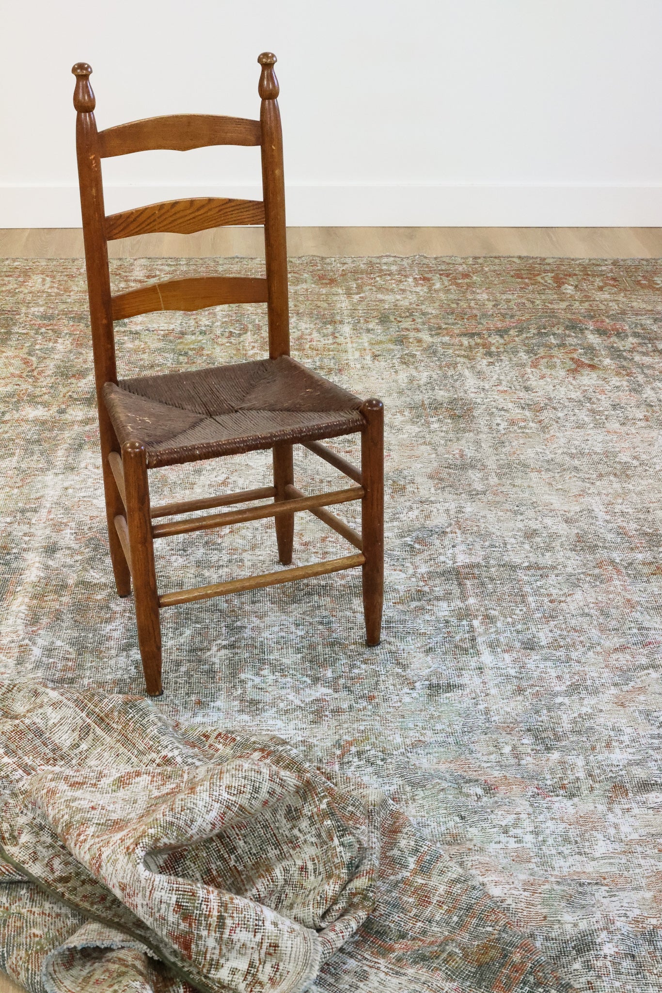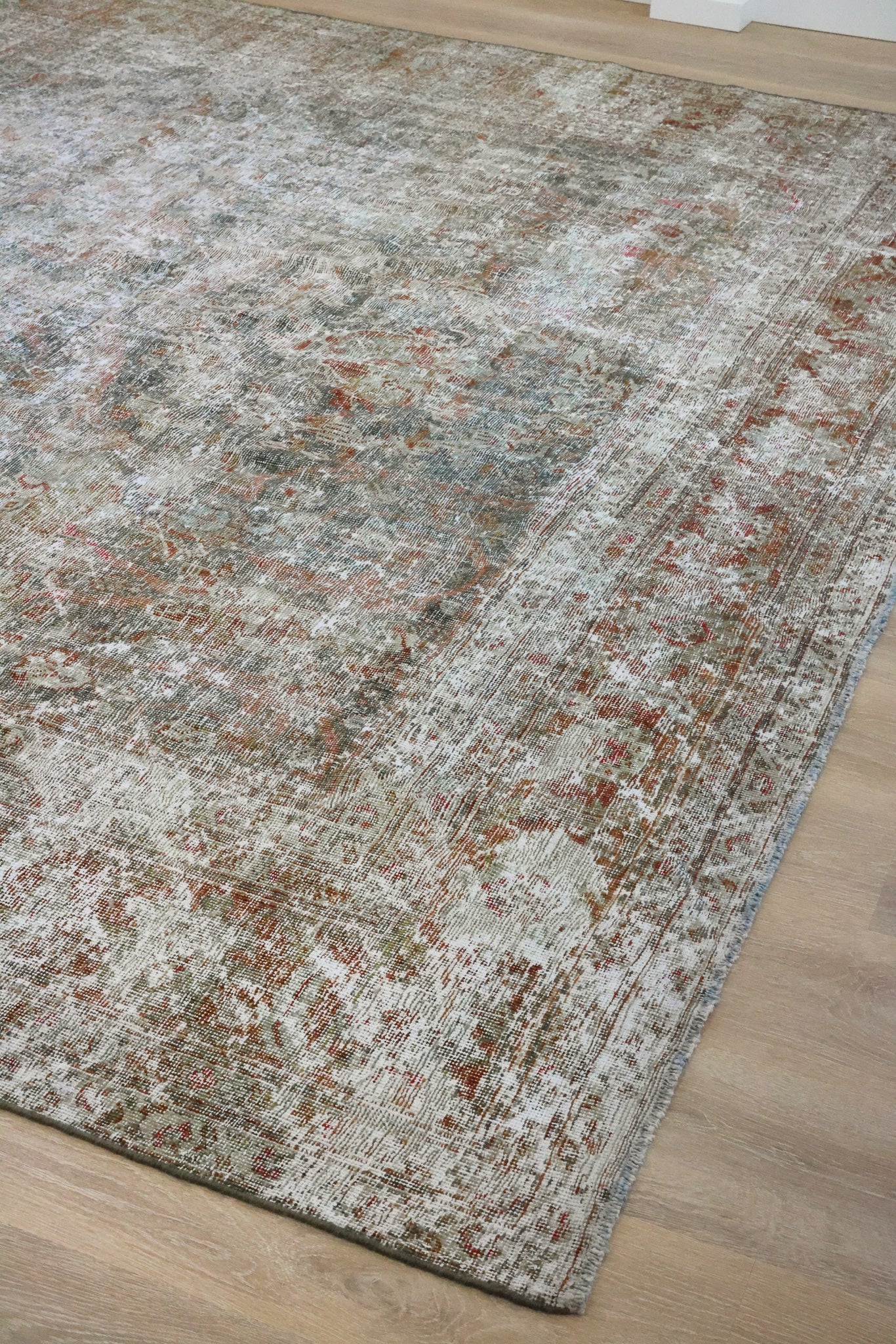 This rug has been professionally cleaned. Spot clean using the blotting technique, using a damp cloth. Take to a professional cleaner if the rug requires a deeper clean.