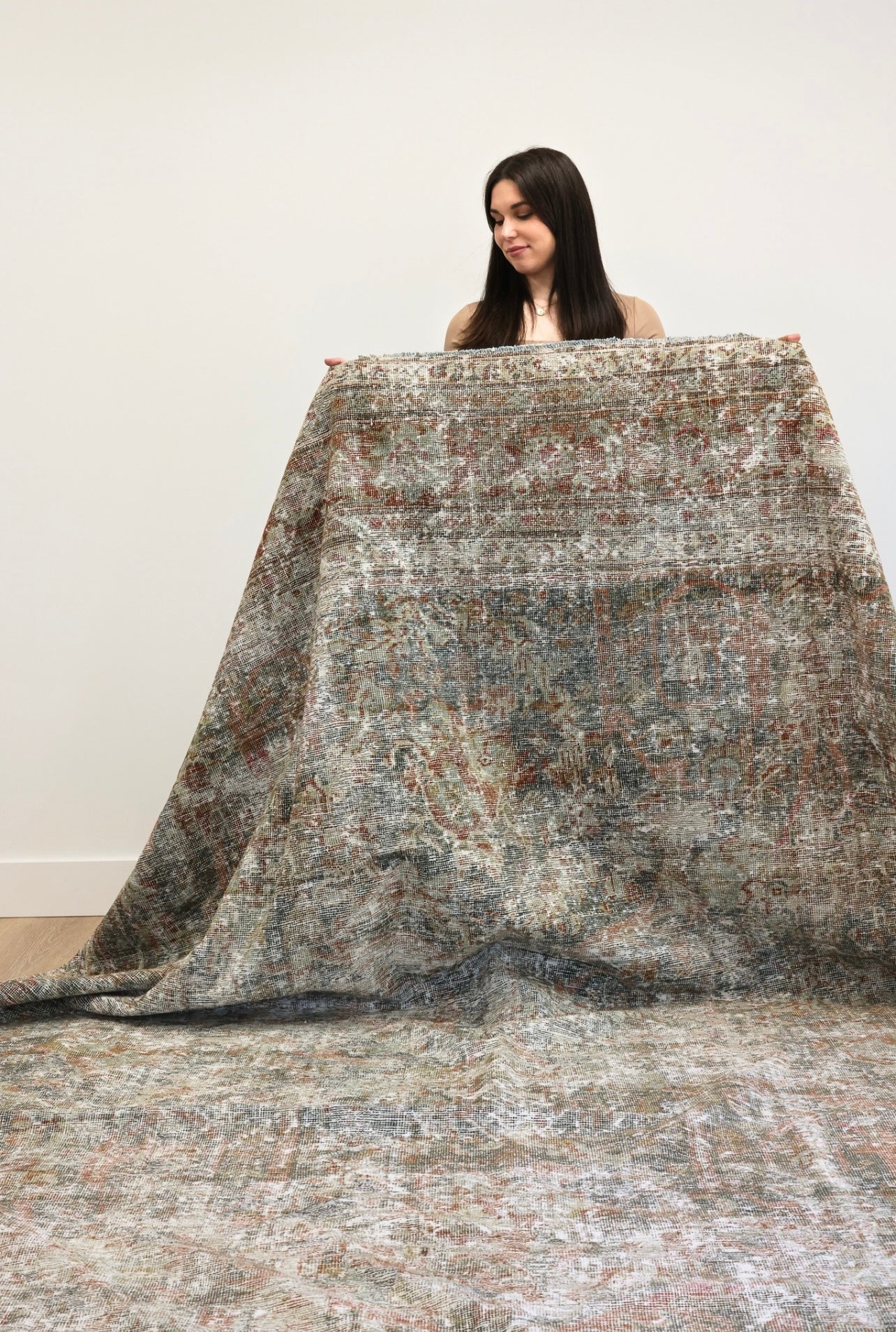 Because of the nature of this item, there may be slight imperfections in its wear, shape, dimensions, and color. Our rugs have been repaired over the years using various techniques. There might be evidence of these repairs through texture, look and feel. This is all part of the rich history and story of each artistic piece. These markings are not considered defective.