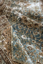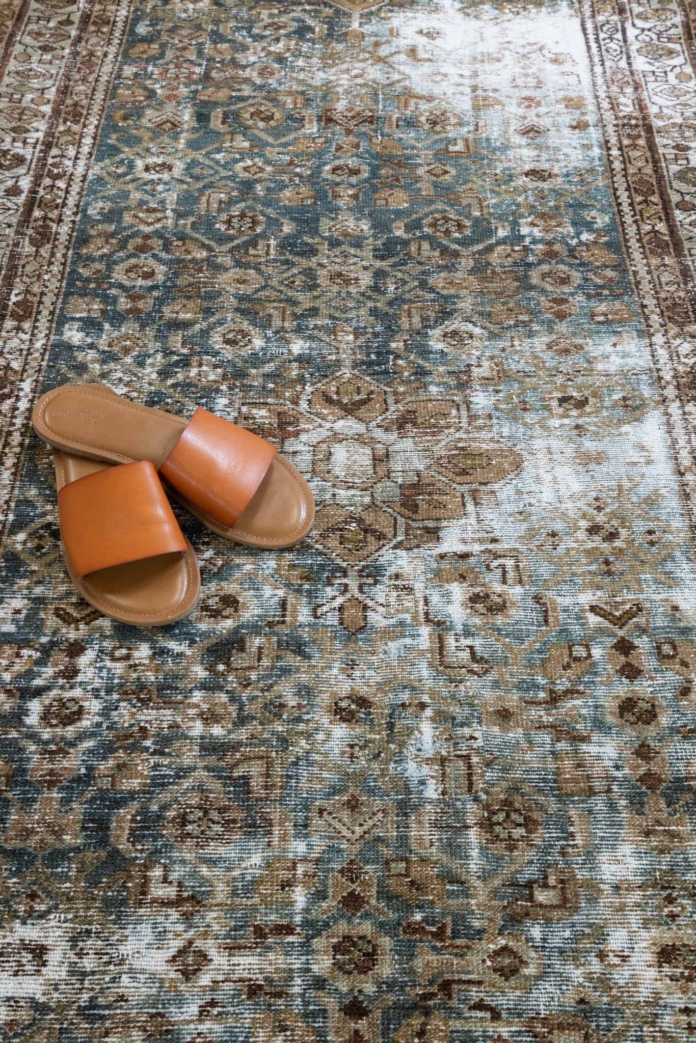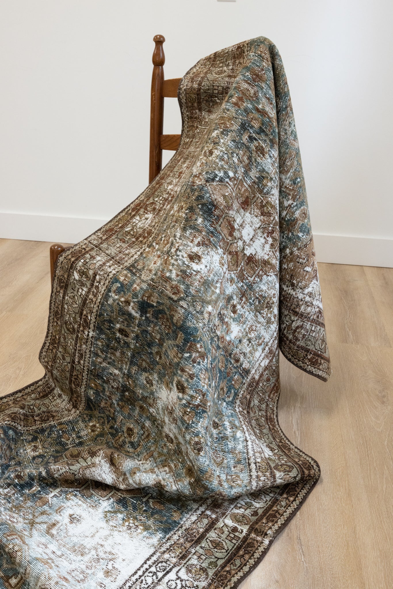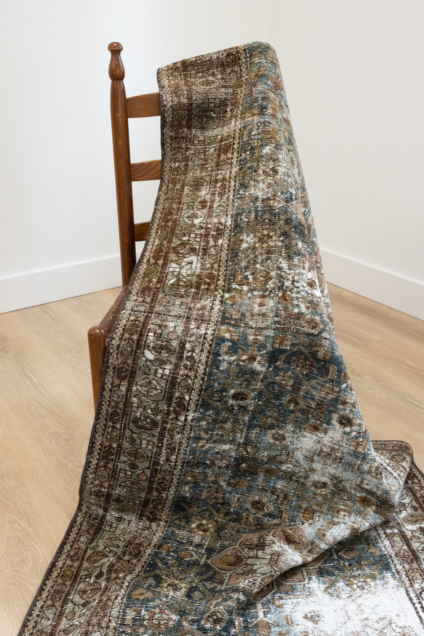 Because of the nature of this item, there may be slight imperfections in its wear, shape, dimensions, and color. Our rugs have been repaired over the years, using various techniques. There might be evidence of these repairs through texture, look and feel. This is all part of the rich history and story of each artistic piece. These markings are not considered defective.