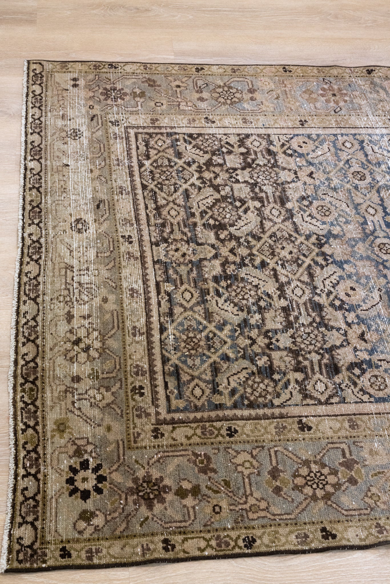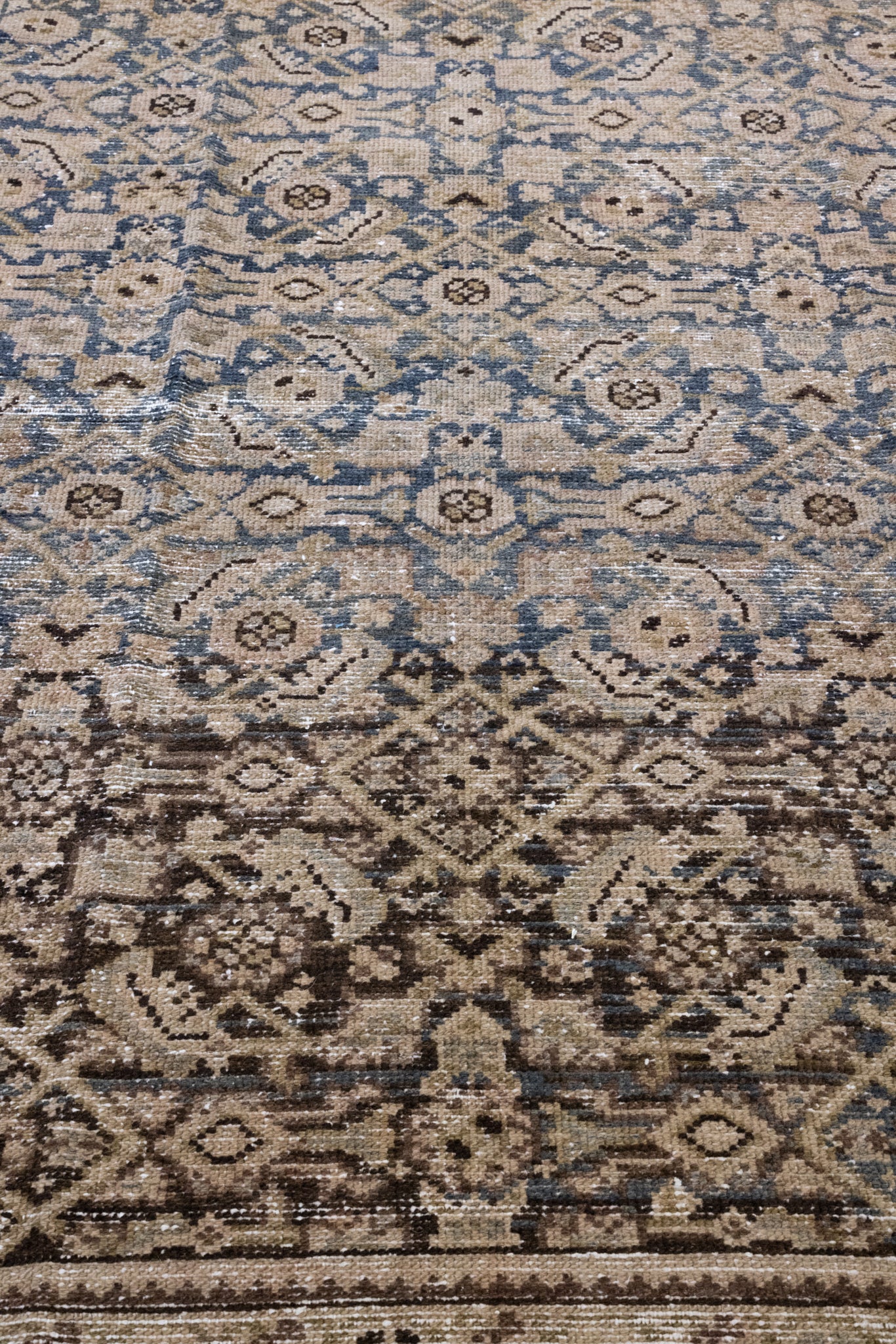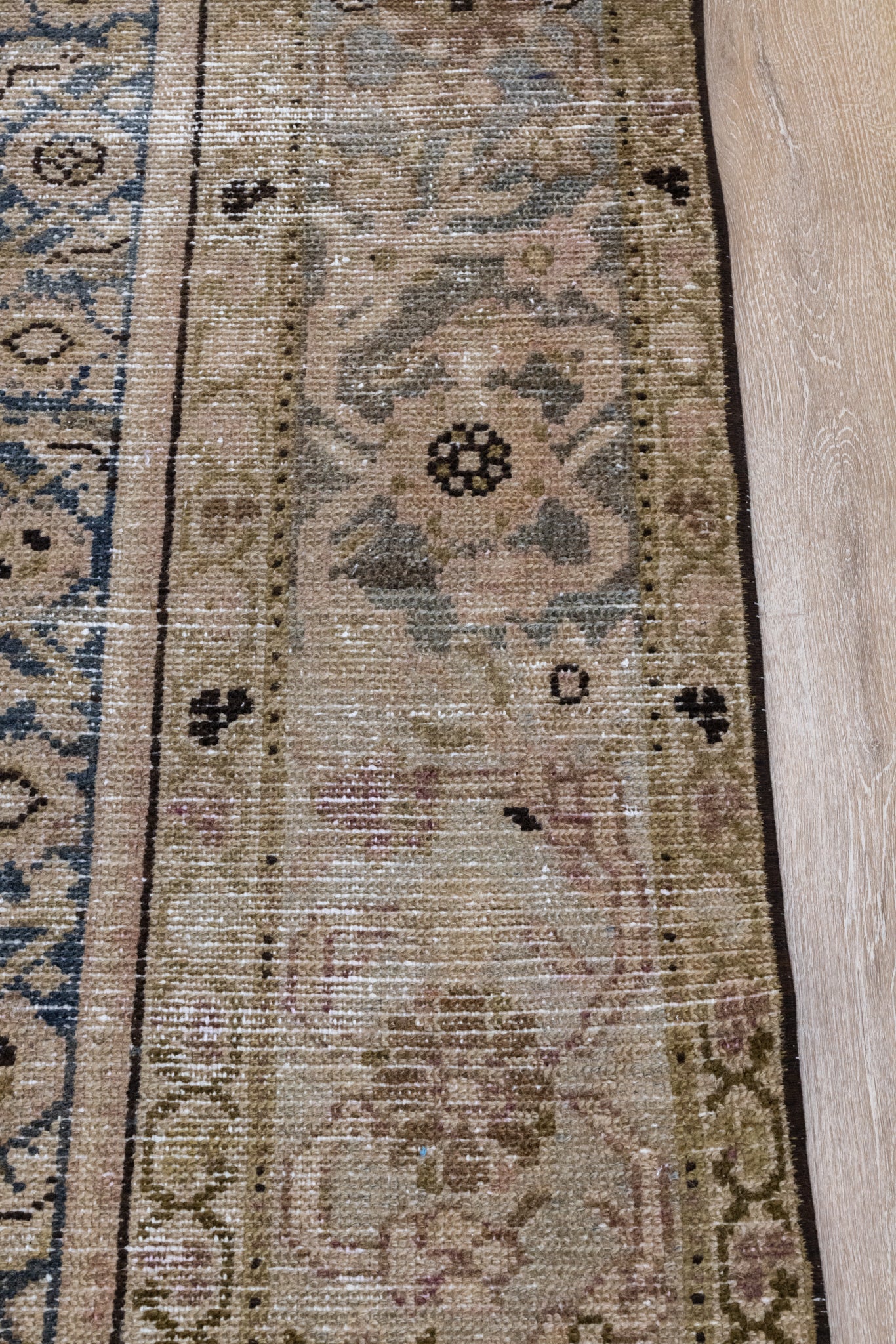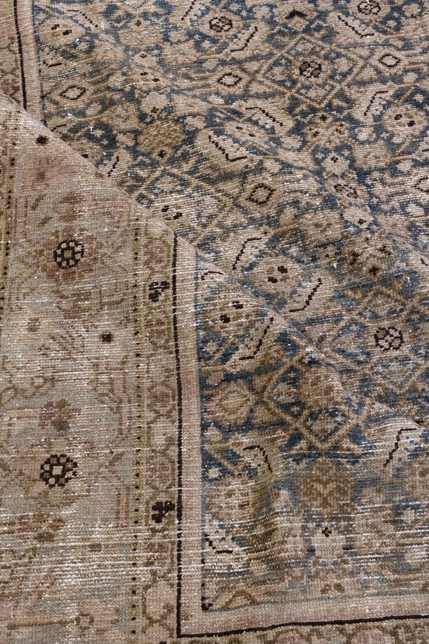 Please note that because this is a vintage rug, there may be slight imperfections in its wear, dimensions, and color. Our rugs have been repaired over the years, using various techniques. There might be evidence of these repairs through texture, look and feel. This is all part of the rich history and story of each artistic piece. These markings are not considered defective.