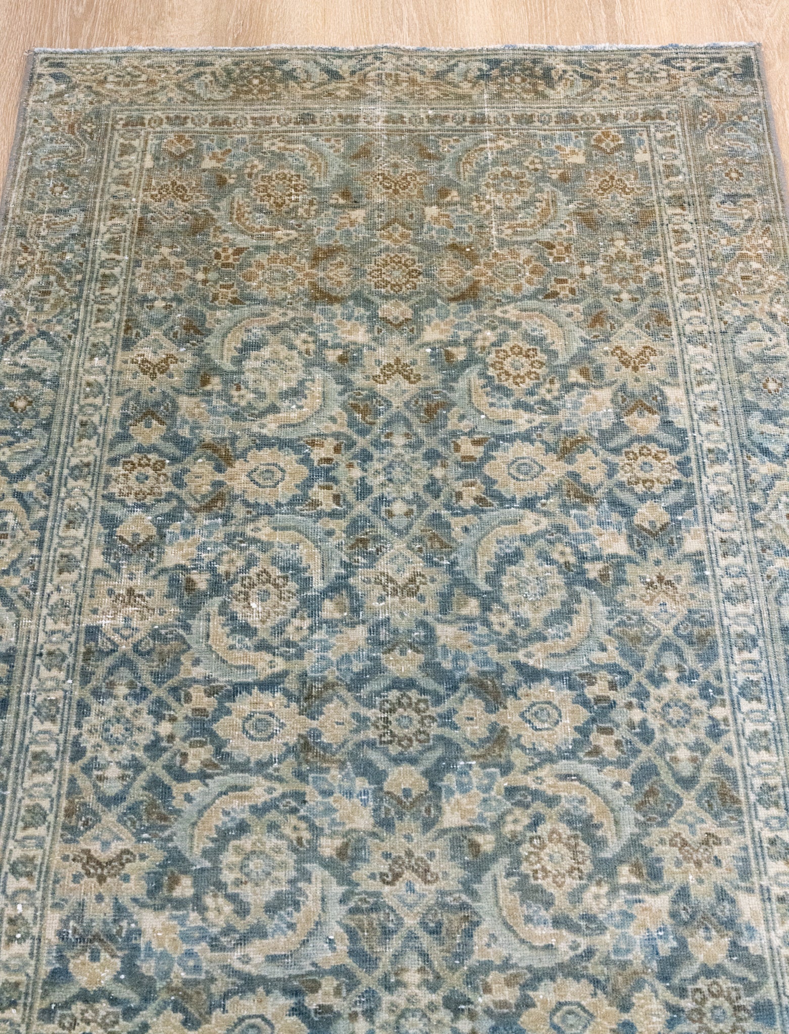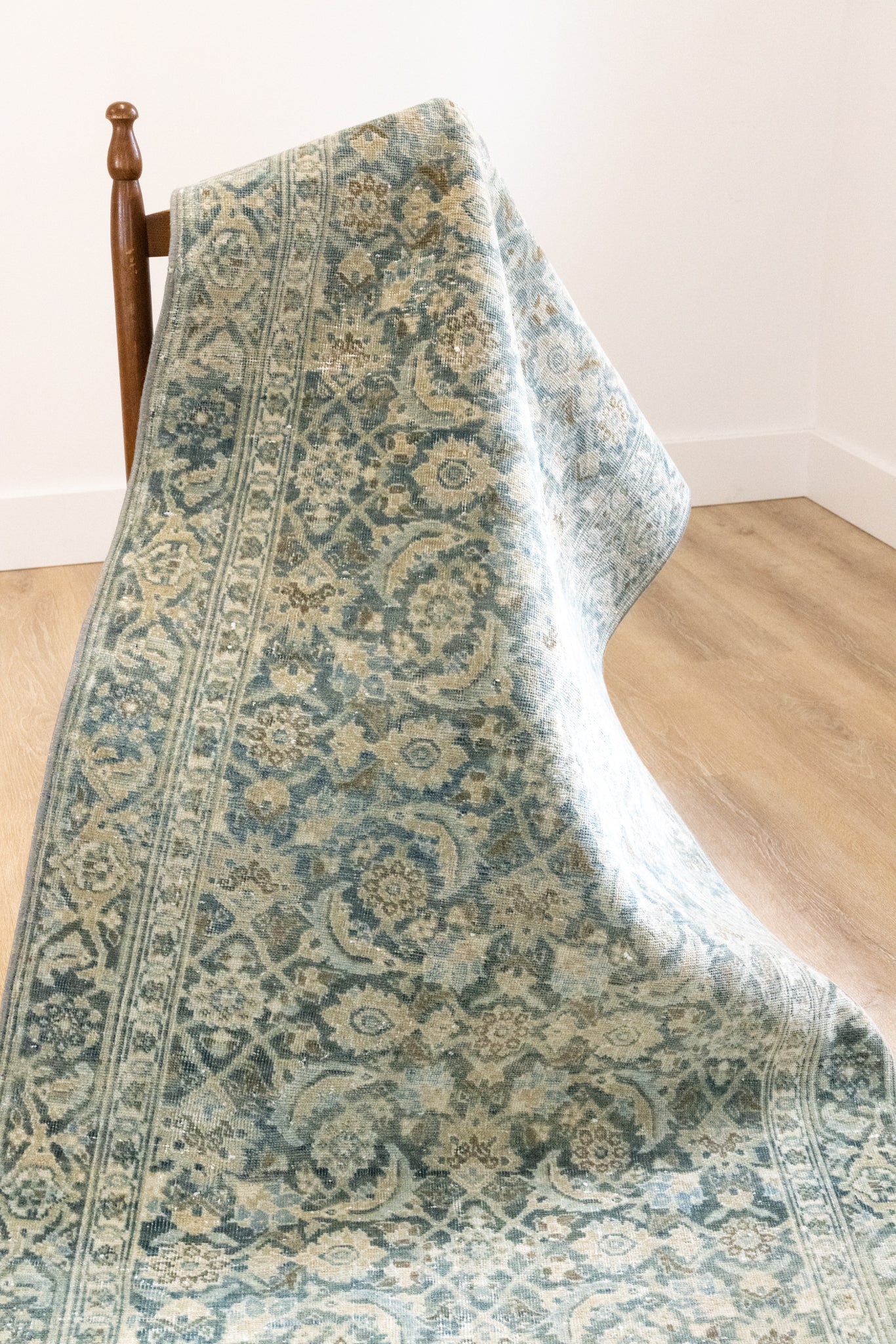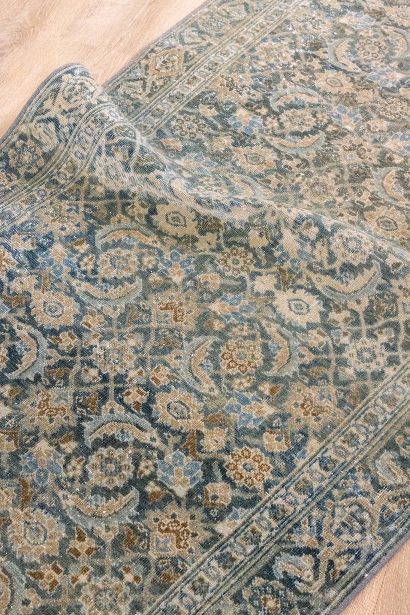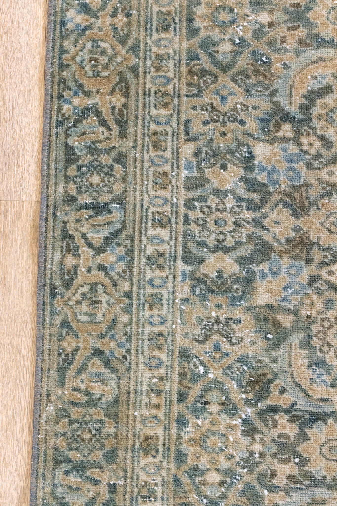 Please note that because this is a vintage rug, there may be slight imperfections in its wear, dimensions, and color. Our rugs have been repaired over the years, using various techniques. There might be evidence of these repairs through texture, look and feel. This is all part of the rich history and story of each artistic piece. These markings are not considered defective.