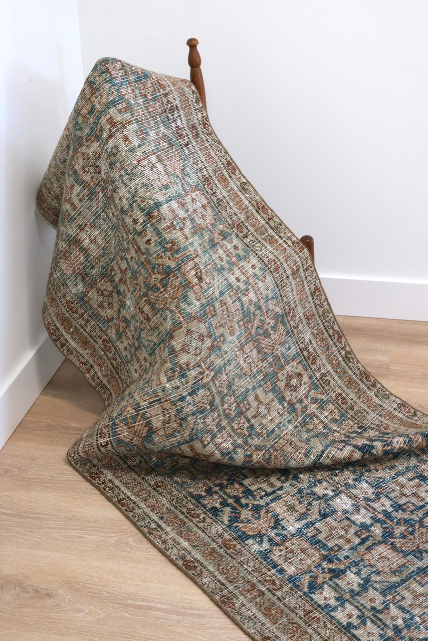 Because of the nature of this item, there may be slight imperfections in its wear, shape, dimensions, and color. Our rugs have been repaired over the years using various techniques. There might be evidence of these repairs through texture, look and feel. This is all part of the rich history and story of each artistic piece. These markings are not considered defective.