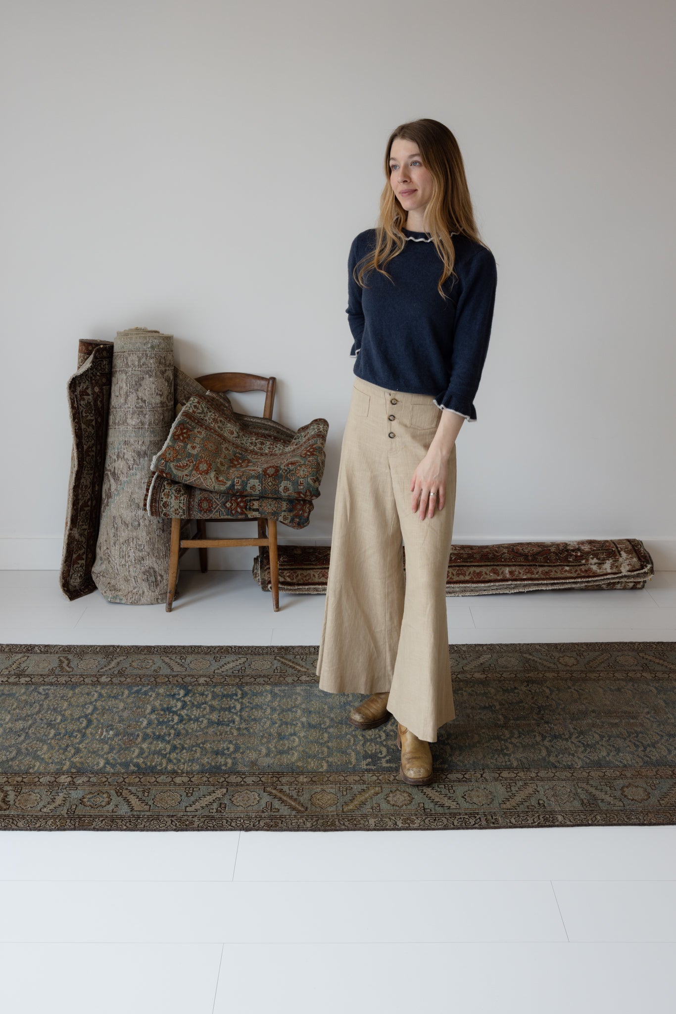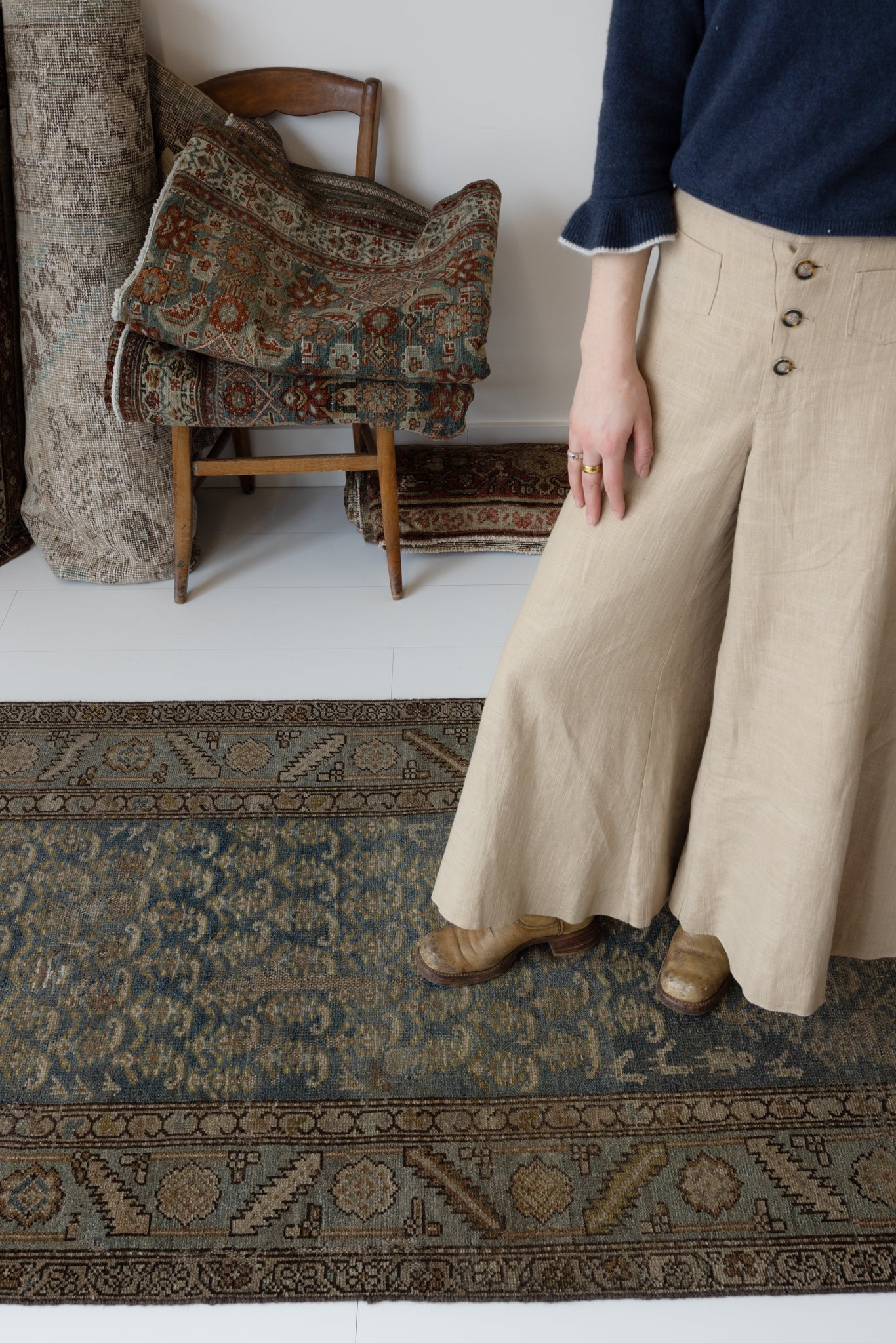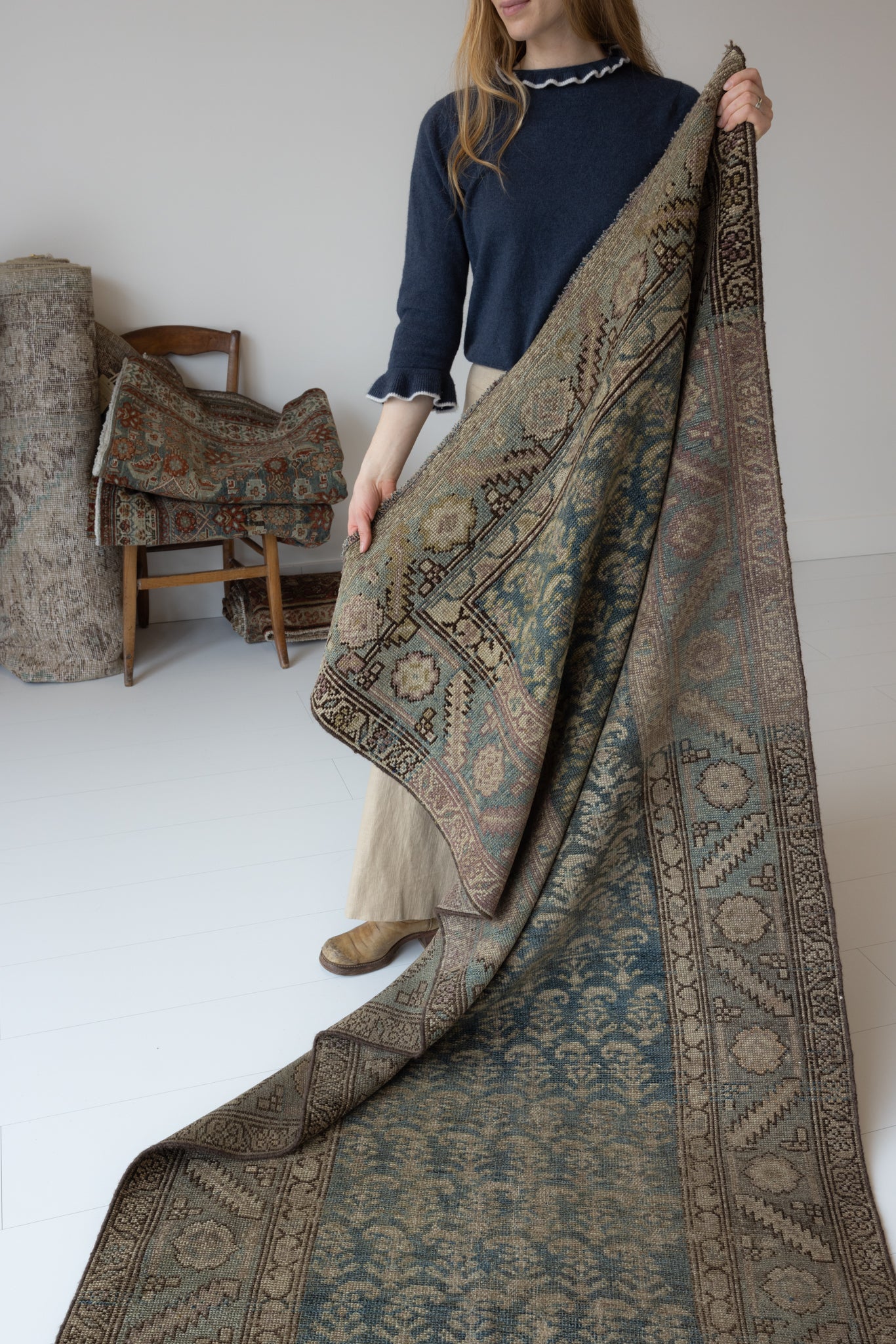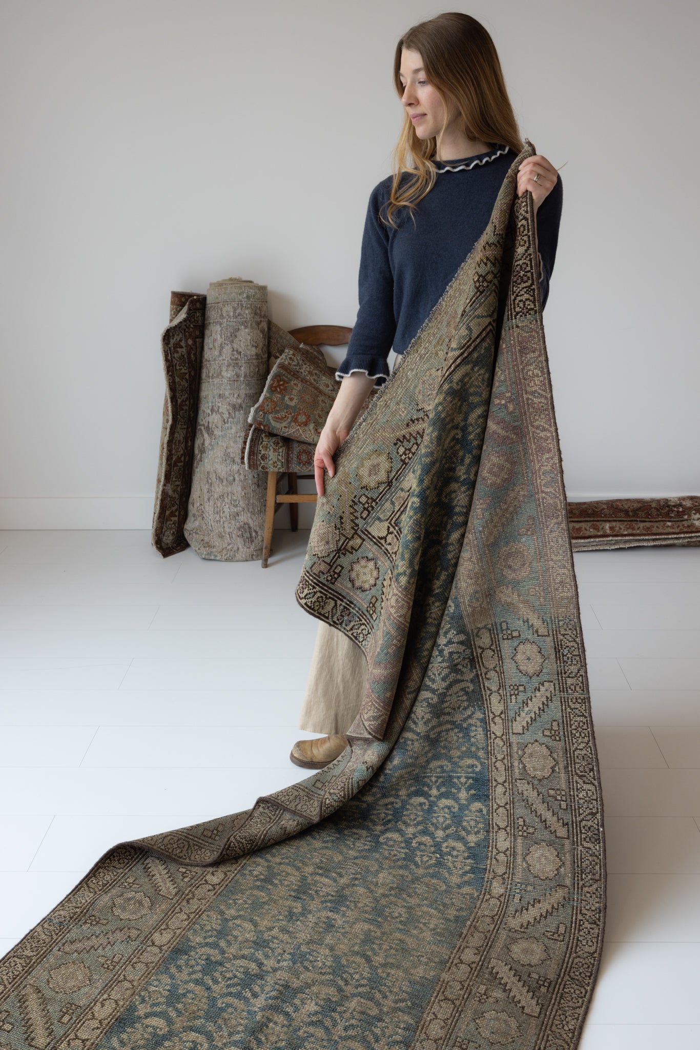 Because of the nature of this item, there may be slight imperfections in its wear, shape, dimensions, and color. Our rugs have been repaired over the years using various techniques. There might be evidence of these repairs through texture, look and feel. This is all part of the rich history and story of each artistic piece. These markings are not considered defective.