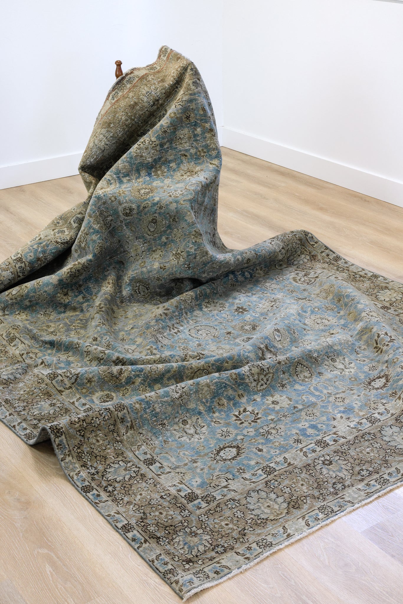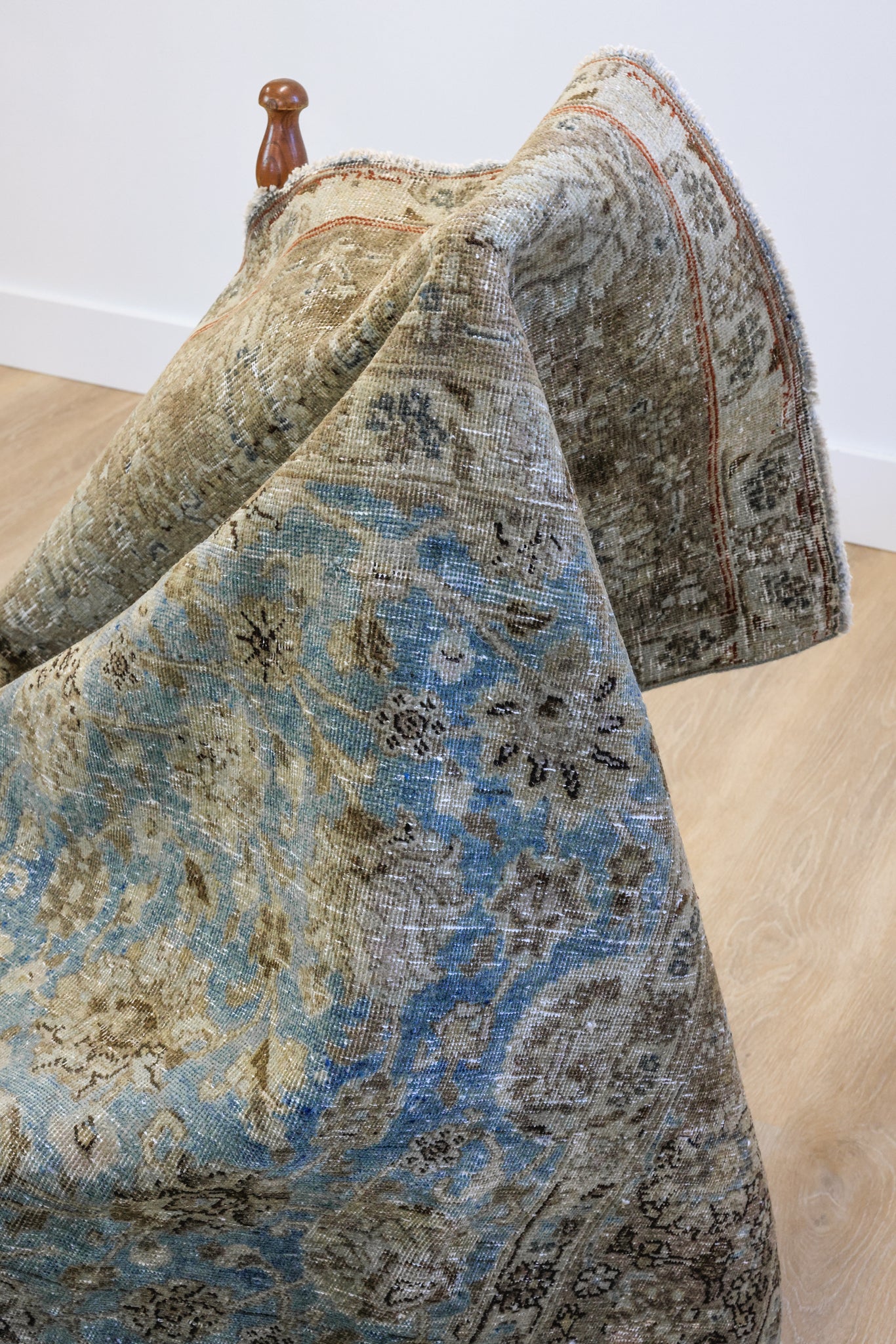 Because of the nature of this item, there may be slight imperfections in its wear, shape, dimensions, and color. Our rugs have been repaired over the years using various techniques. There might be evidence of these repairs through texture, look and feel. This is all part of the rich history and story of each artistic piece. These markings are not considered defective.