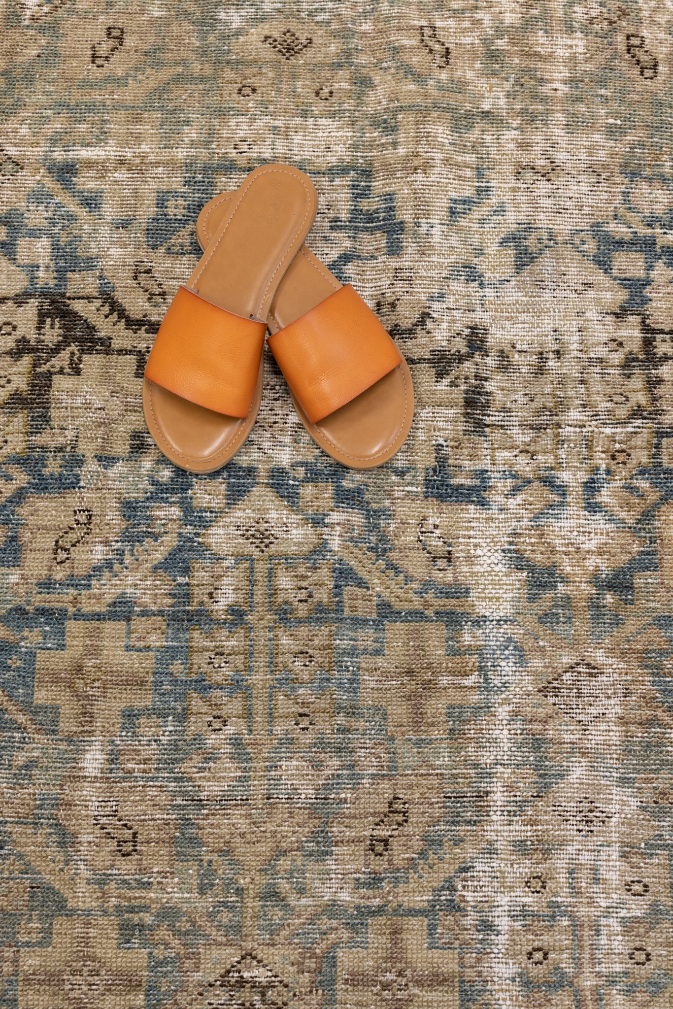 Because of the nature of this item, there may be slight imperfections in its wear, shape, dimensions, and color. Our rugs have been repaired over the years, using various techniques. There might be evidence of these repairs through texture, look and feel. This is all part of the rich history and story of each artistic piece. These markings are not considered defective.